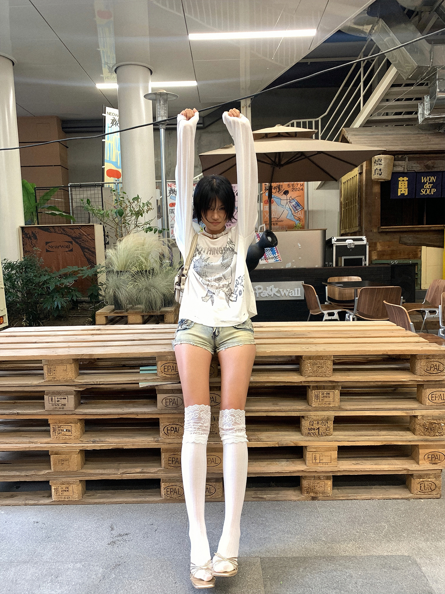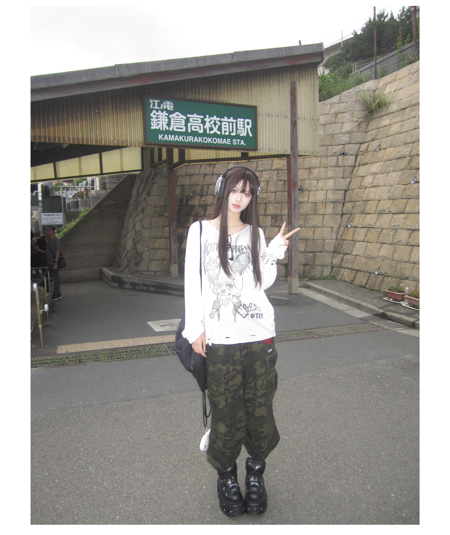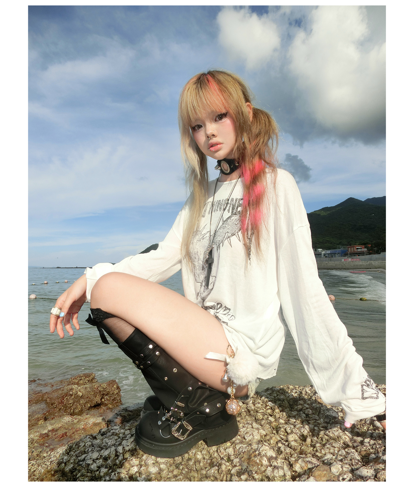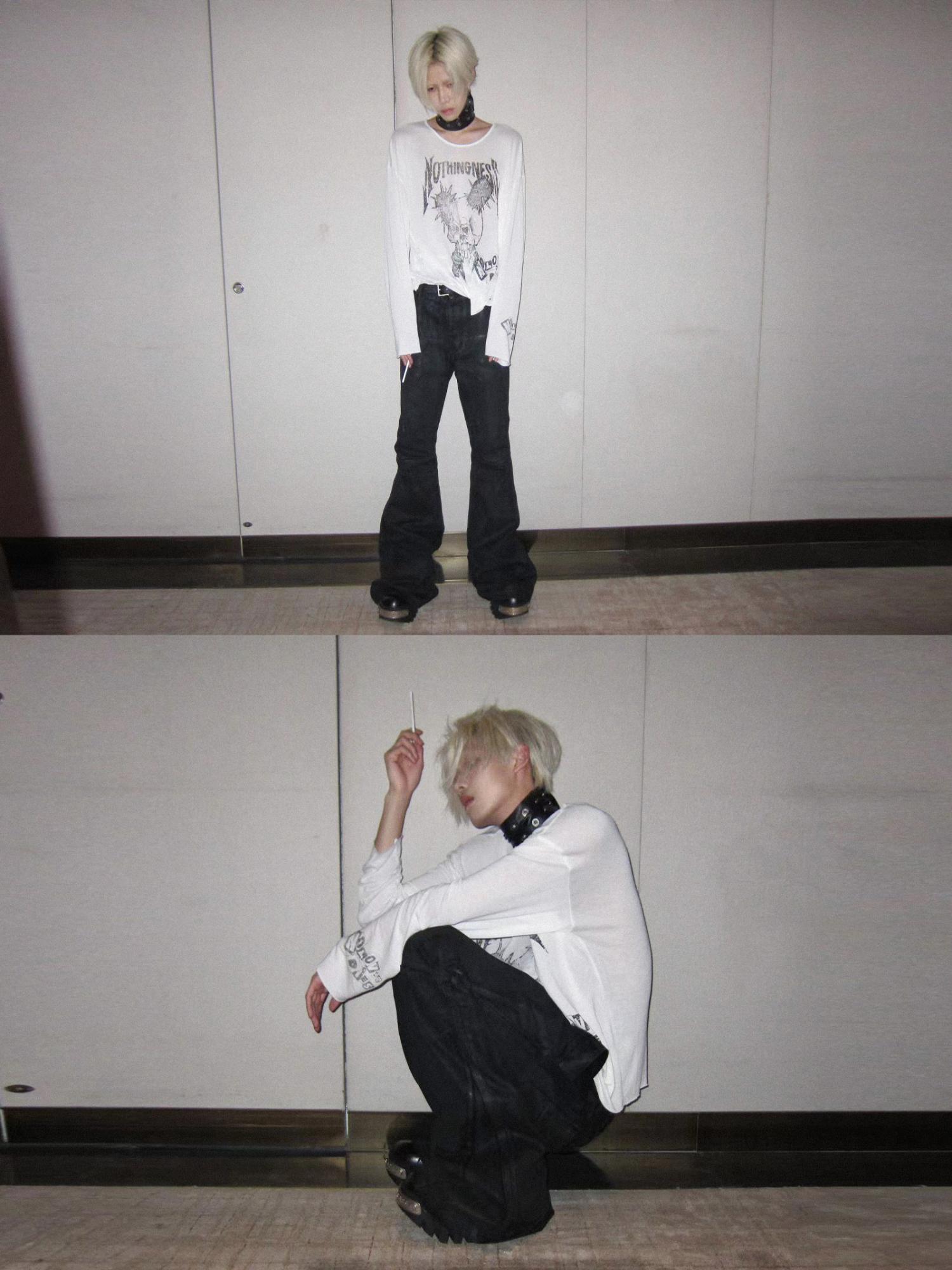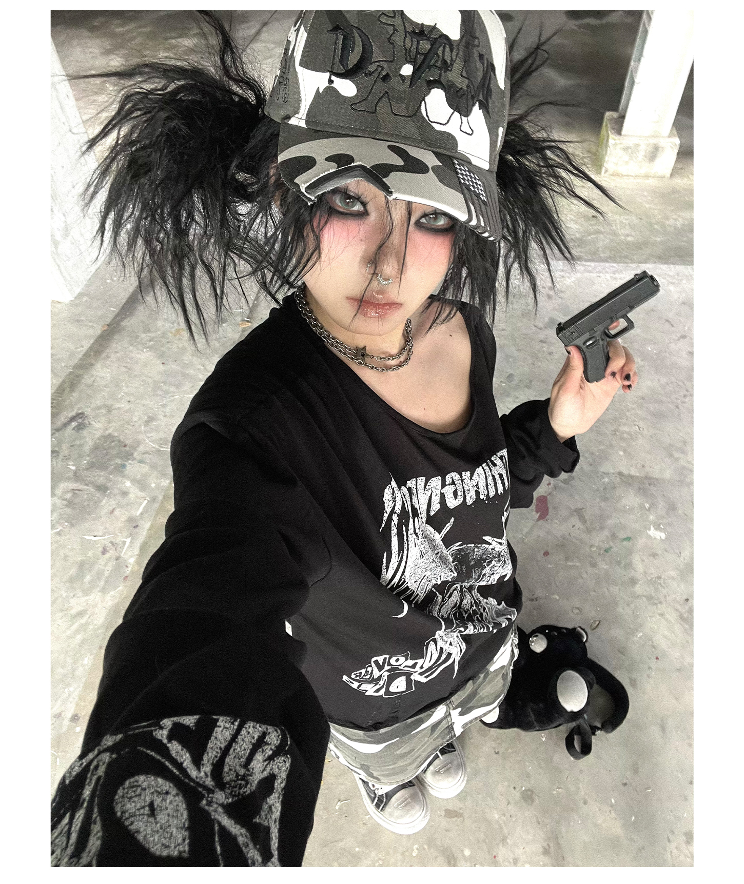 Damage Mesh Long Sleeve T-Shirt WN13734