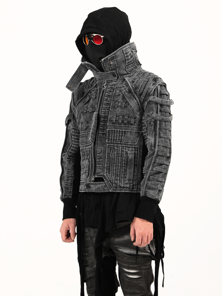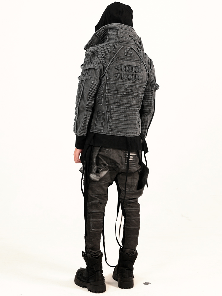 Asymmetric Strap Washed Zipper Jacket WN13903