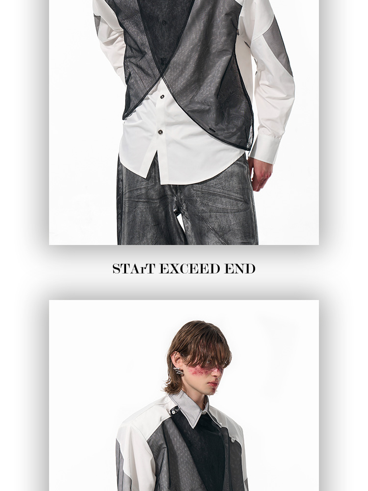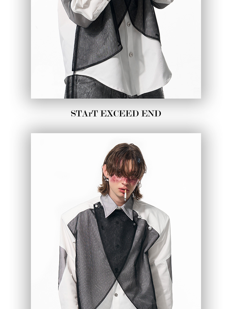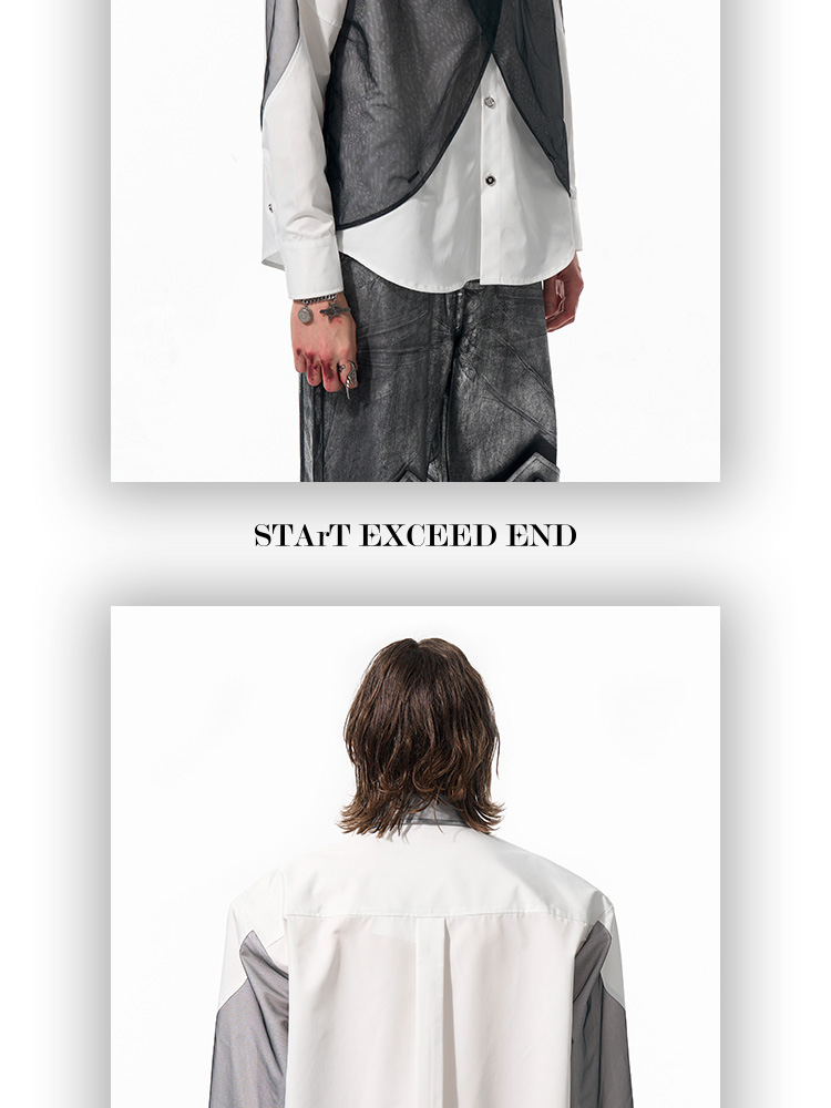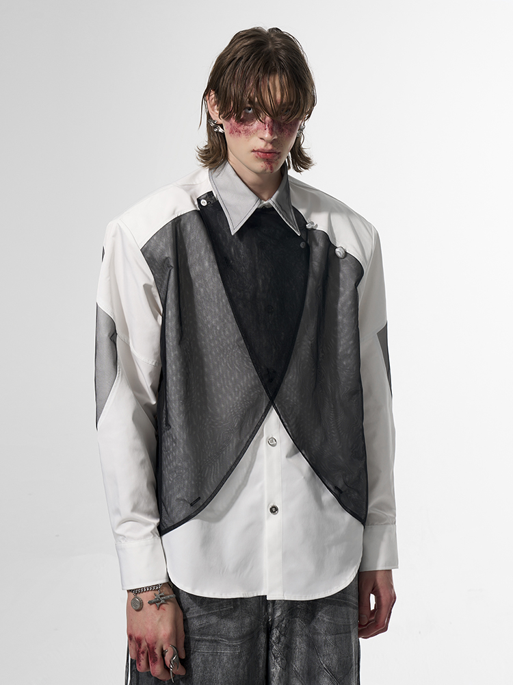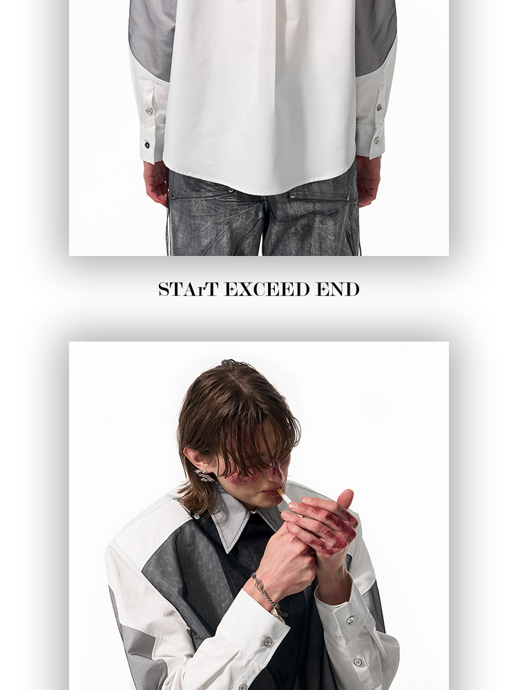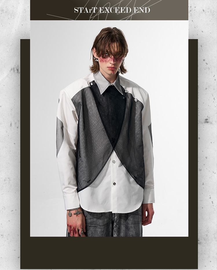 Mesh Mix Shoulder-pad Long Sleeve Shirt WN14818