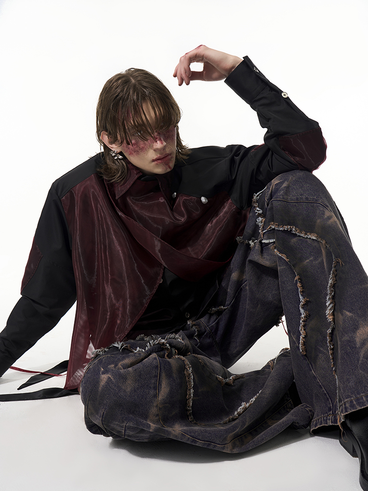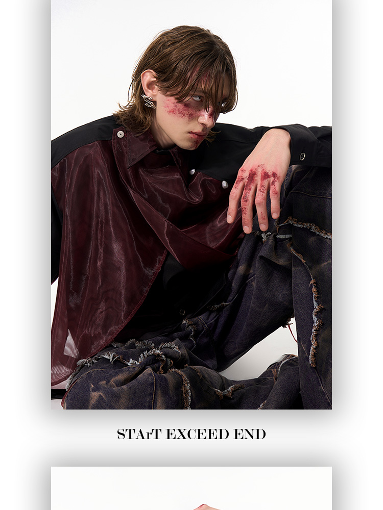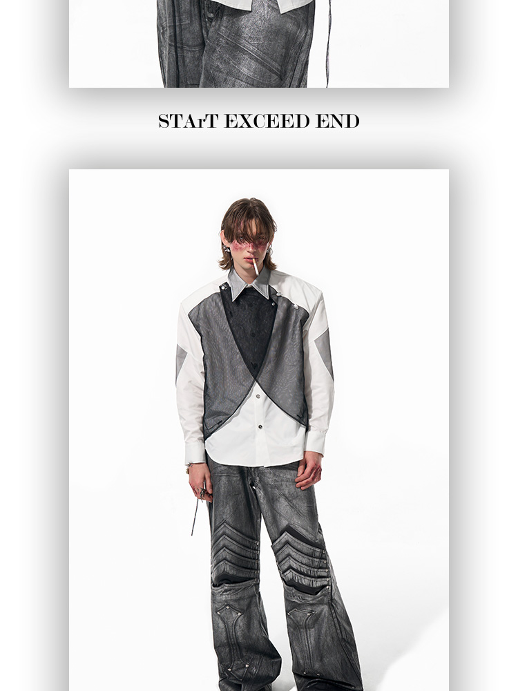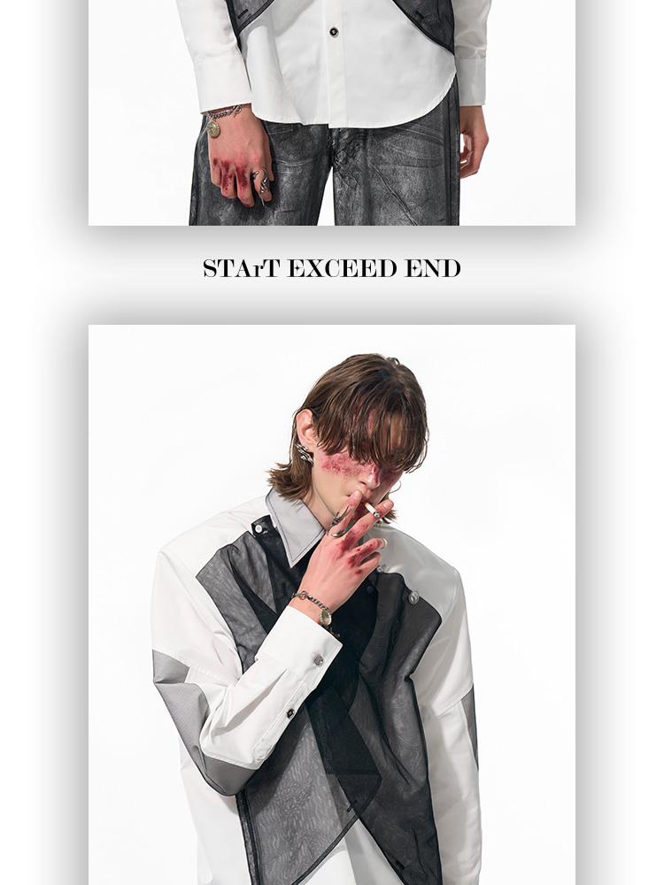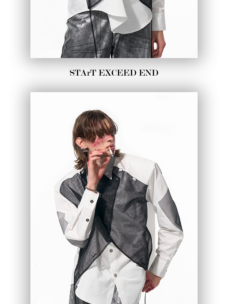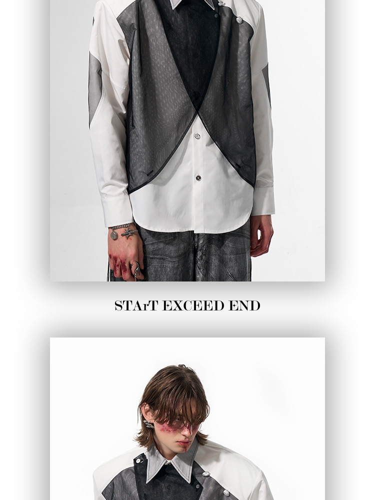 Mesh Mix Shoulder-pad Long Sleeve Shirt WN14818