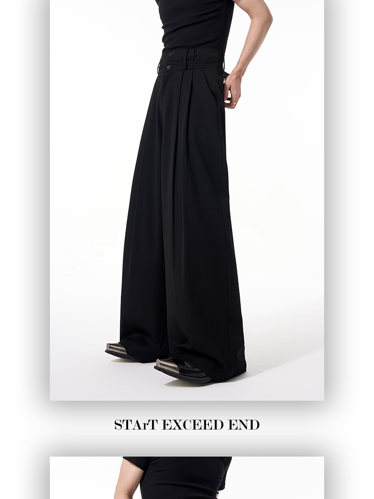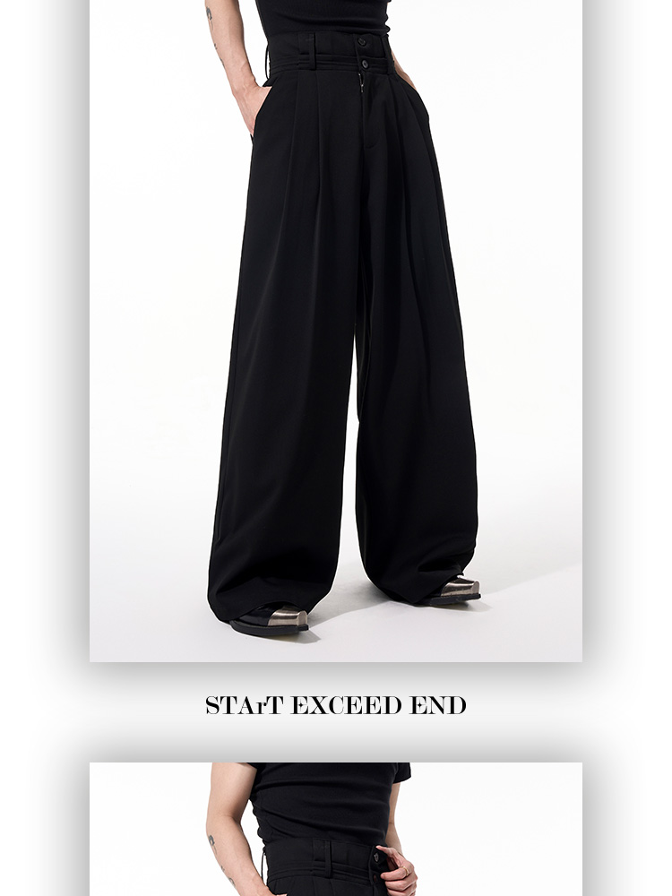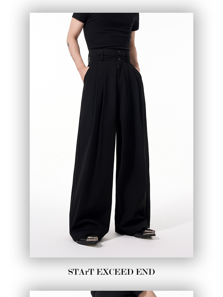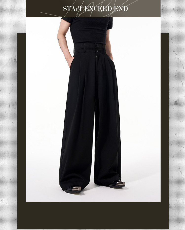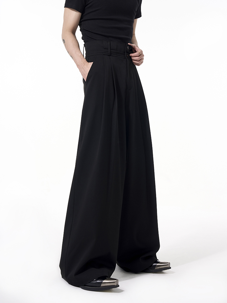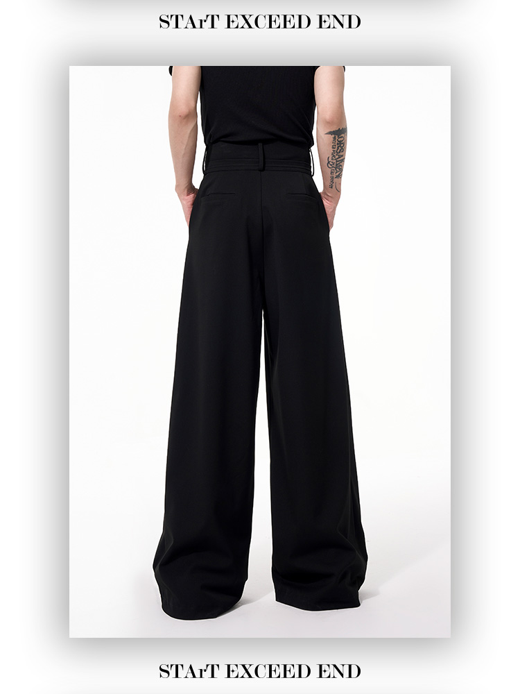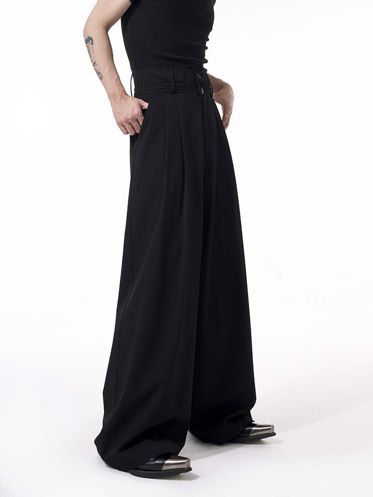 Double Waistband Drape Straight Wide-leg Trousers WN14825