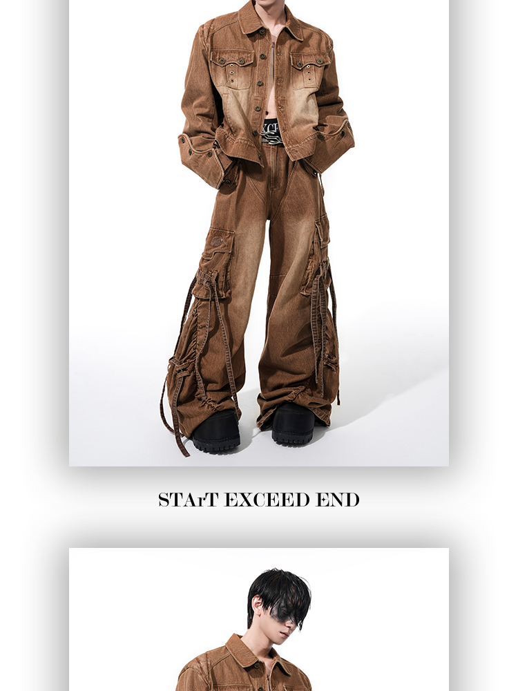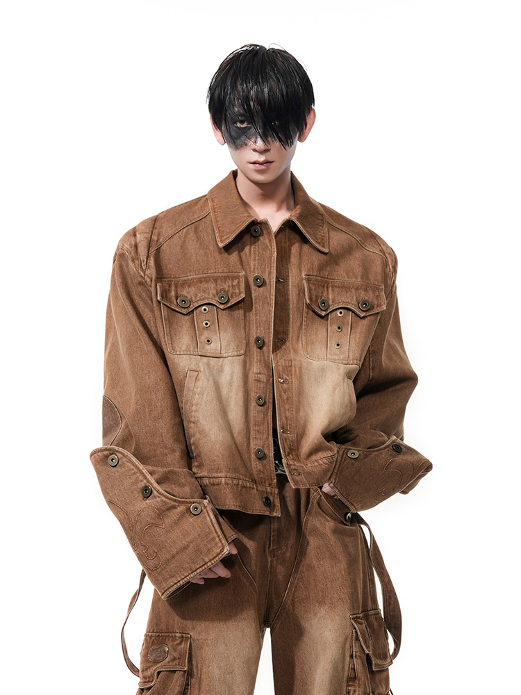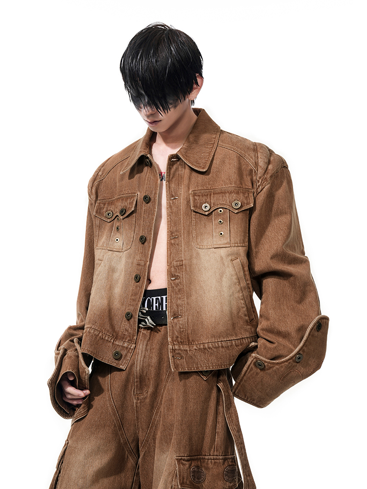 Damage Denim Jacket & Flare Denim Jeans Setup WN14840