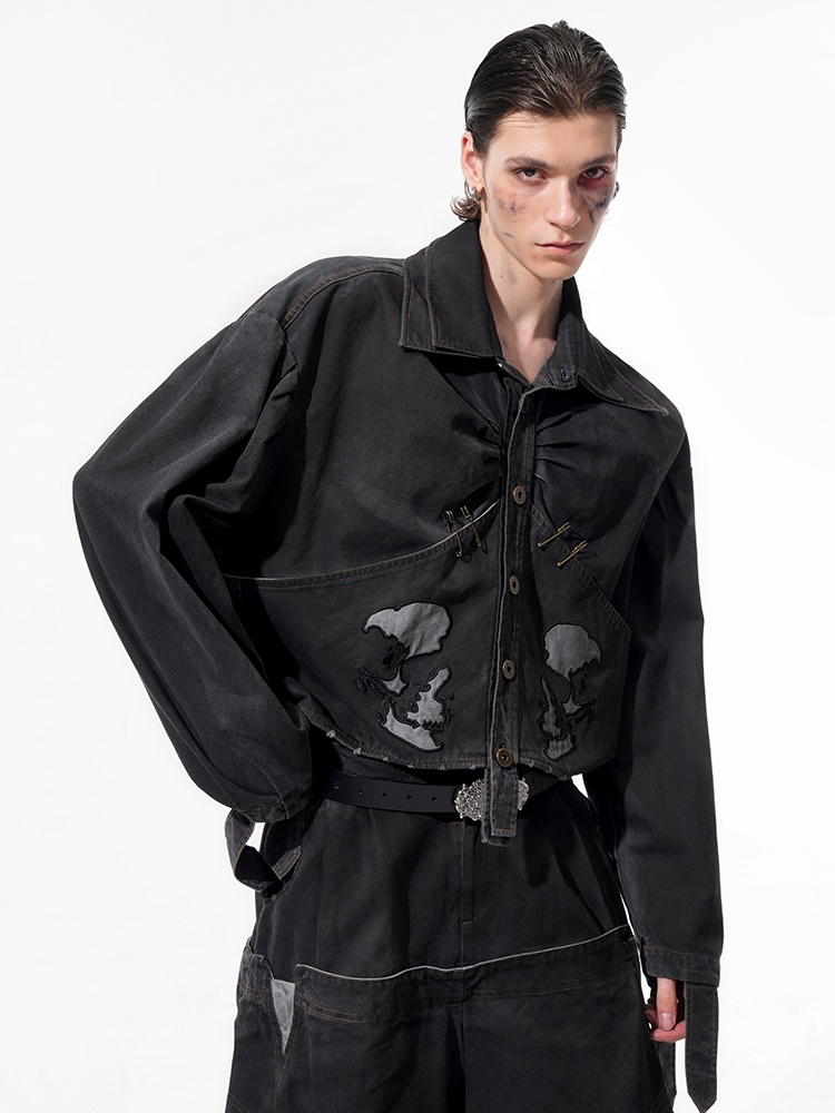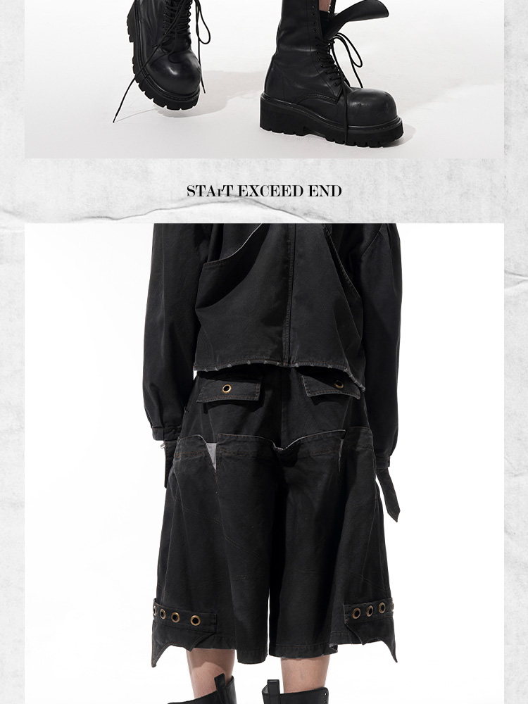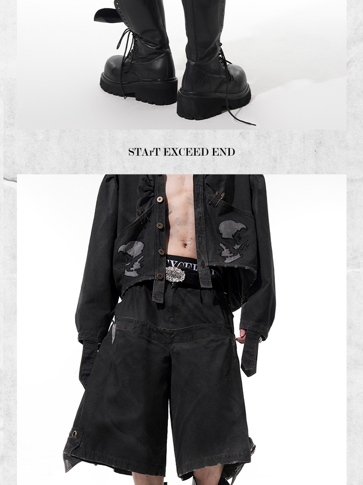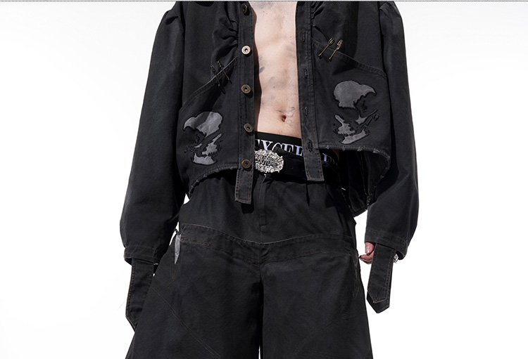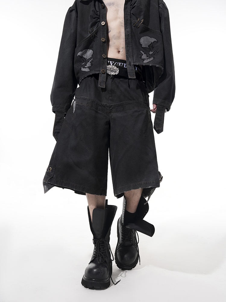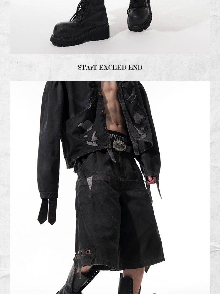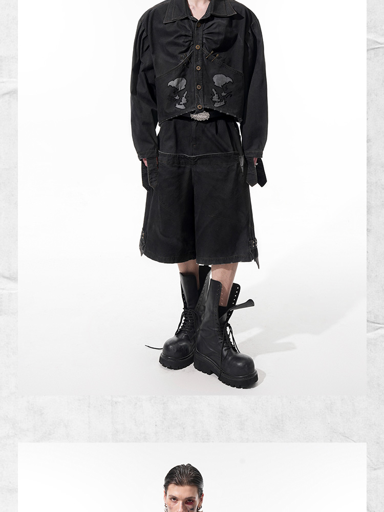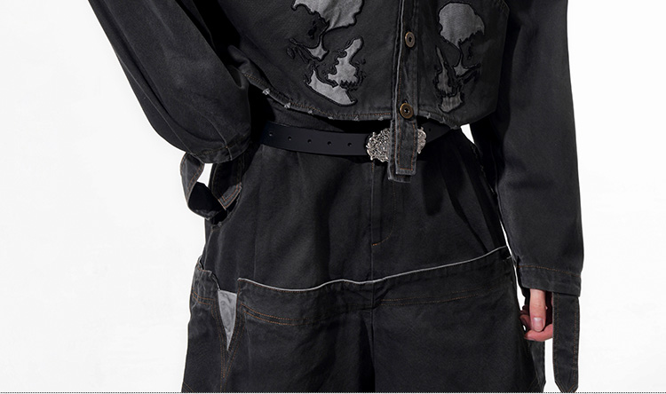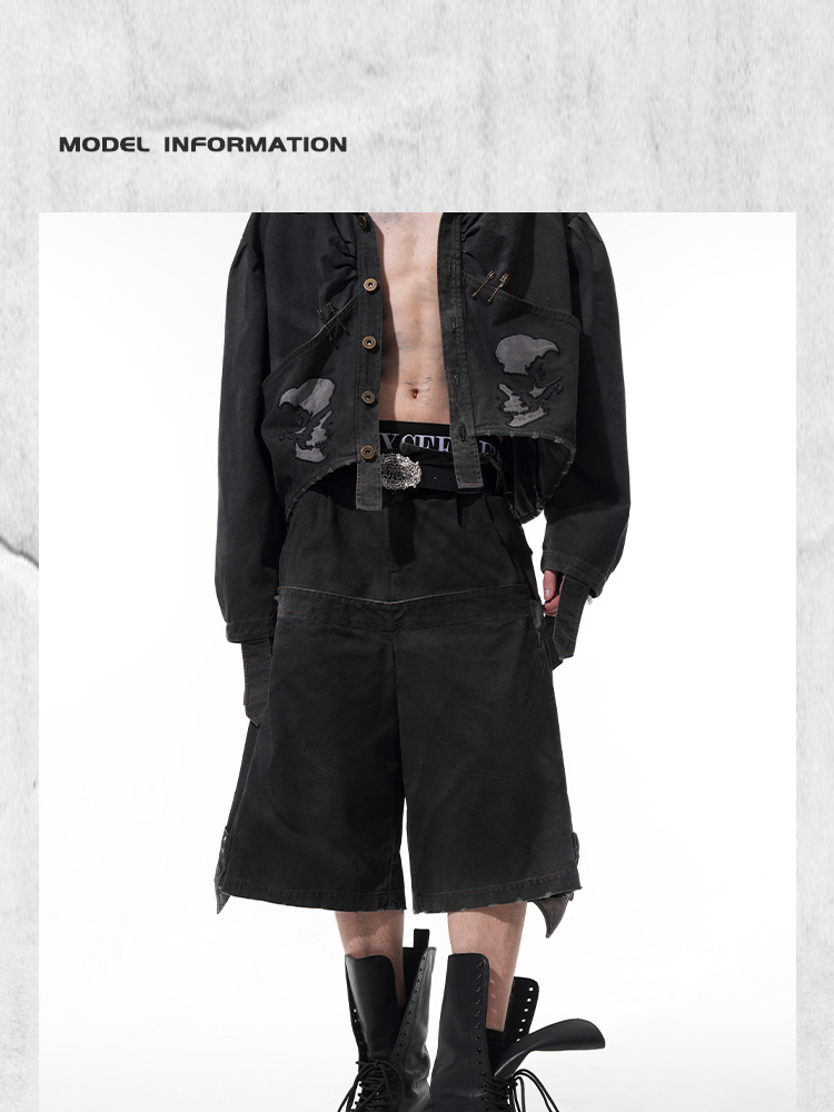 Large Pocket Denim Short Jacket & Wide-leg Half Pants Setup WN14870