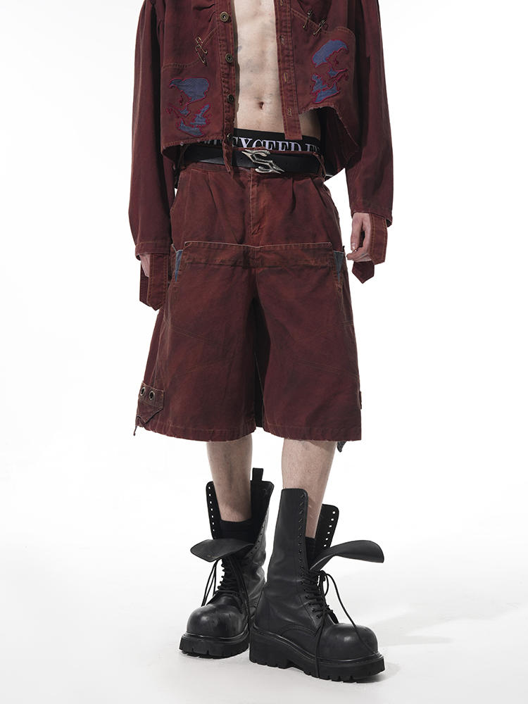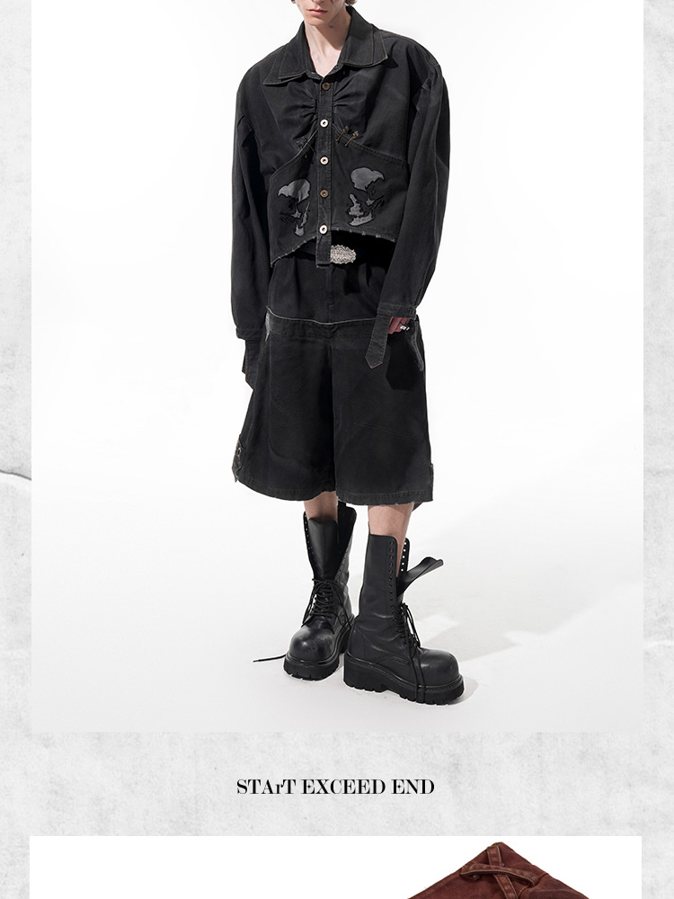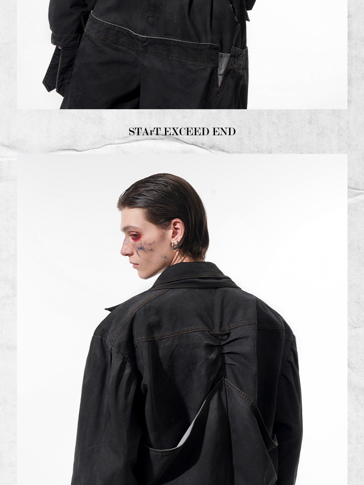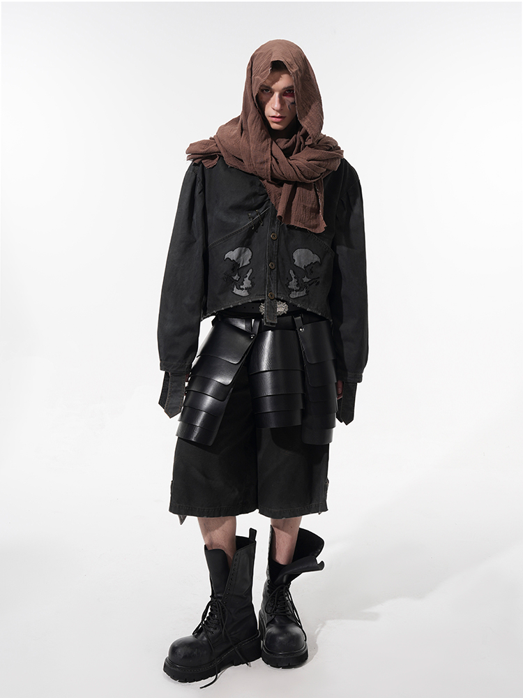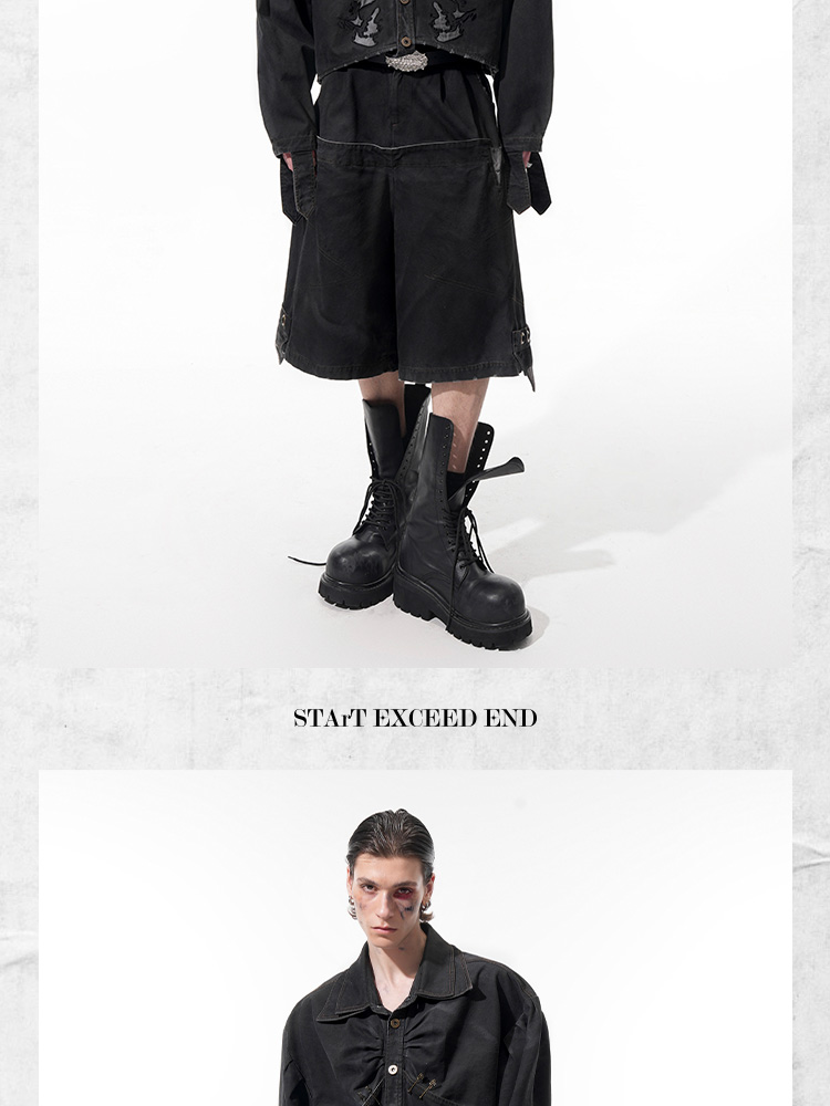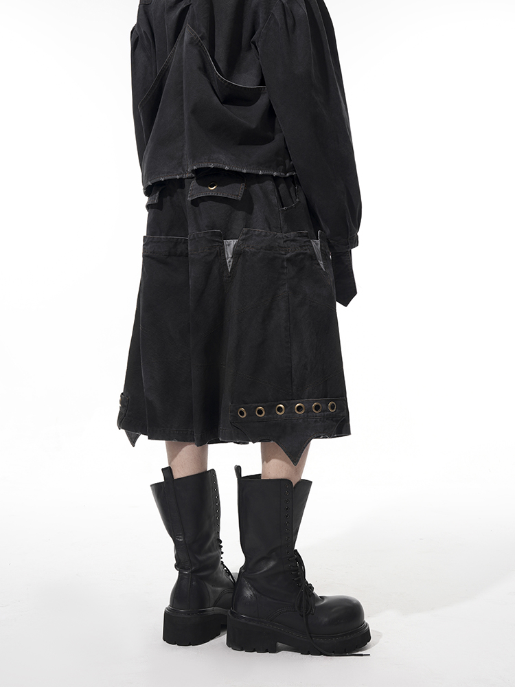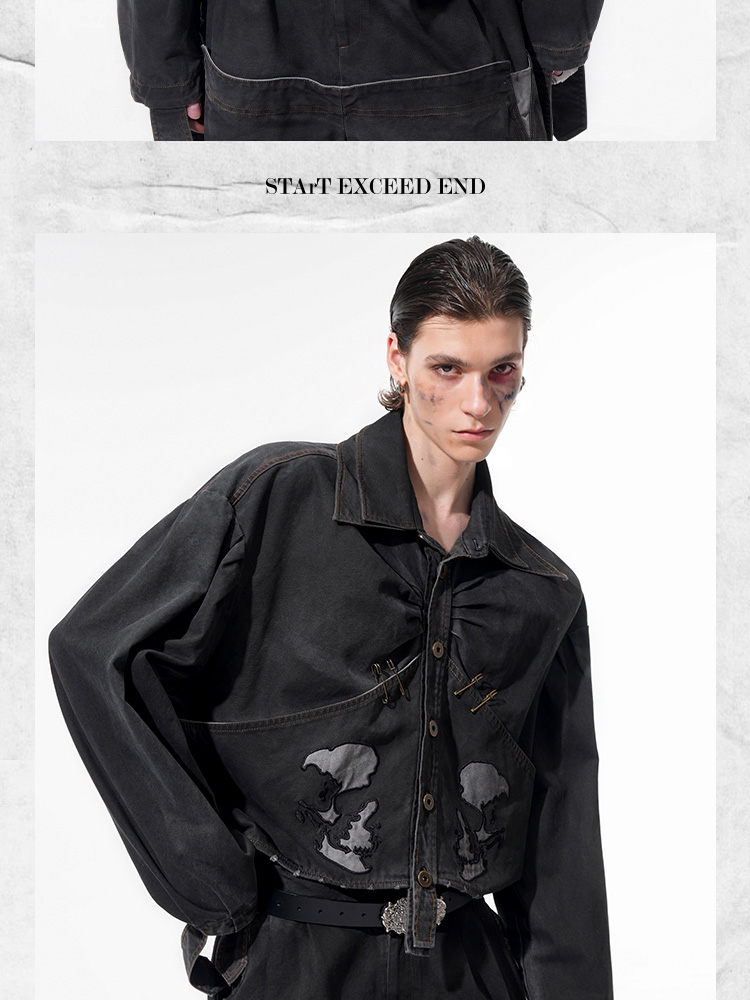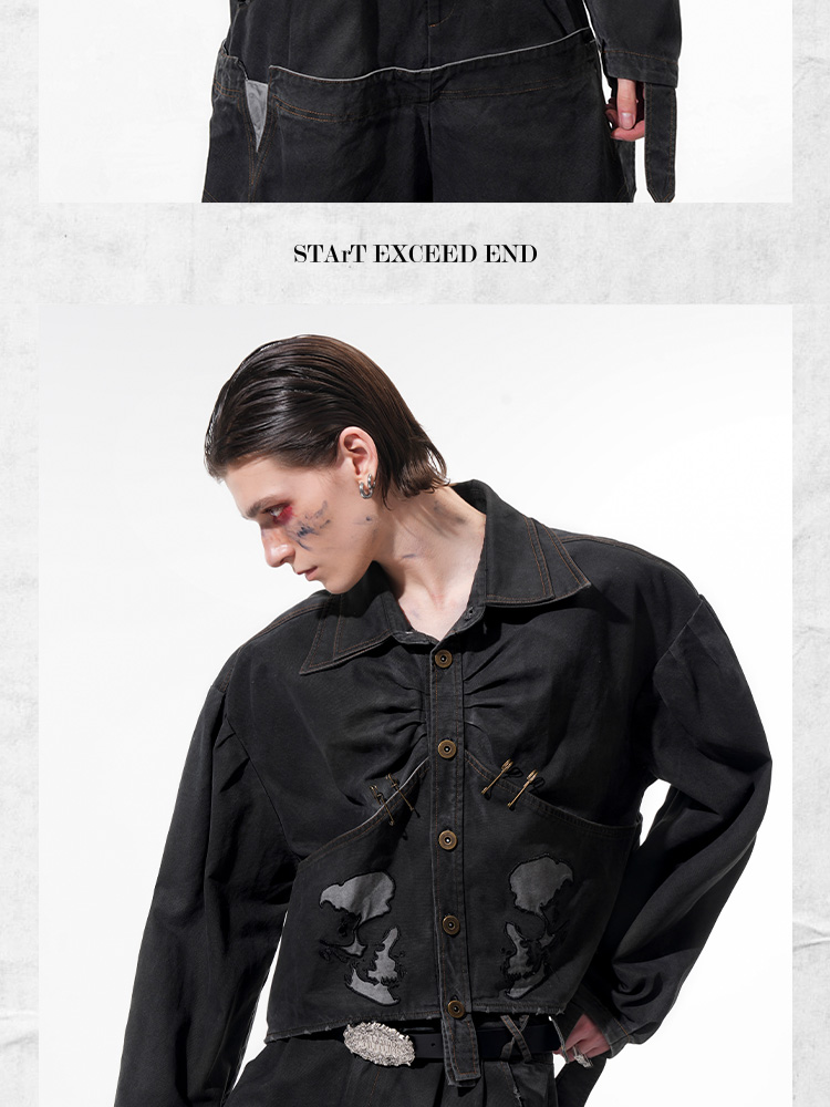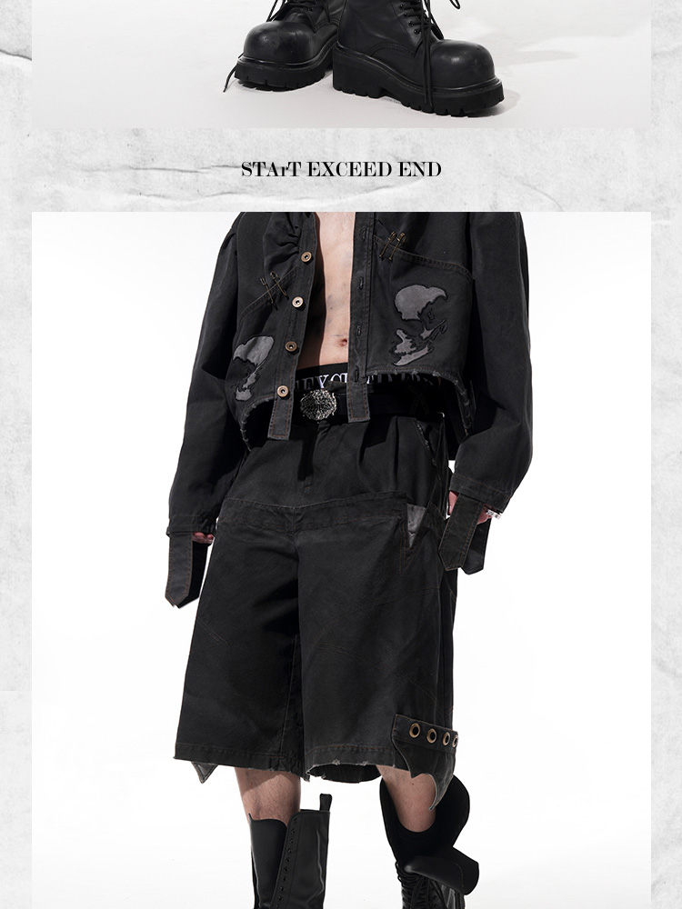 Large Pocket Denim Short Jacket & Wide-leg Half Pants Setup WN14870