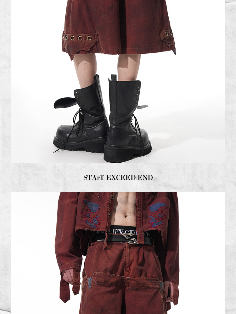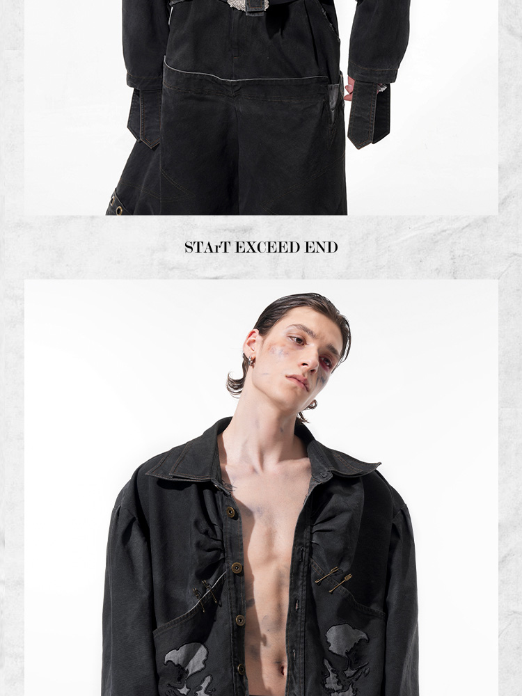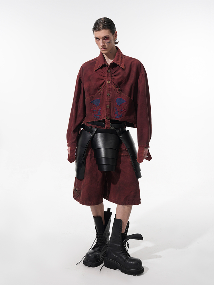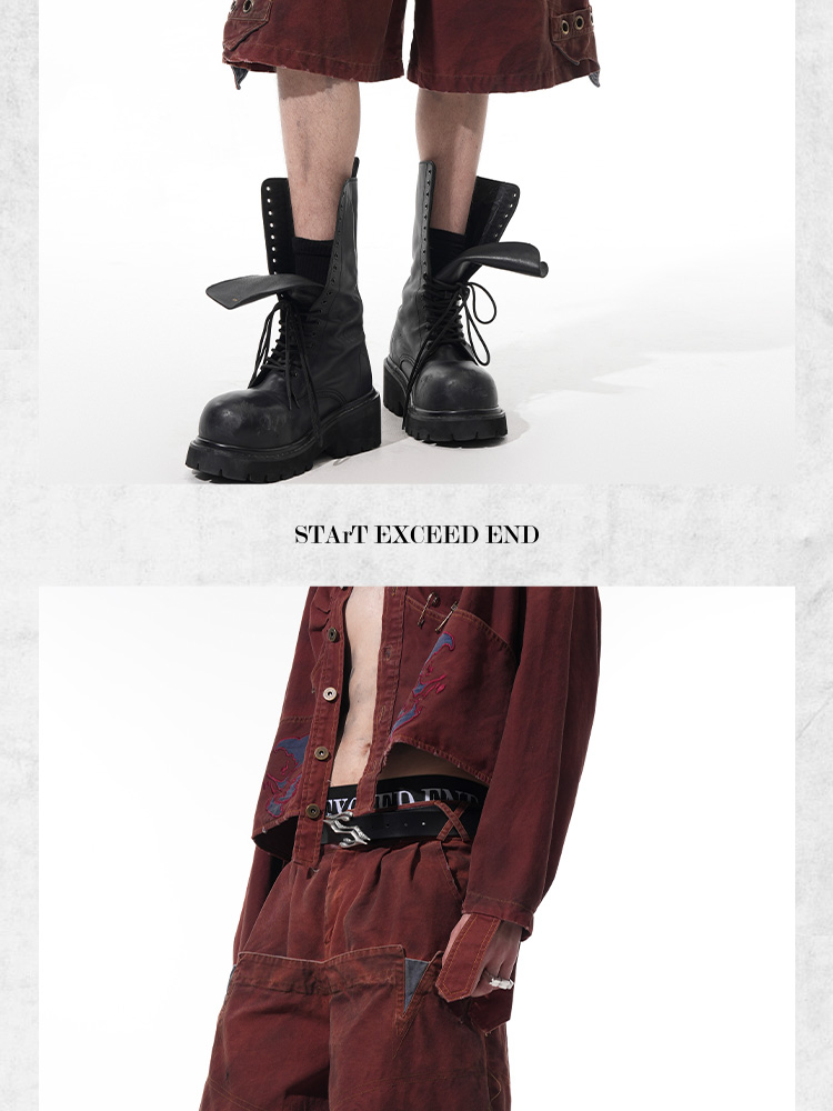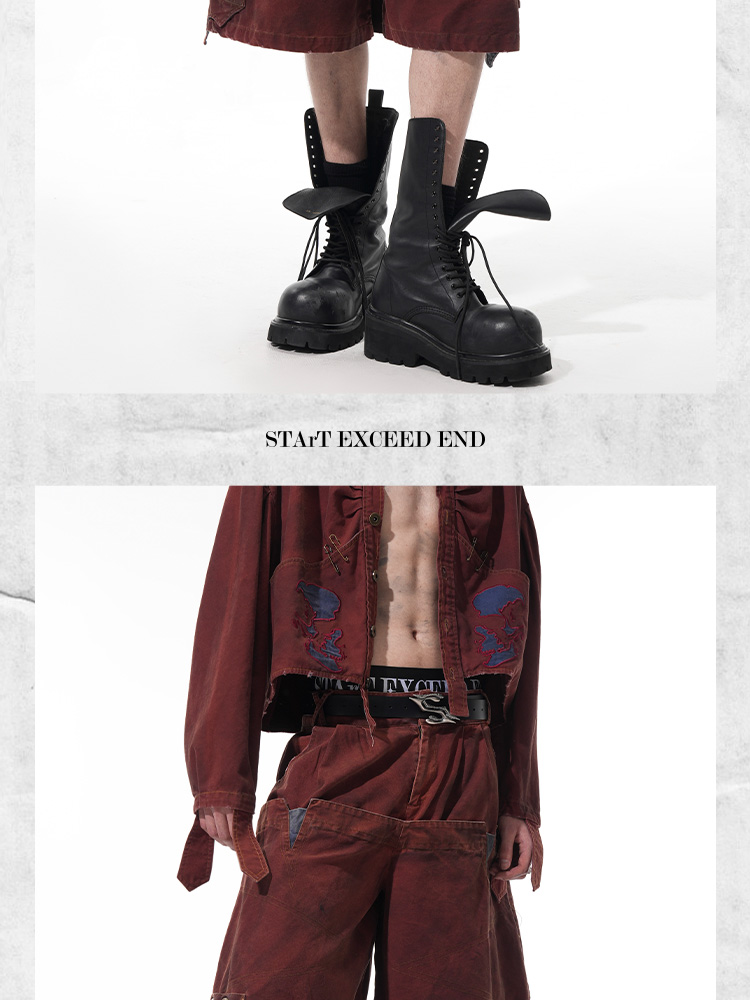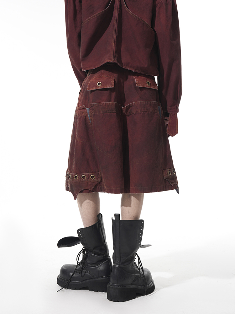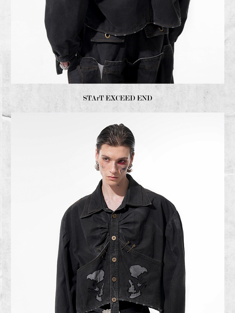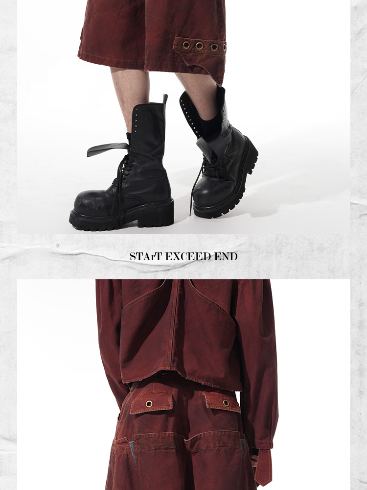 Large Pocket Denim Short Jacket & Wide-leg Half Pants Setup WN14870