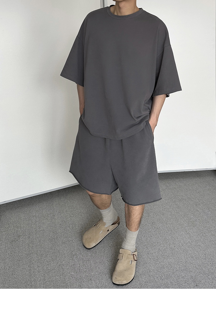 Comfortable Oversize Short Sleeve T-Shirt & Wide Leg Half Pants Setup WN15153