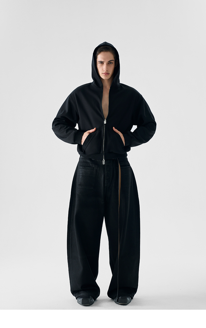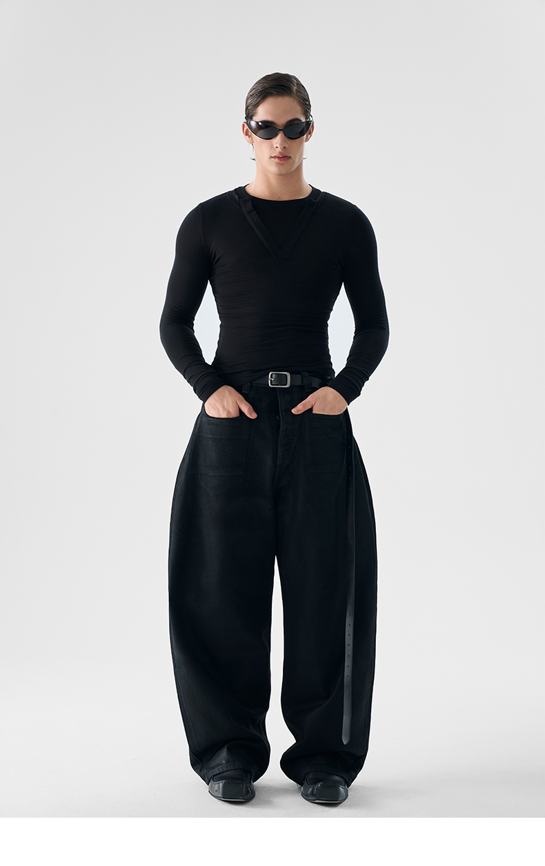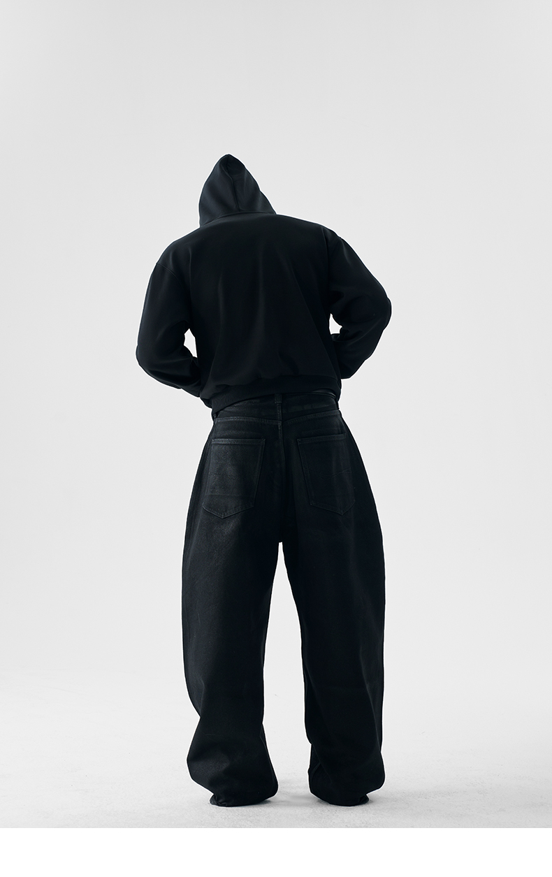 Waxed Finish 3D Inverted-Pocket Baggy Wide-Leg Denim Jeans WN15178