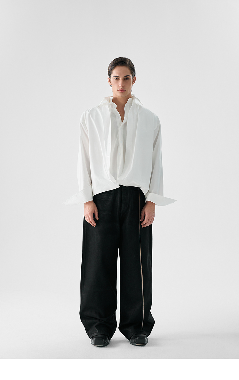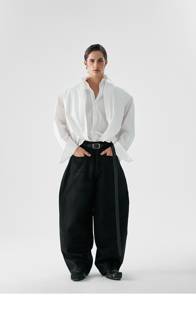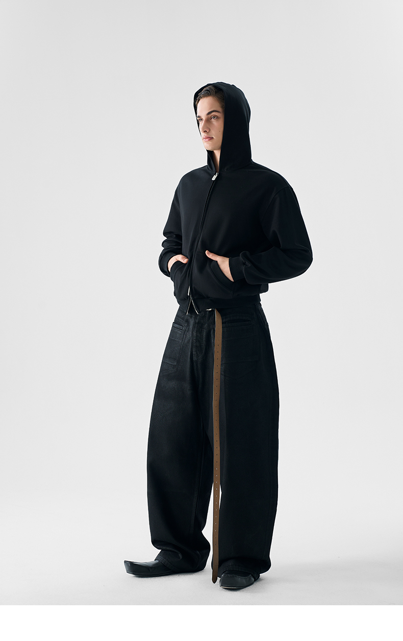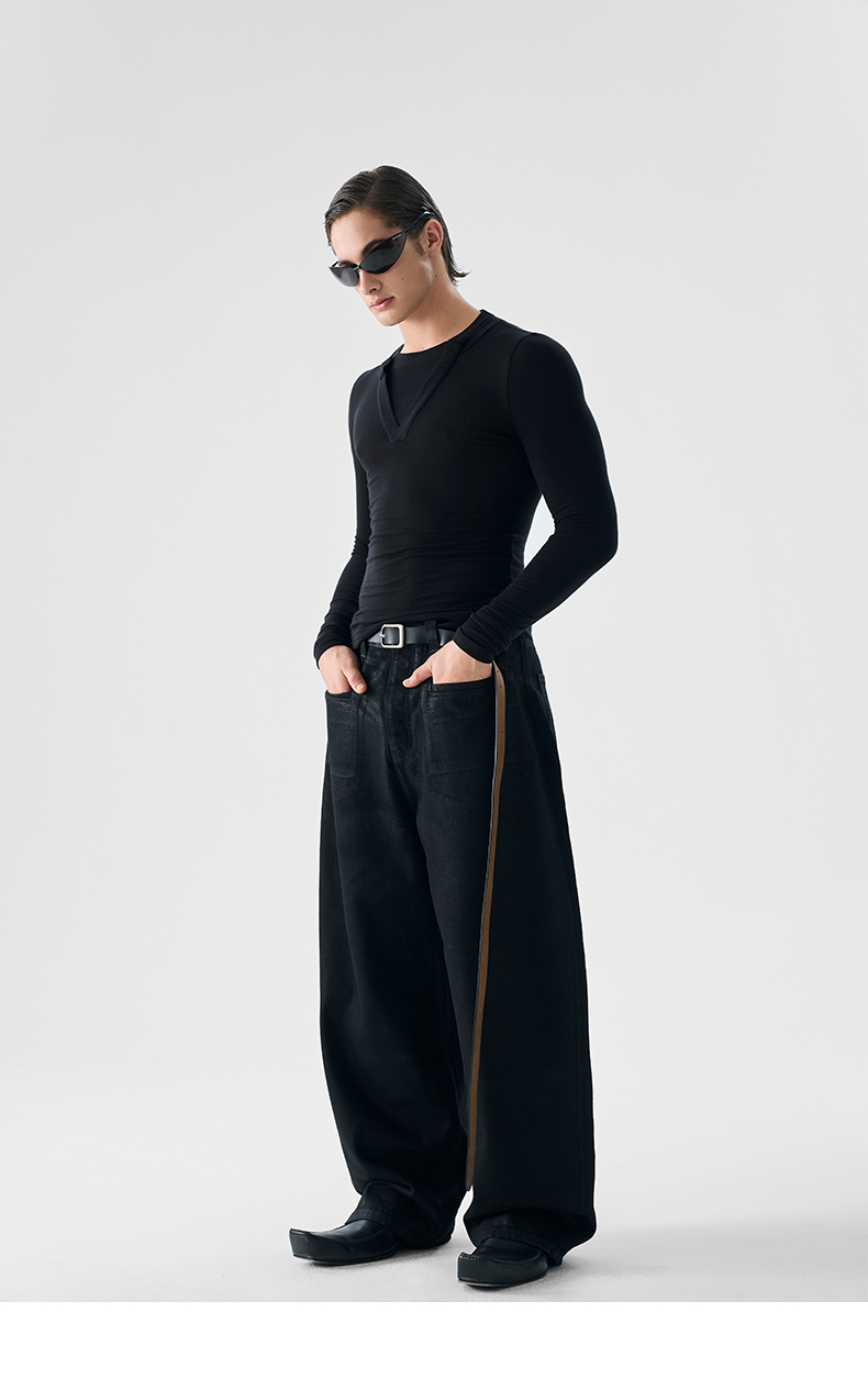Waxed Finish 3D Inverted-Pocket Baggy Wide-Leg Denim Jeans WN15178
