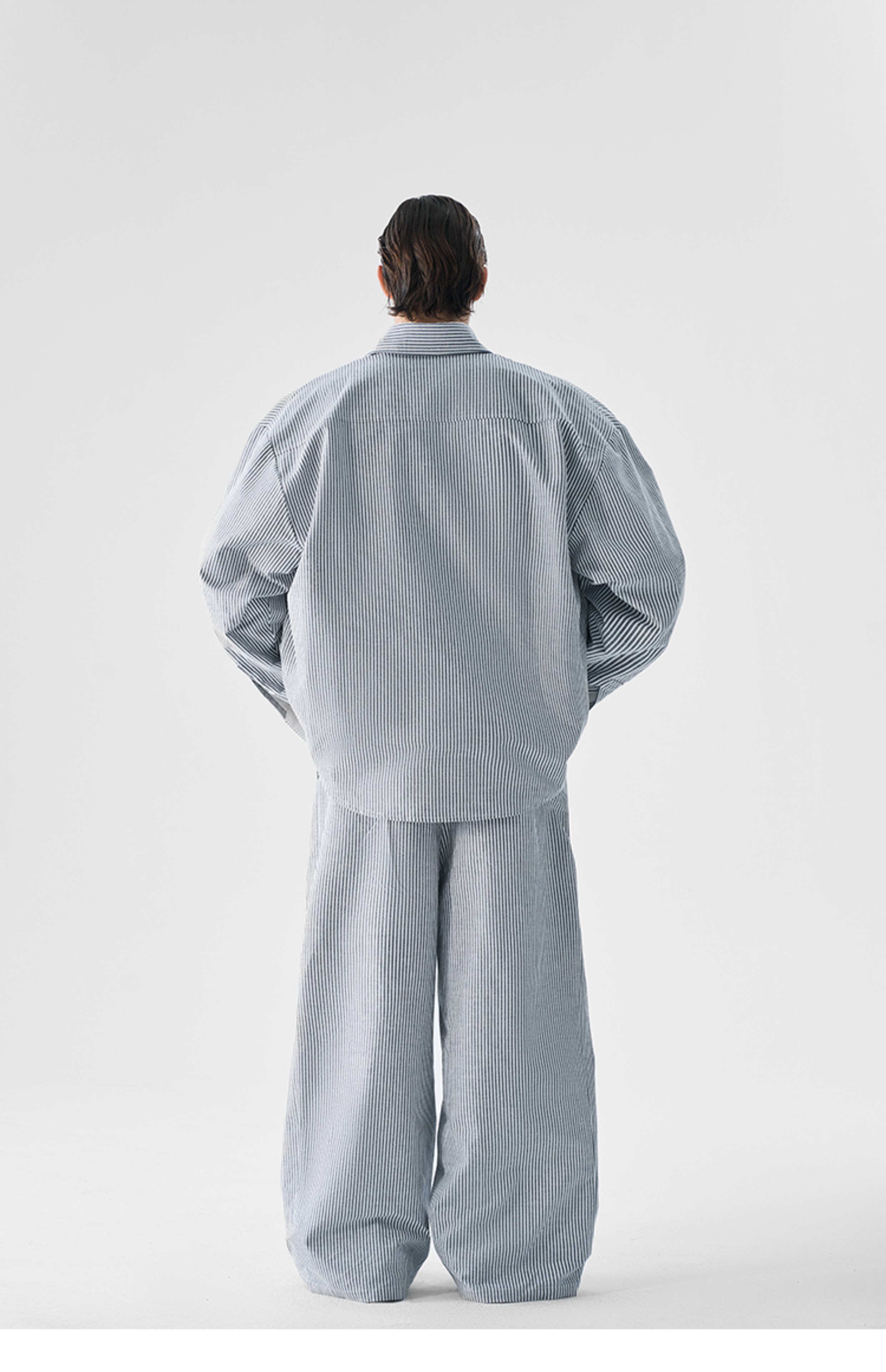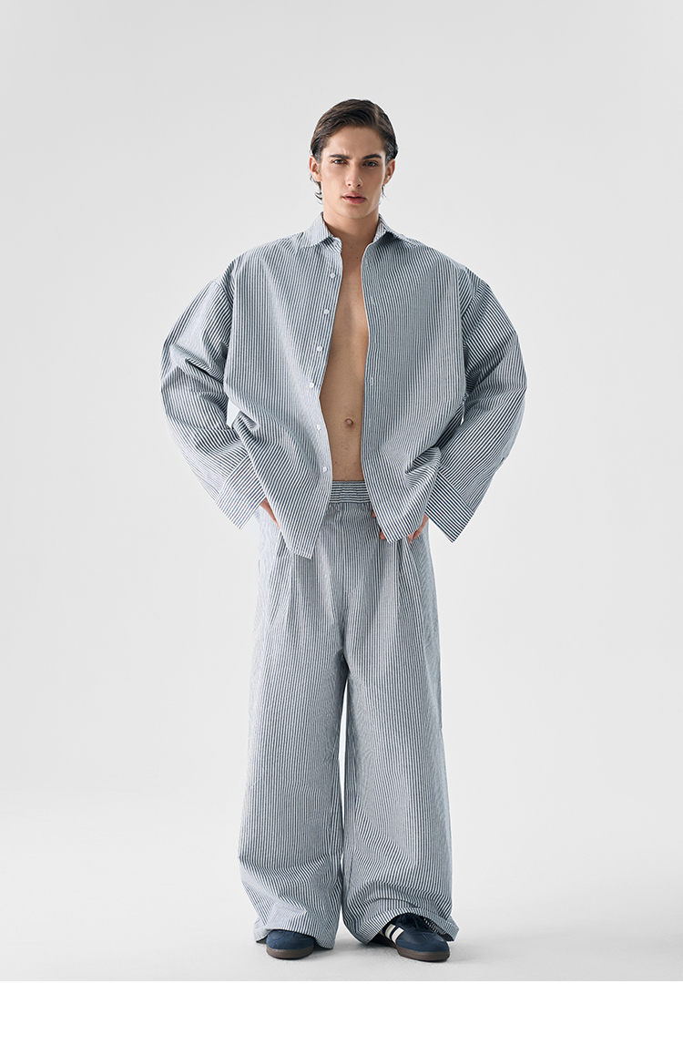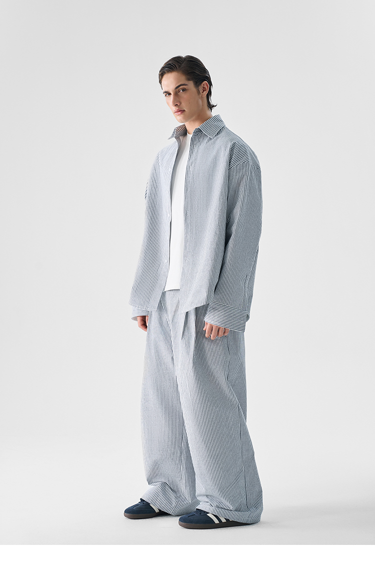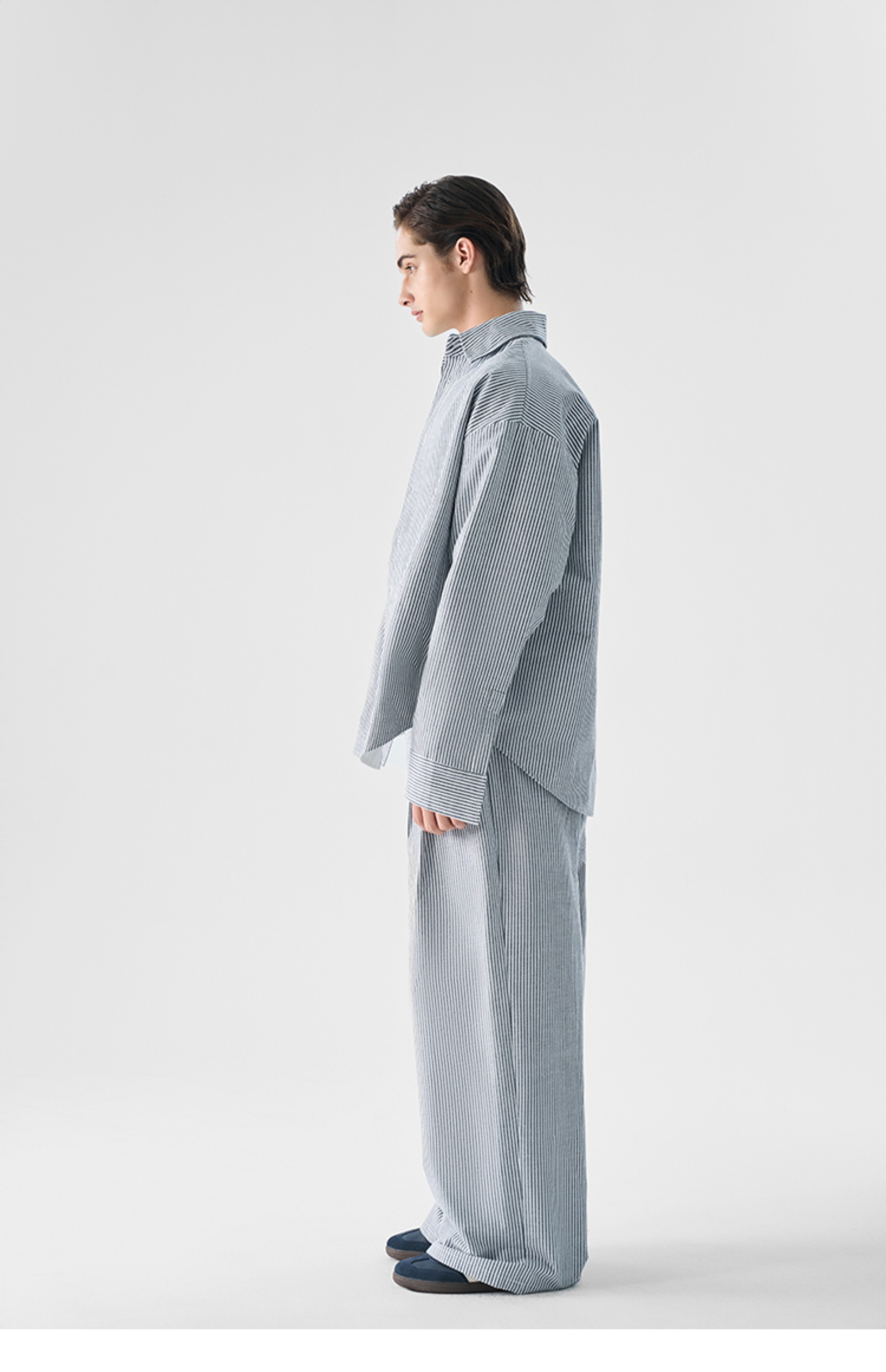 Linen Oversize Stripe Shirt & Stripe Wide-Leg Pants Setup WN15190