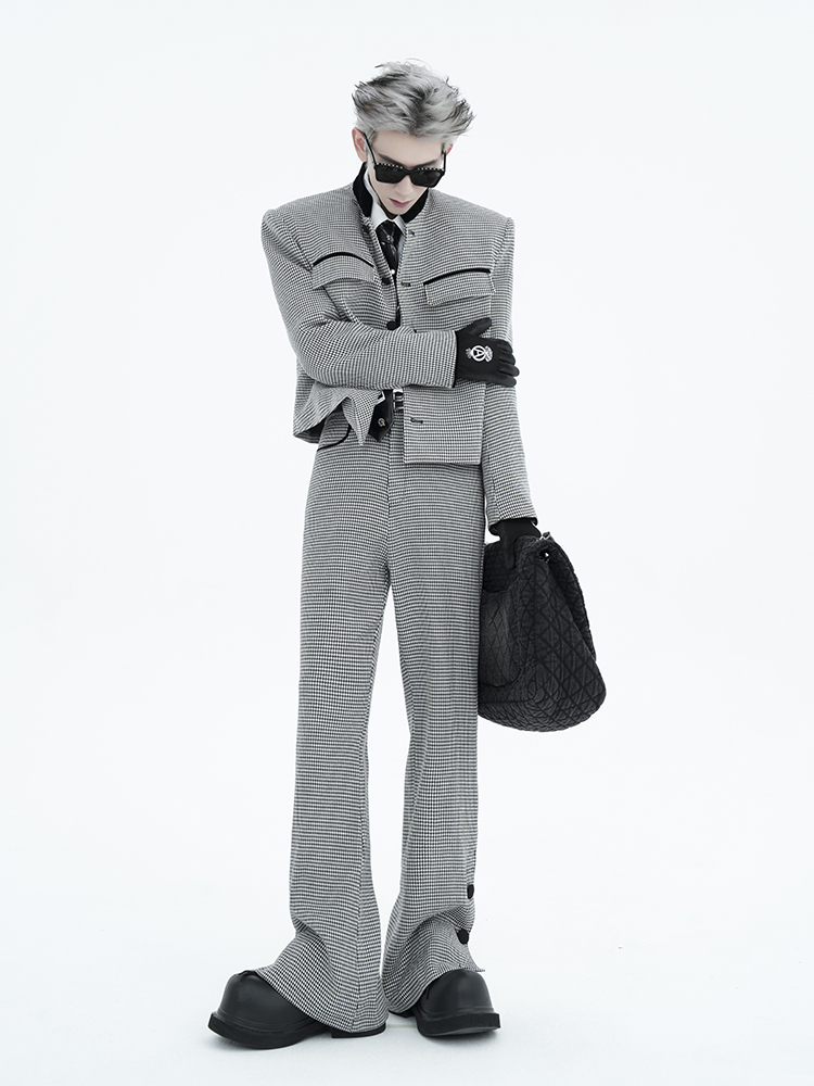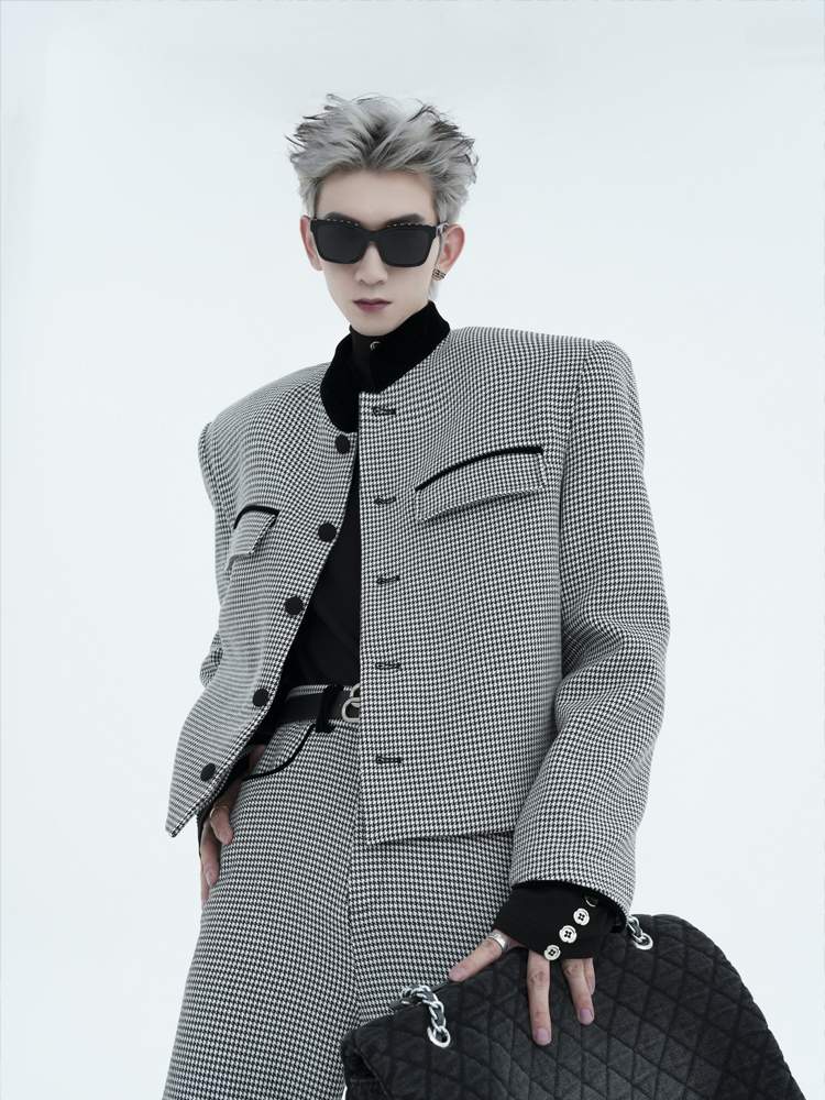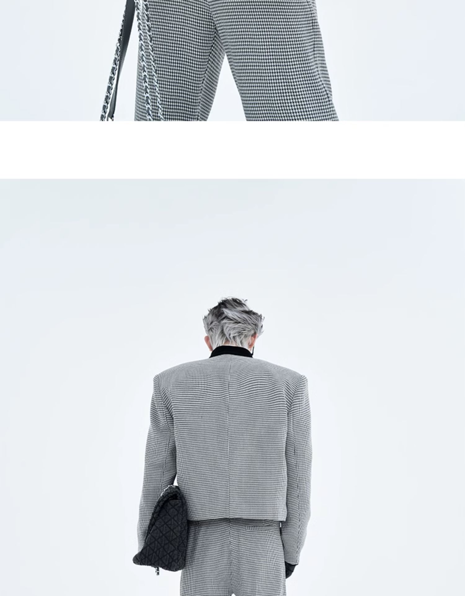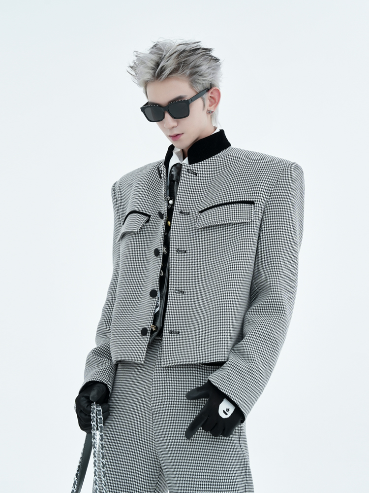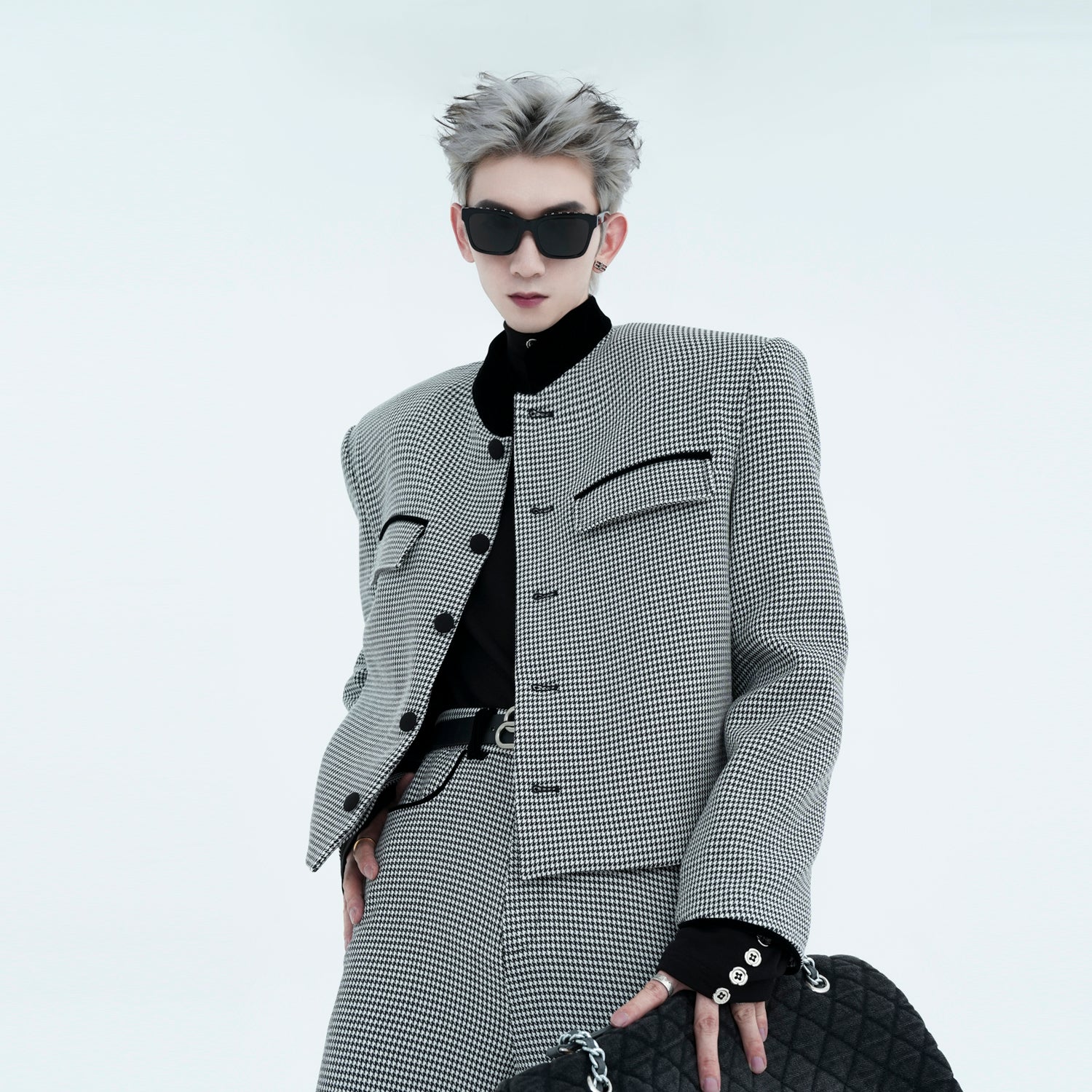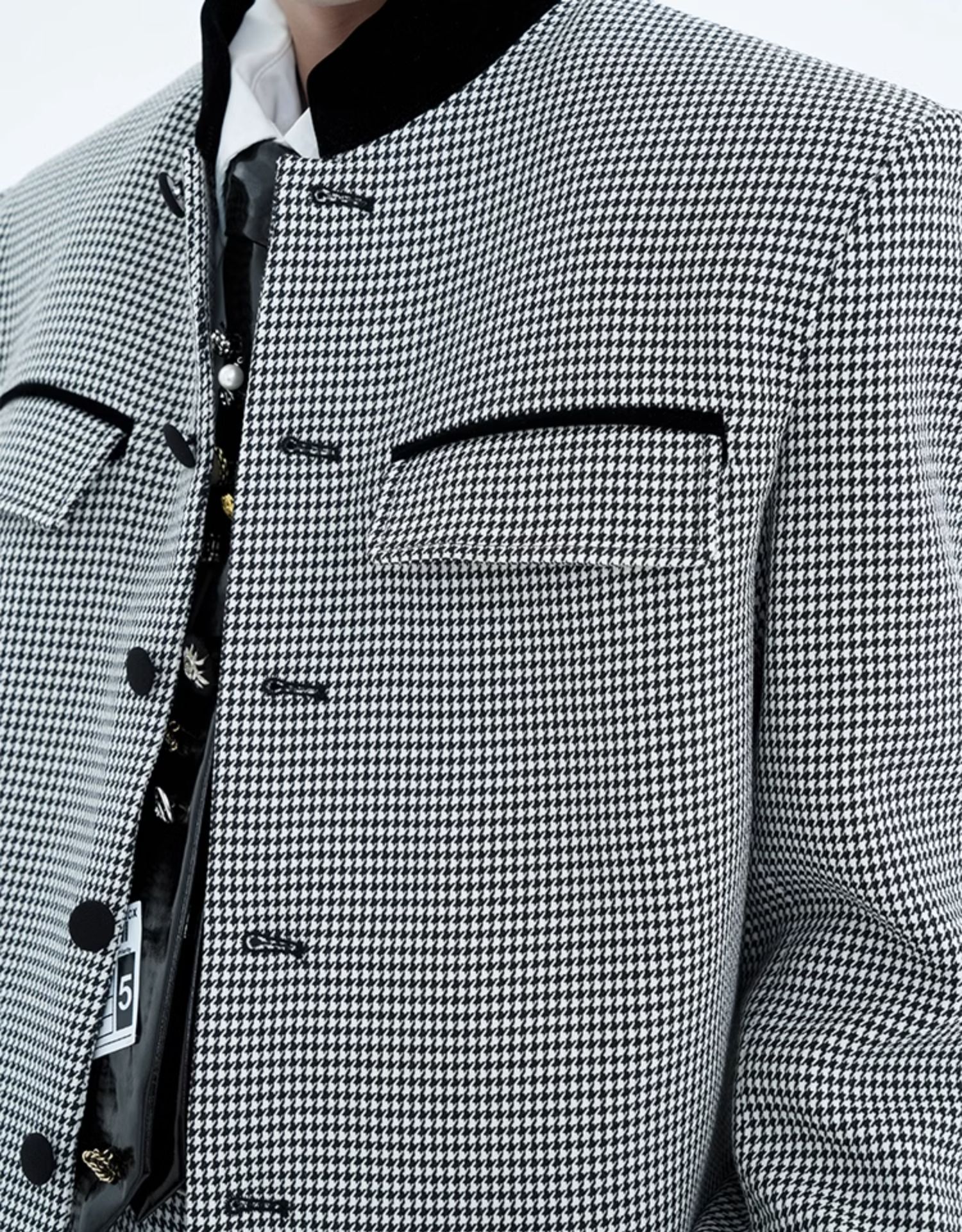 Houndstooth Shoulder-Pad Short Jacket WN15456