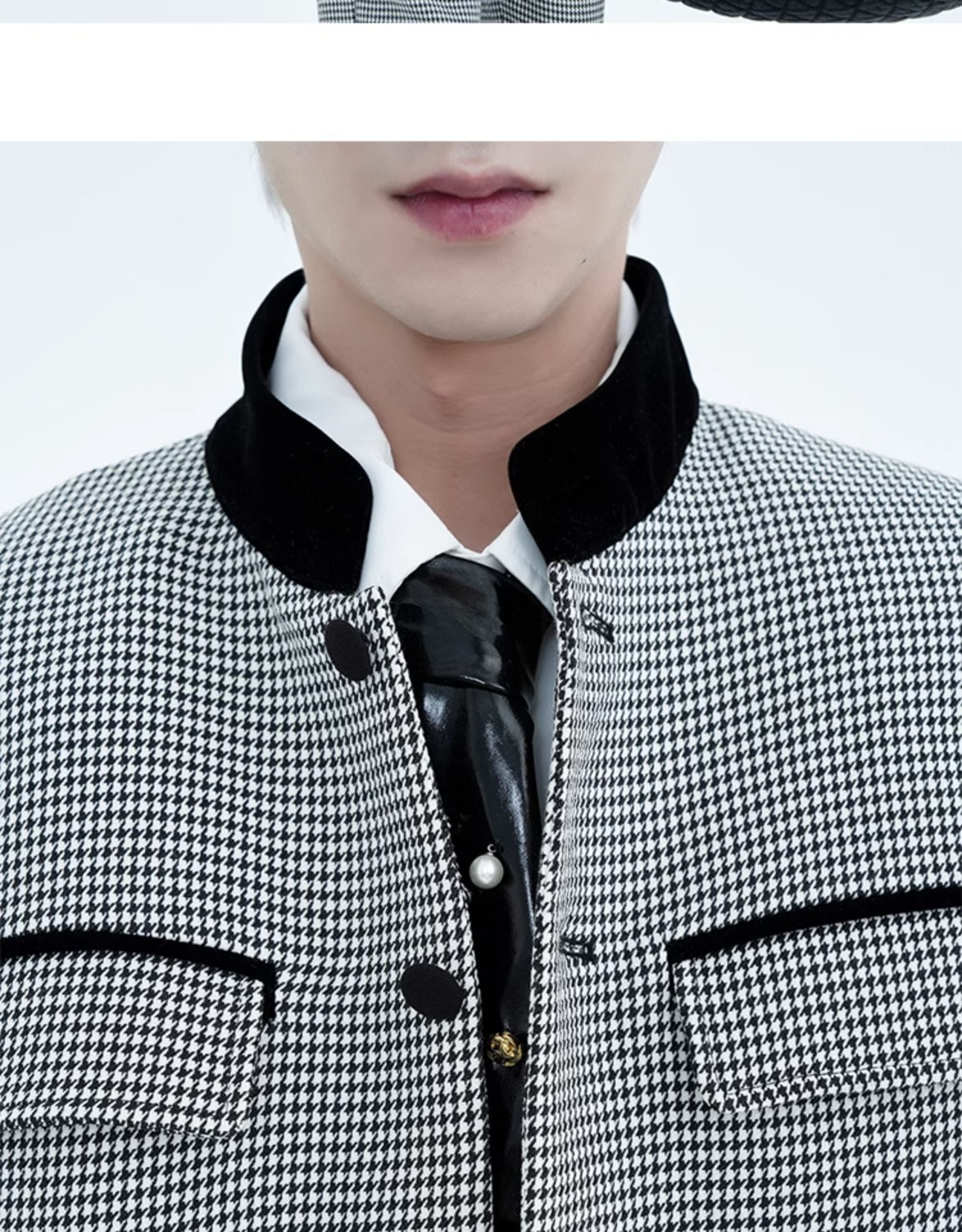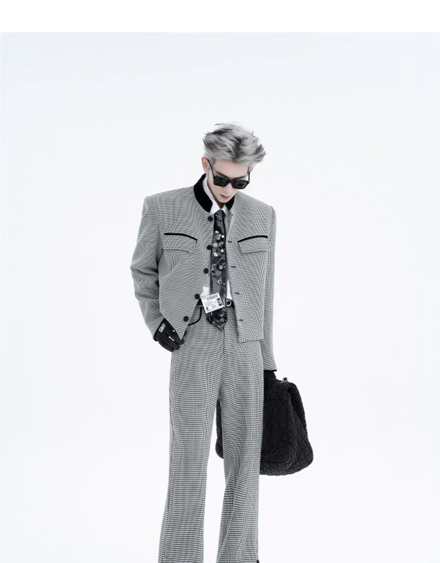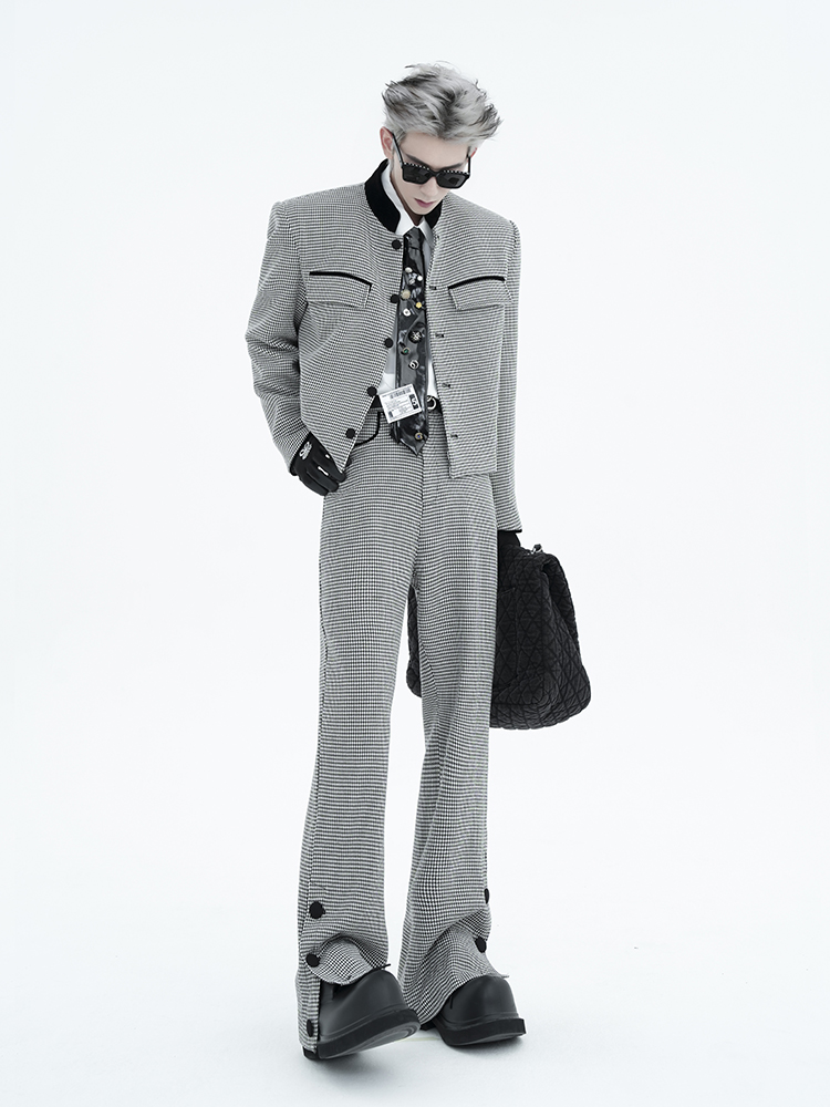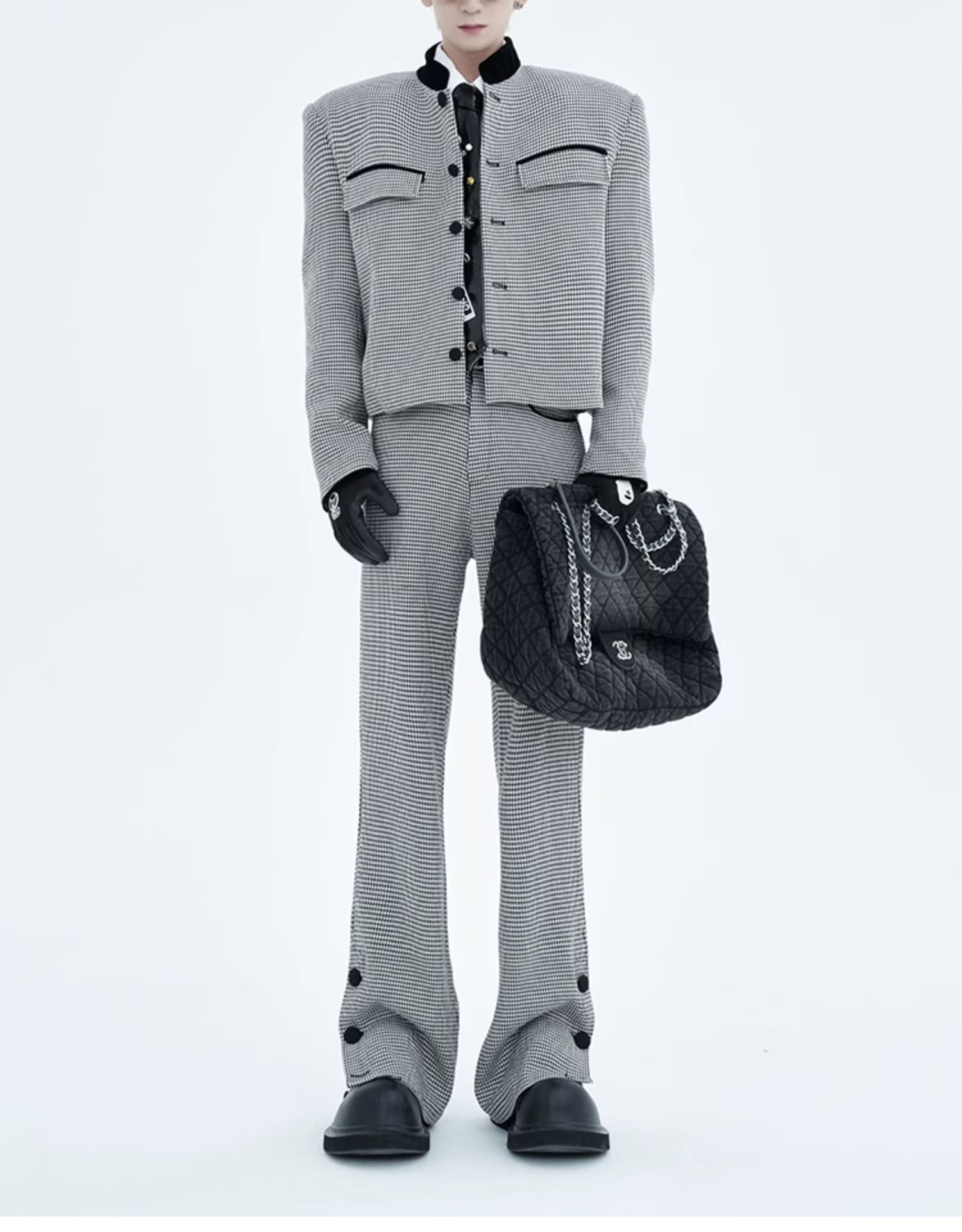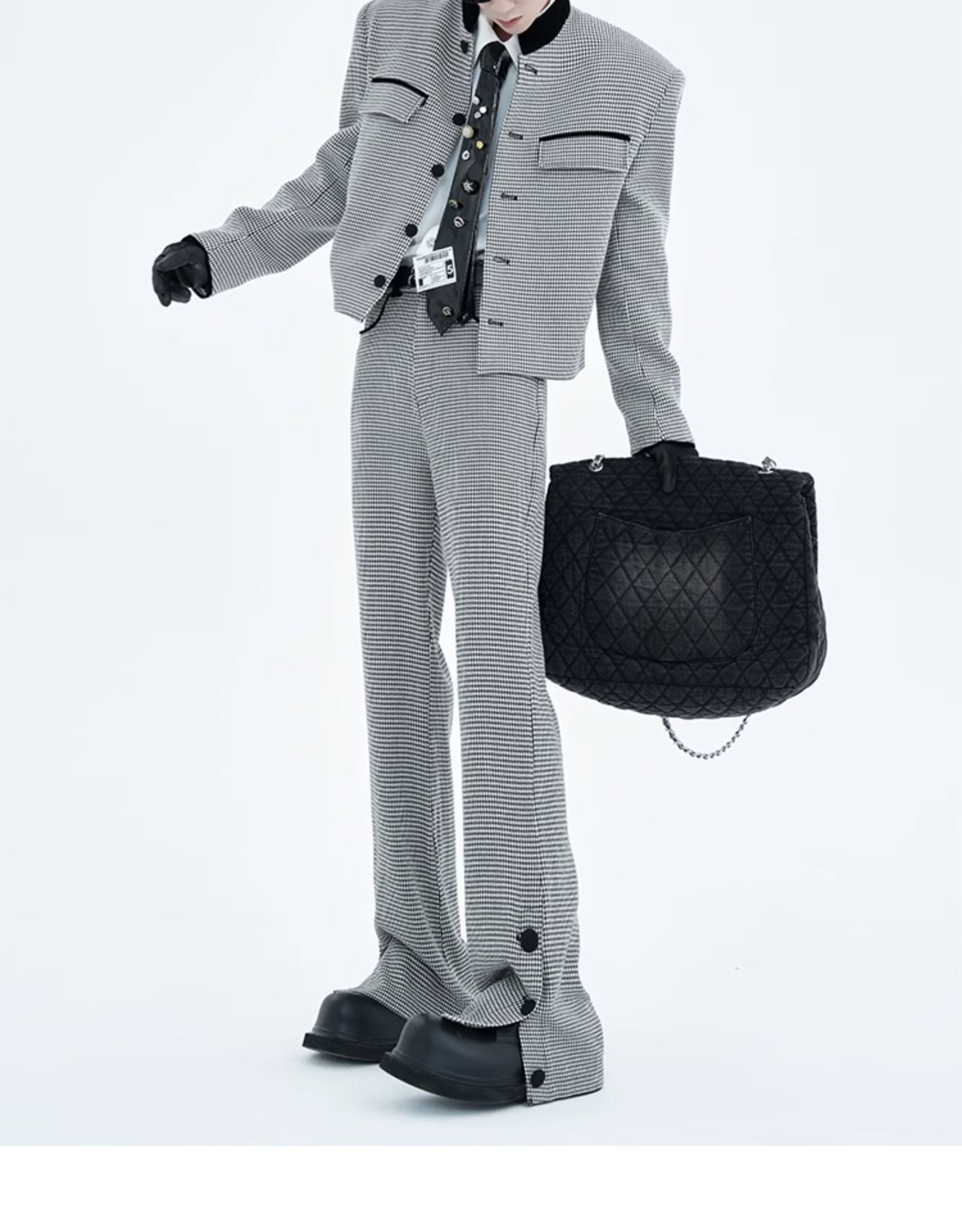 Houndstooth Shoulder-Pad Short Jacket WN15456