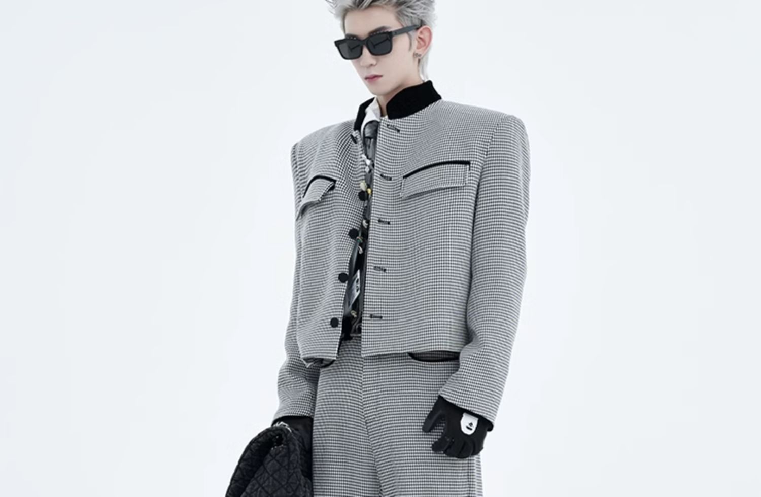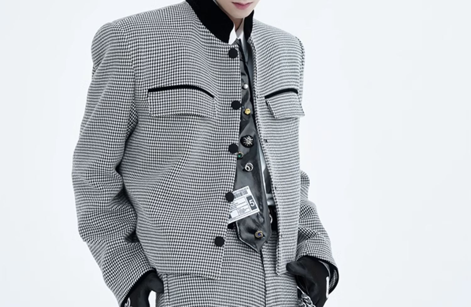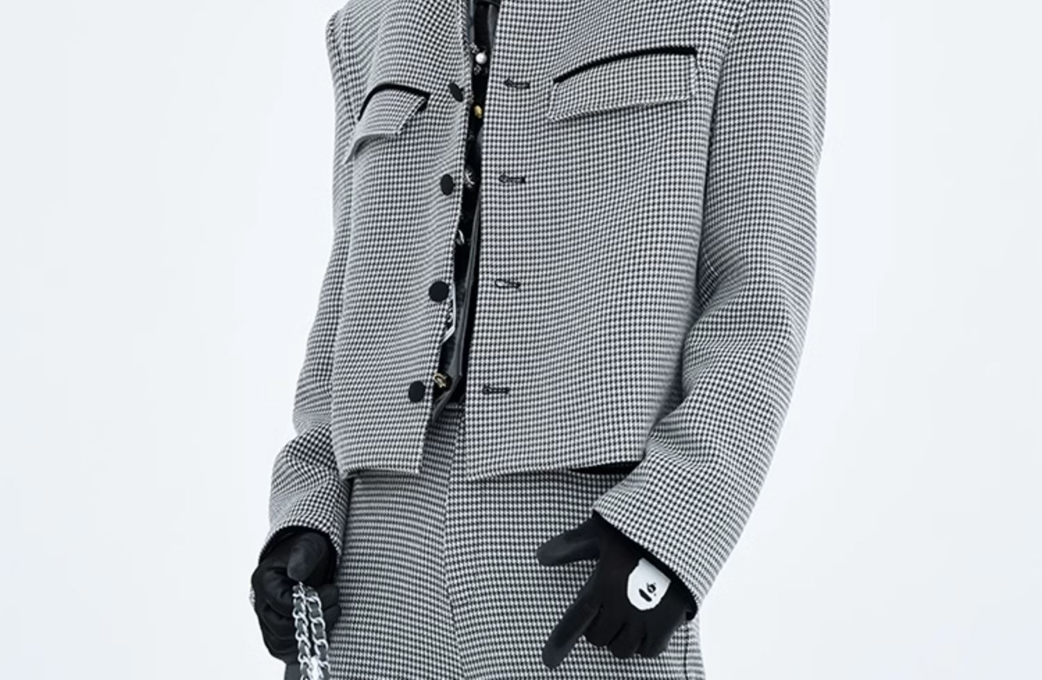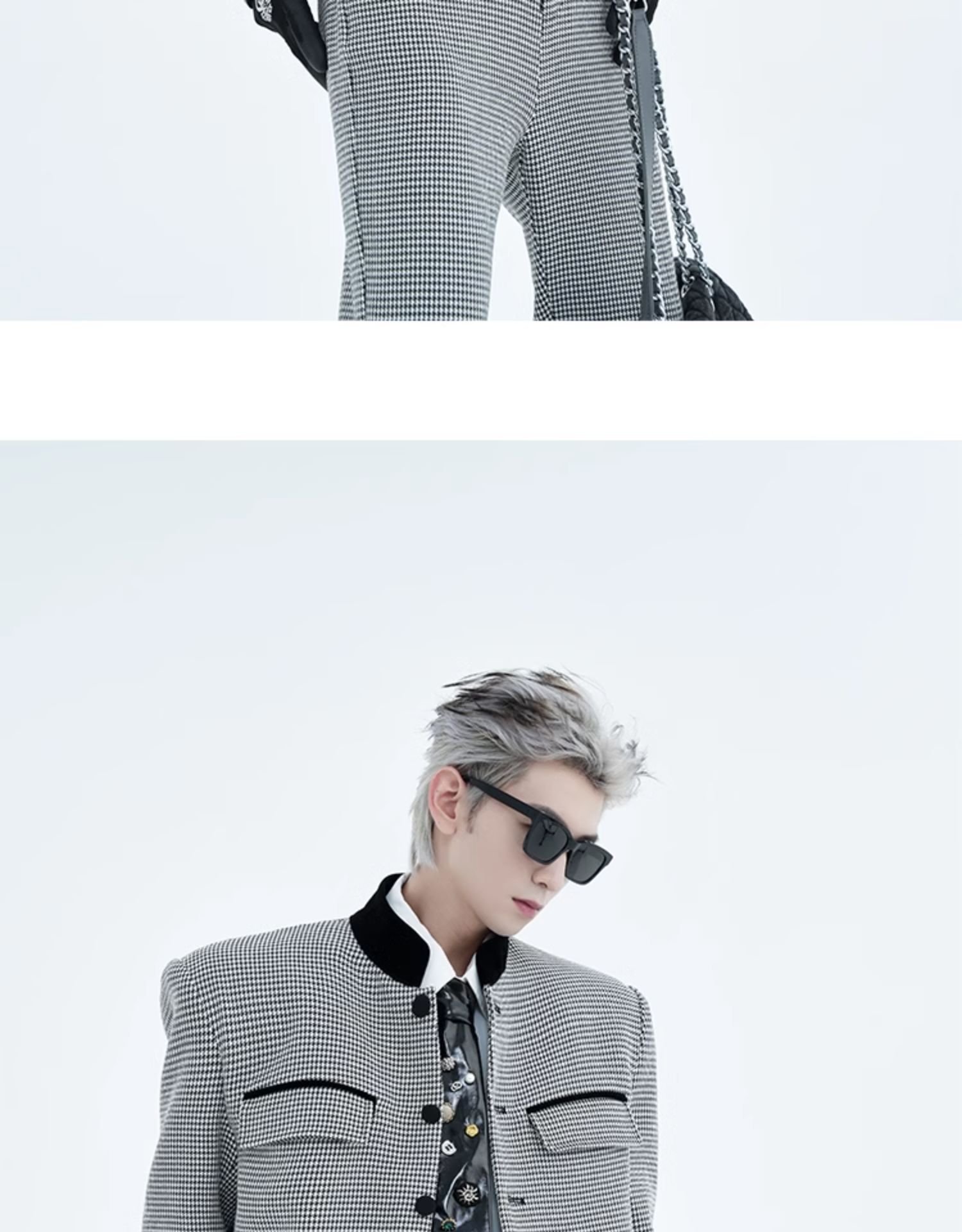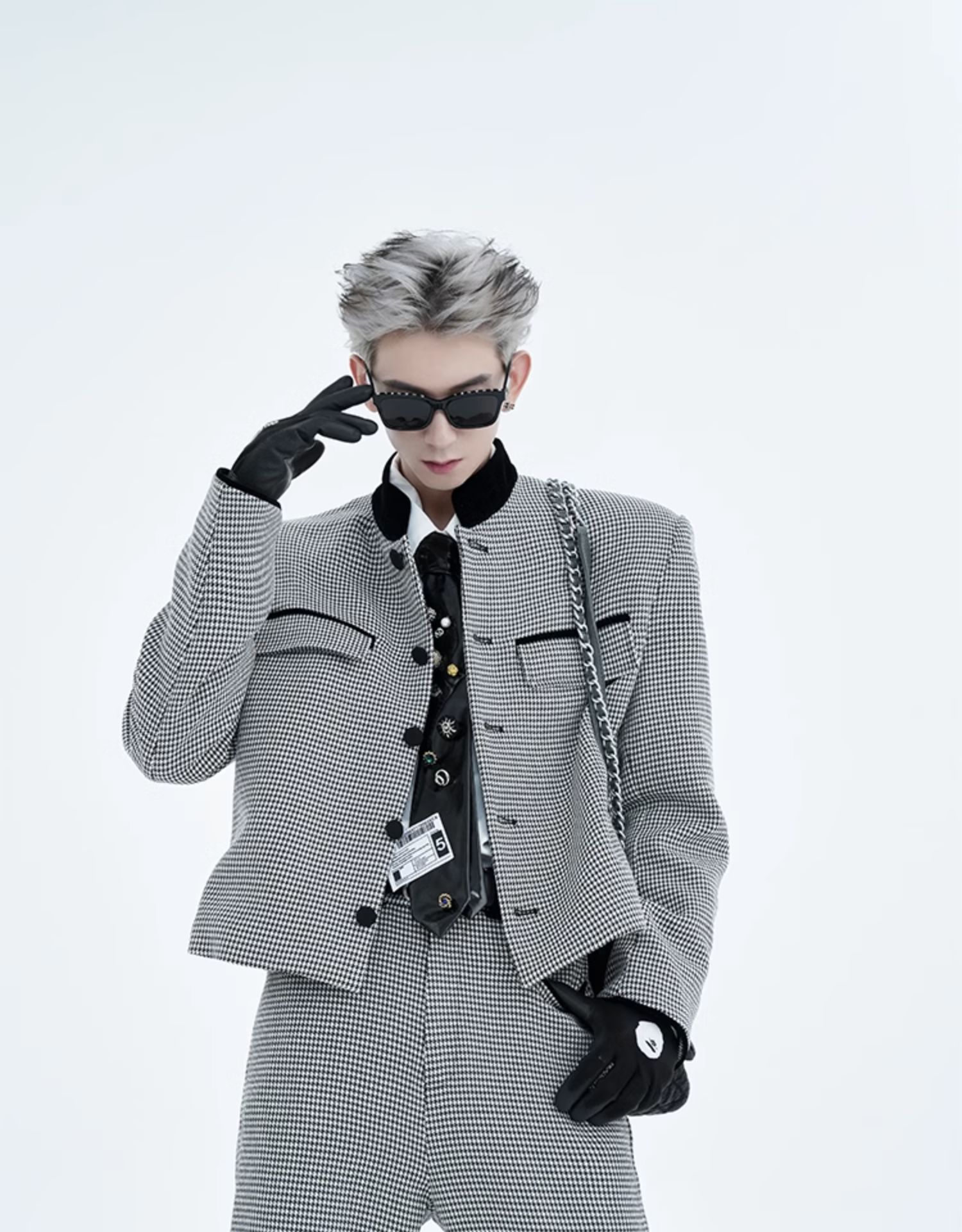 Houndstooth Shoulder-Pad Short Jacket WN15456