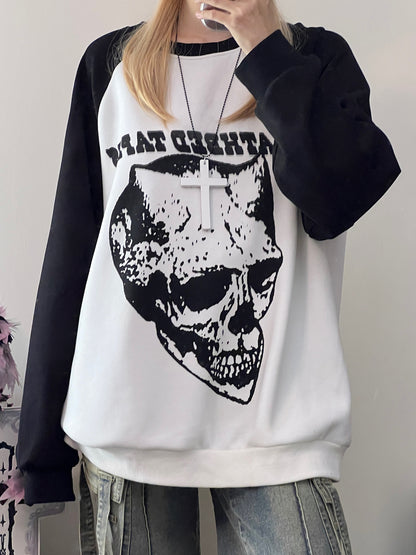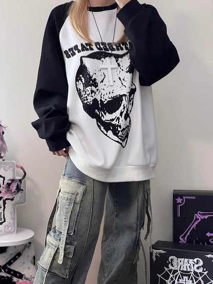 Skull Print Oversize Raglan Sleeve Sweatshirt WN15615