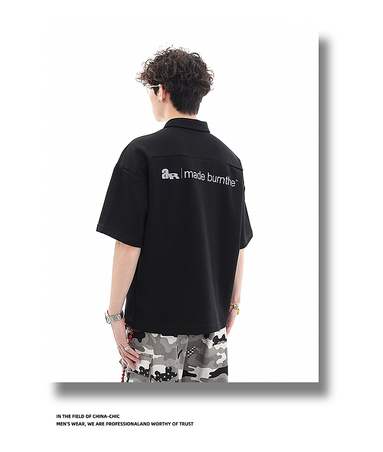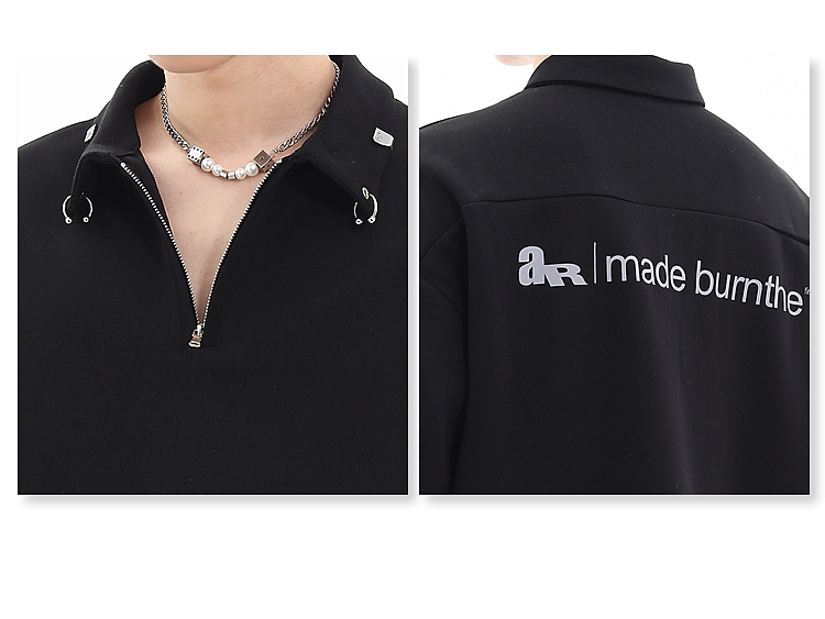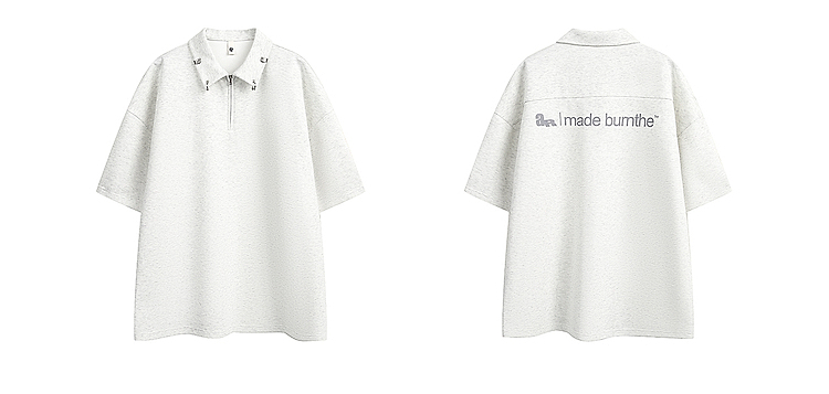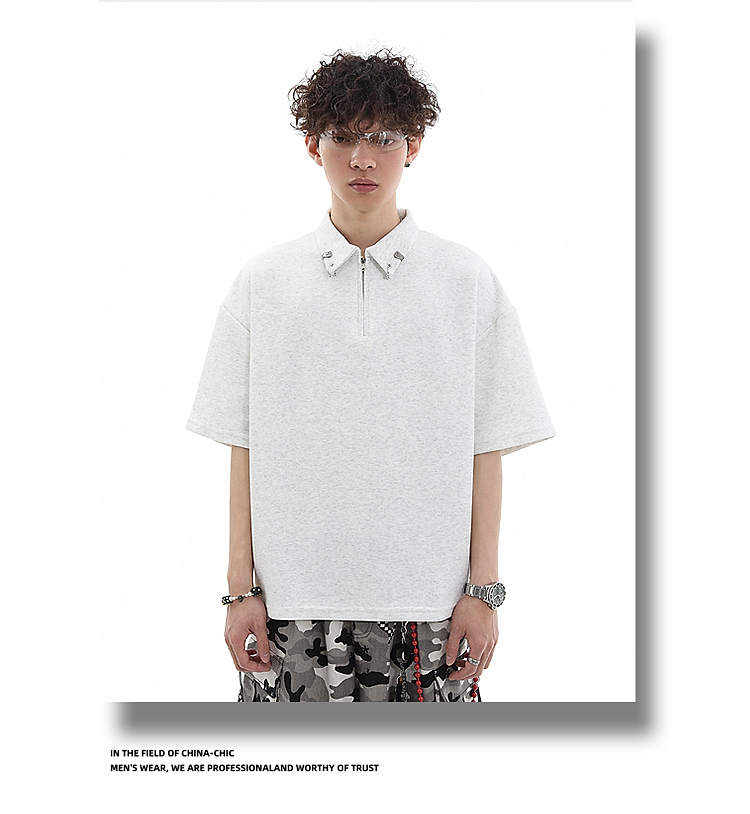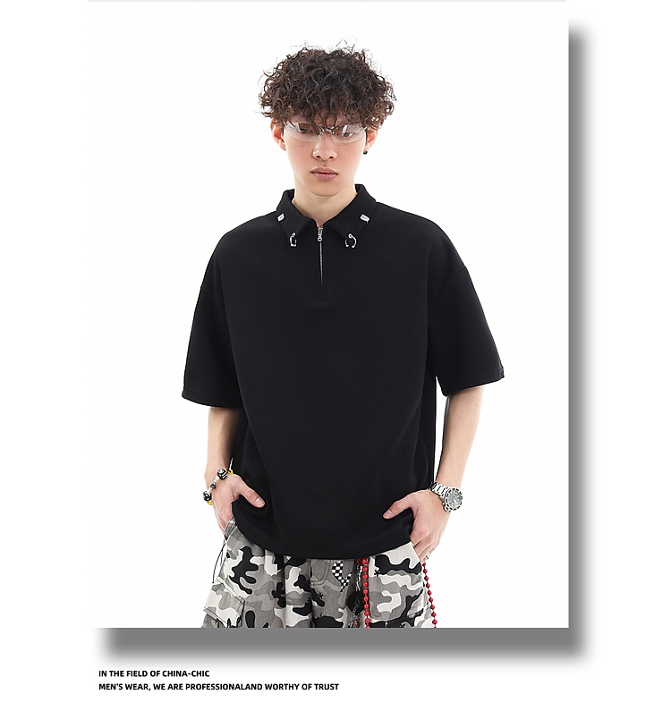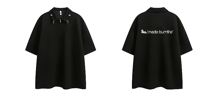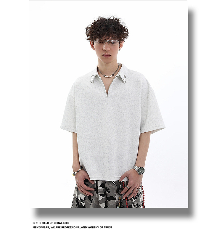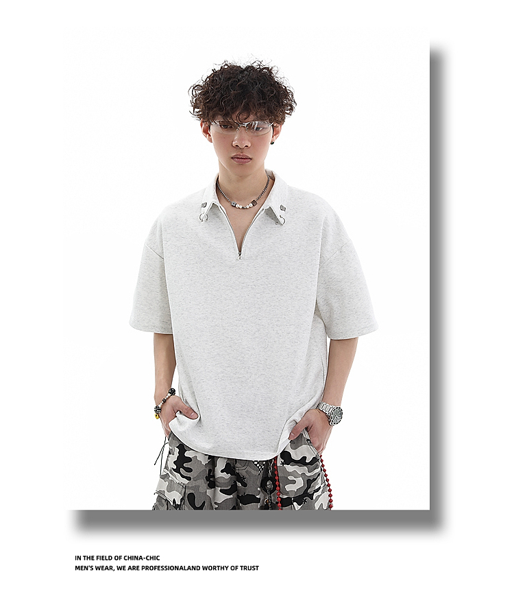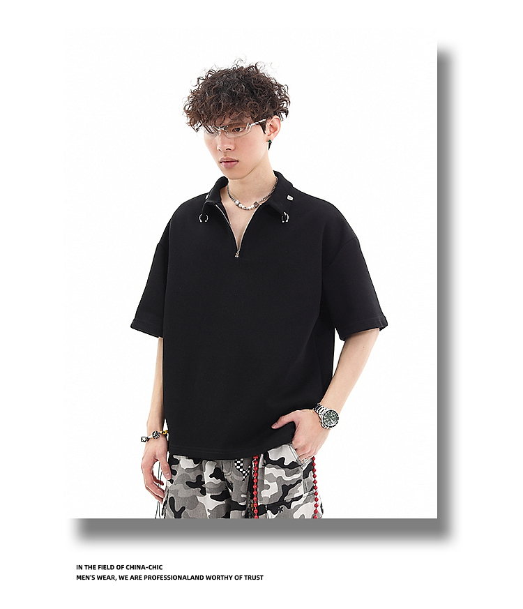 Half Zipper Metal Button Oversize Short Sleeve T-Shirt WN15666