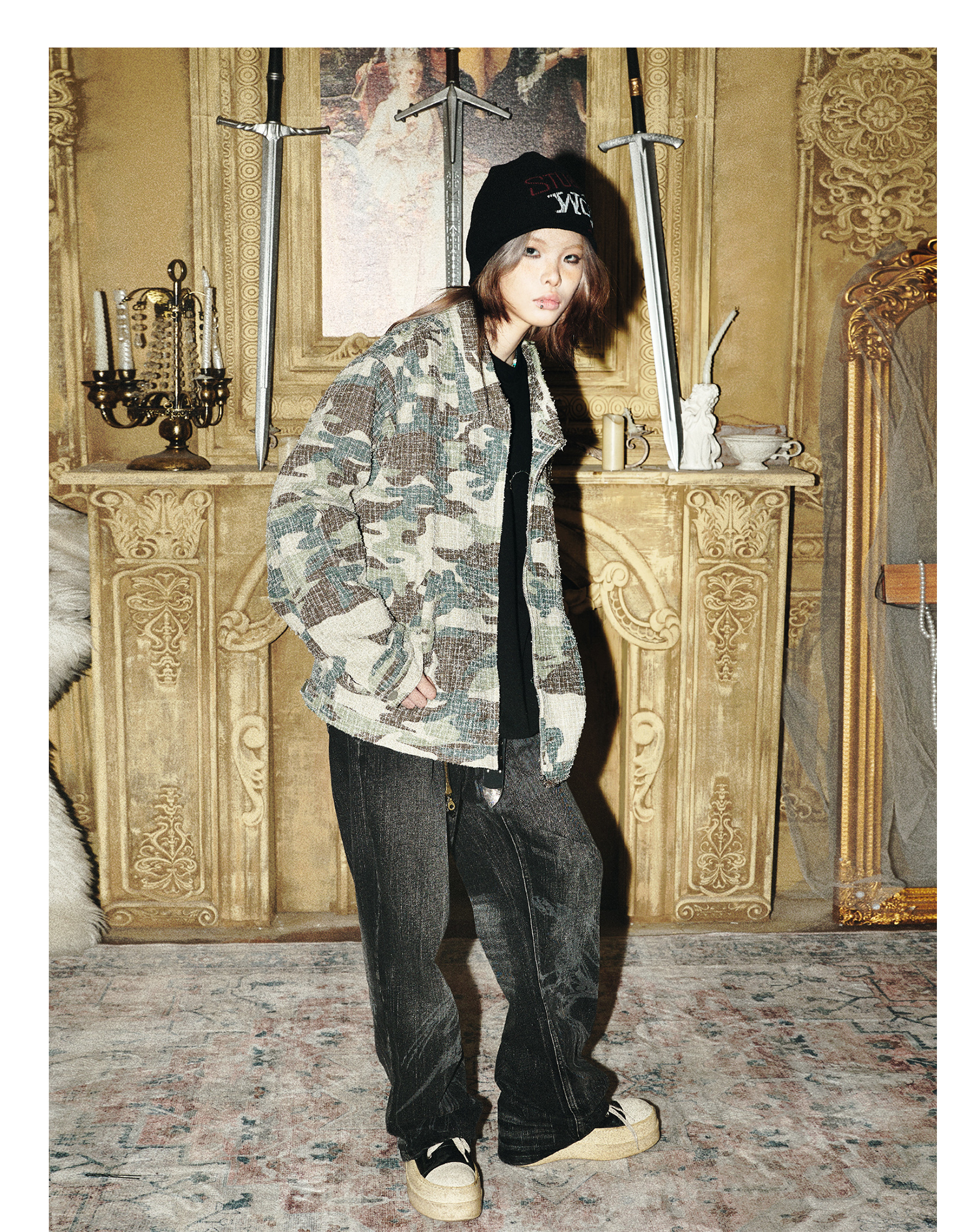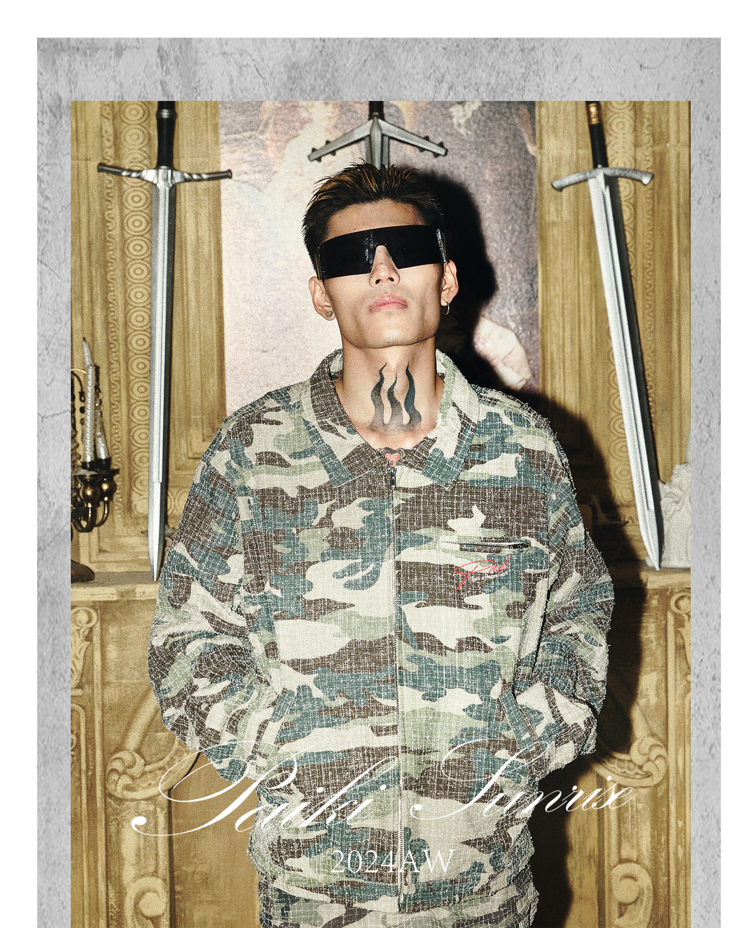 Camouflage Print Zipper Long Sleeve Shirt WN15830