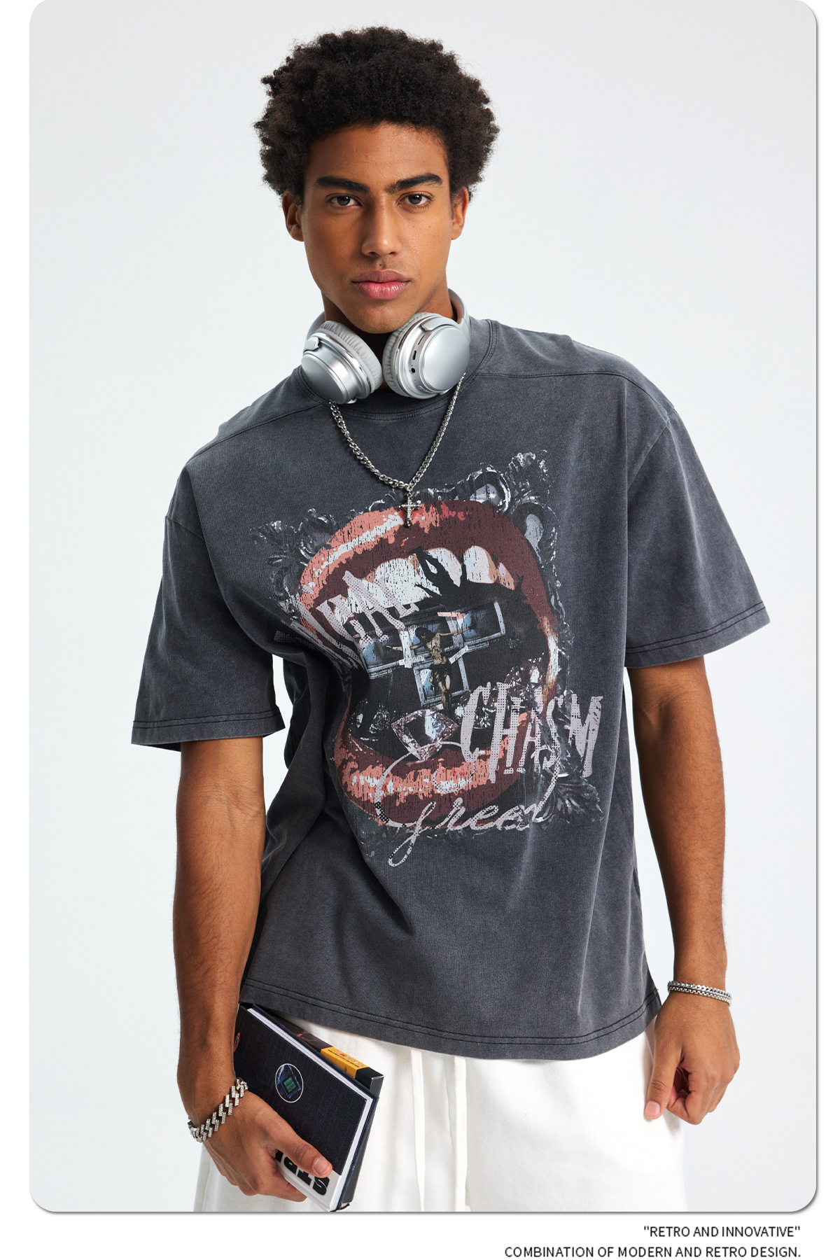 Wax Dye Washed Graphic Print Short Sleeve T-Shirt WN16253