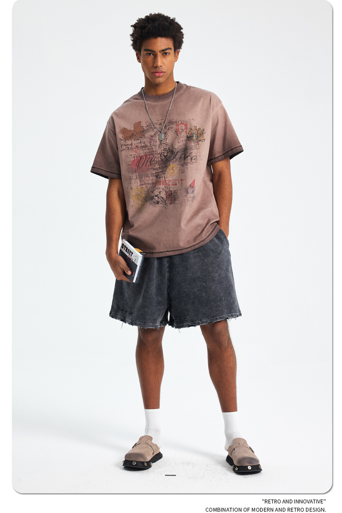 Washed Wax Dye Faded Print Short Sleeve T-Shirt WN16255