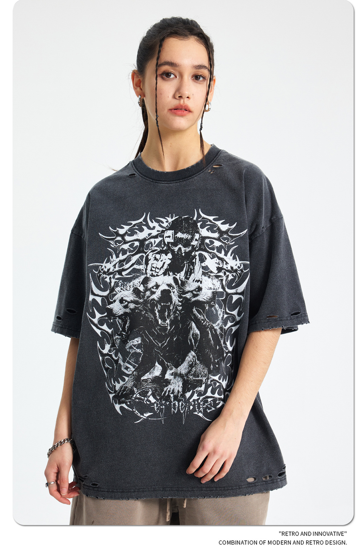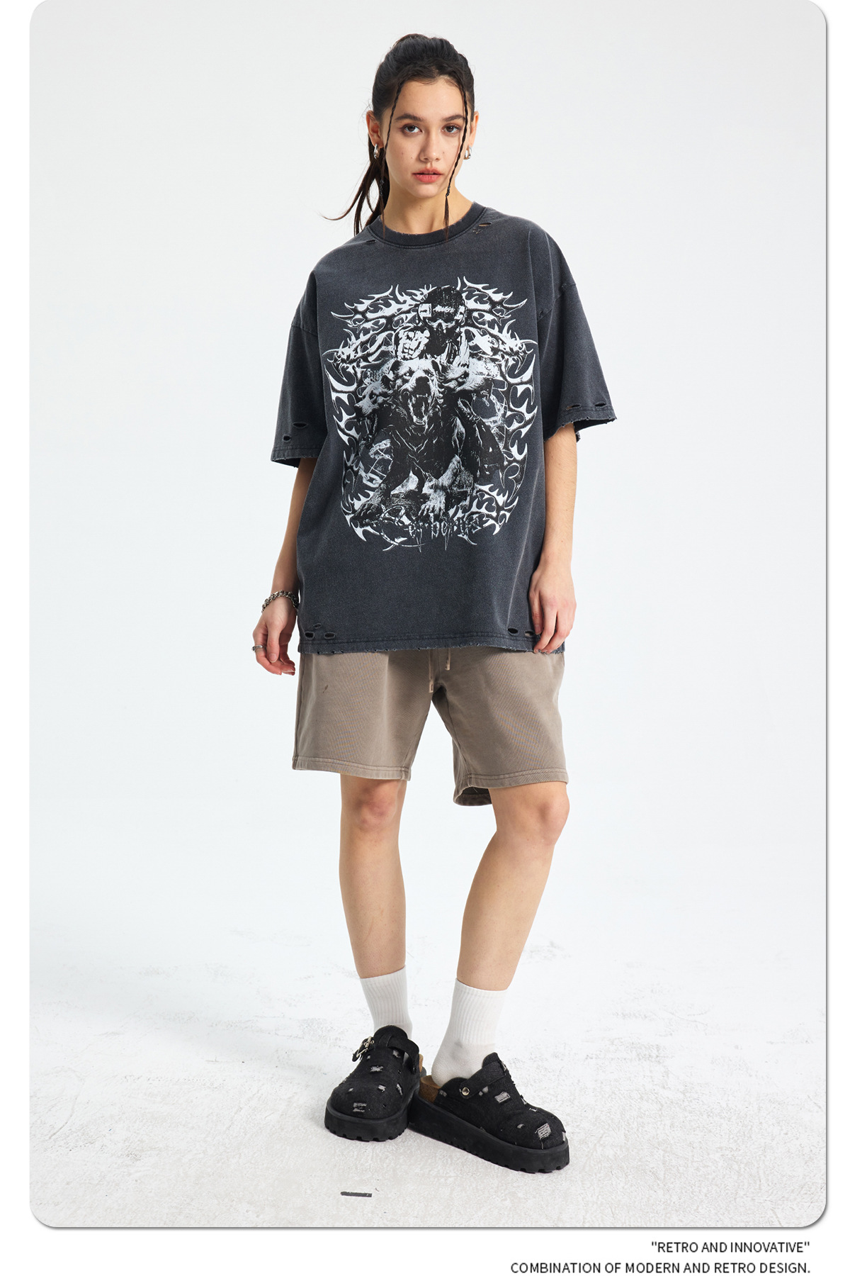 Damage Washed Snake Print Oversize Short Sleeve T-Shirt WN16278