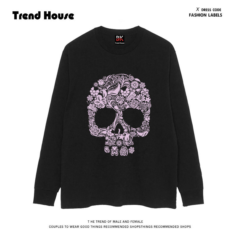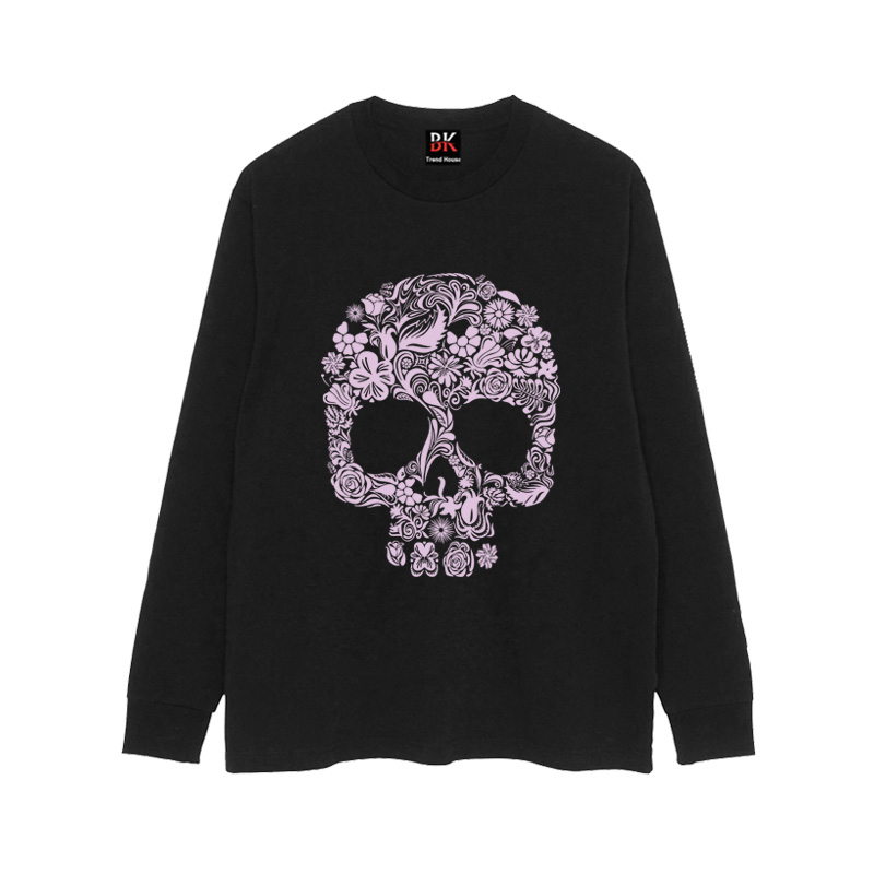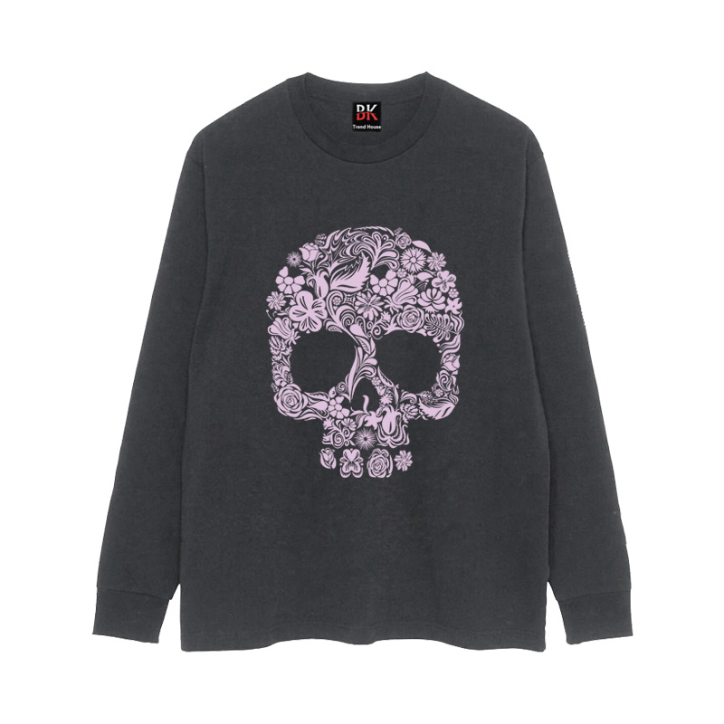 Oversize Flower & Skull Print Long Sleeve T-Shirt WN16624