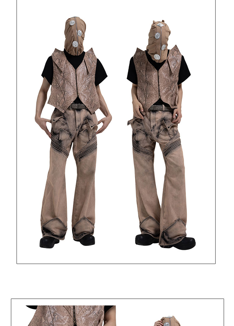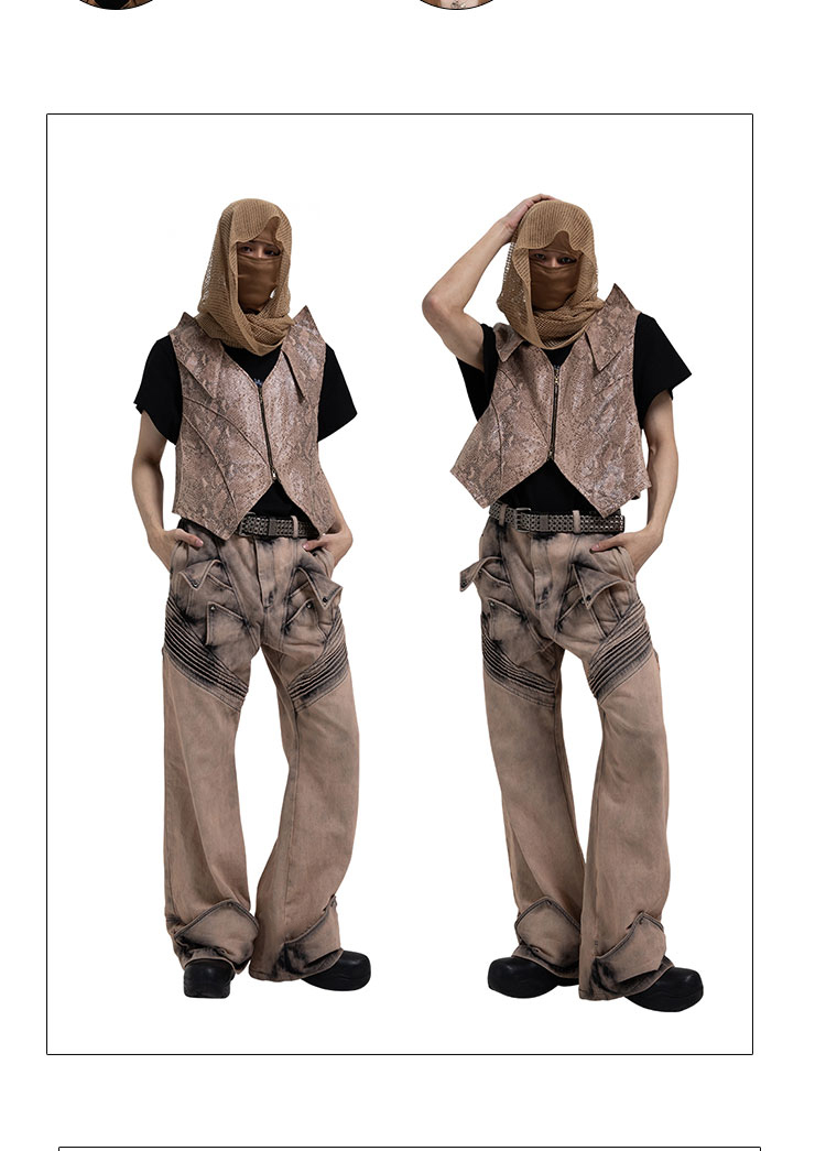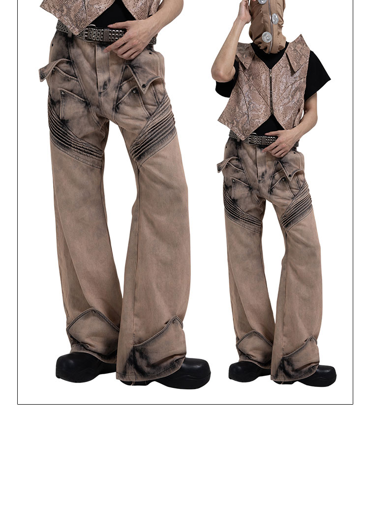 Washed Deconstructed Wide-Leg Straight Denim Jeans WN17051