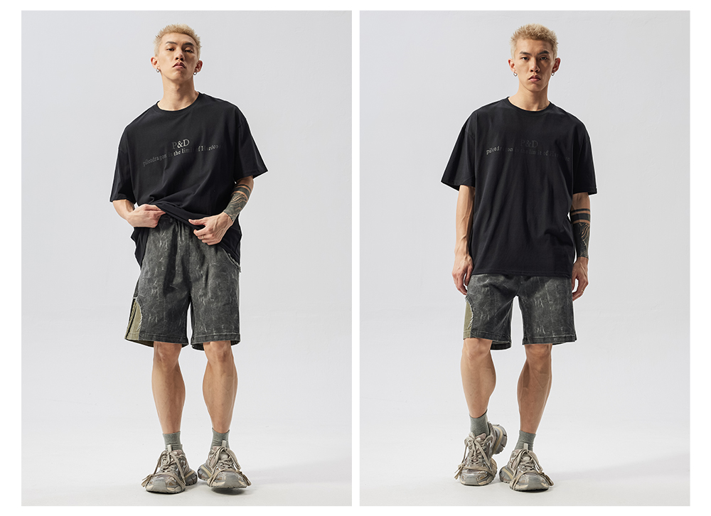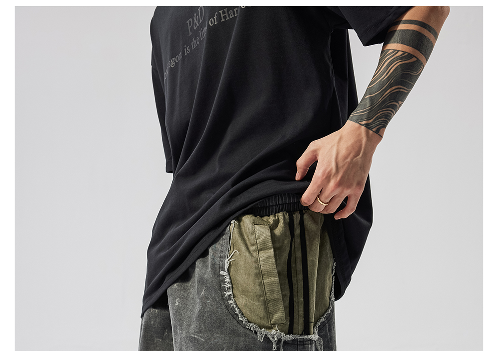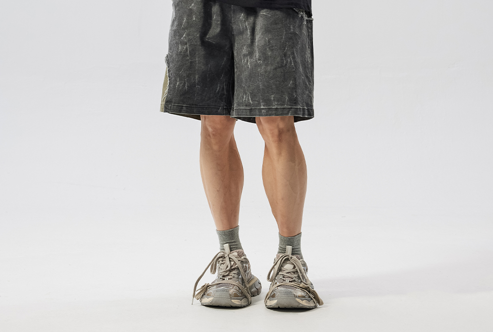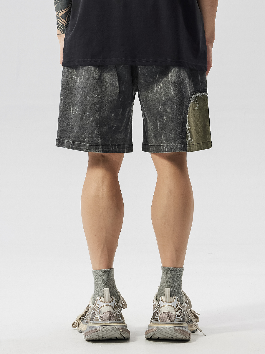 Washed Patchwork Drawstring Wide Leg Half Pants WN17605