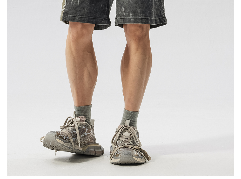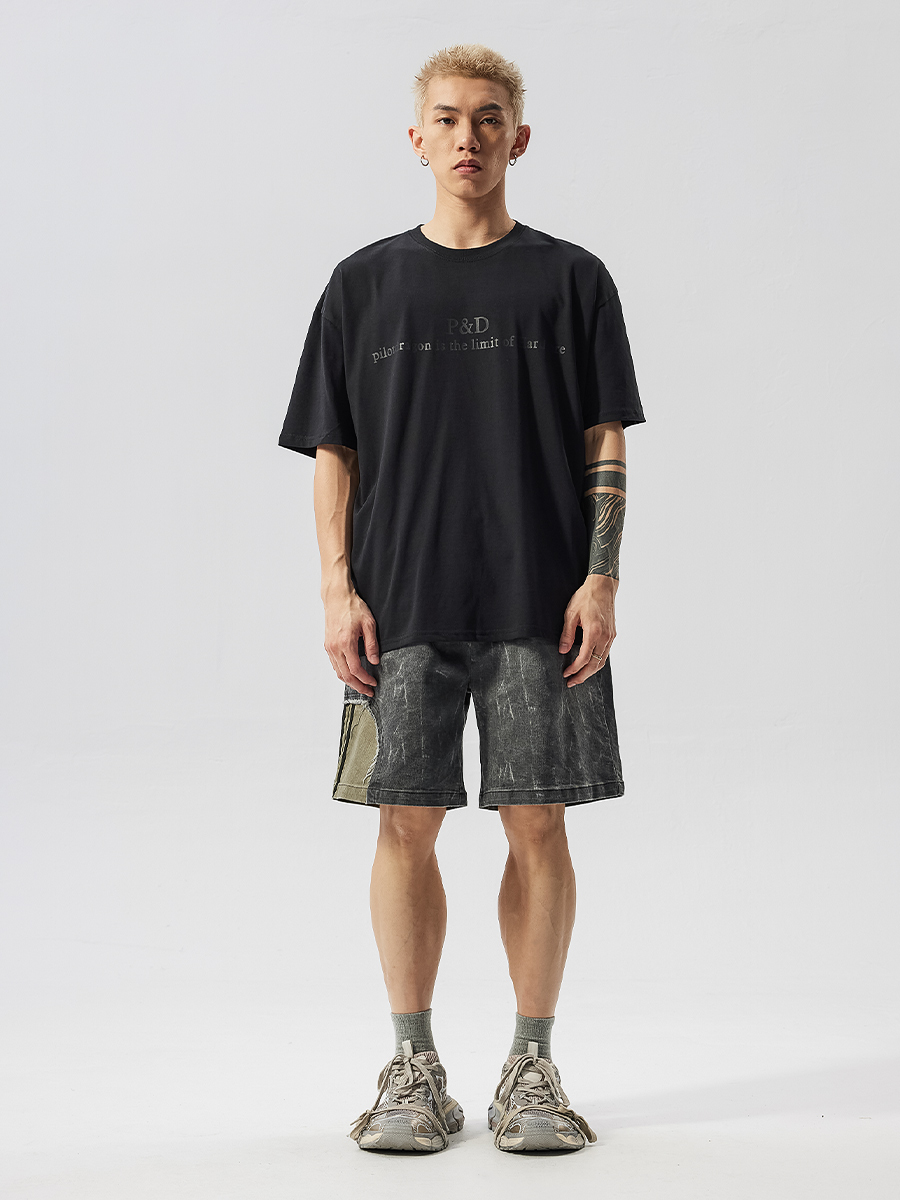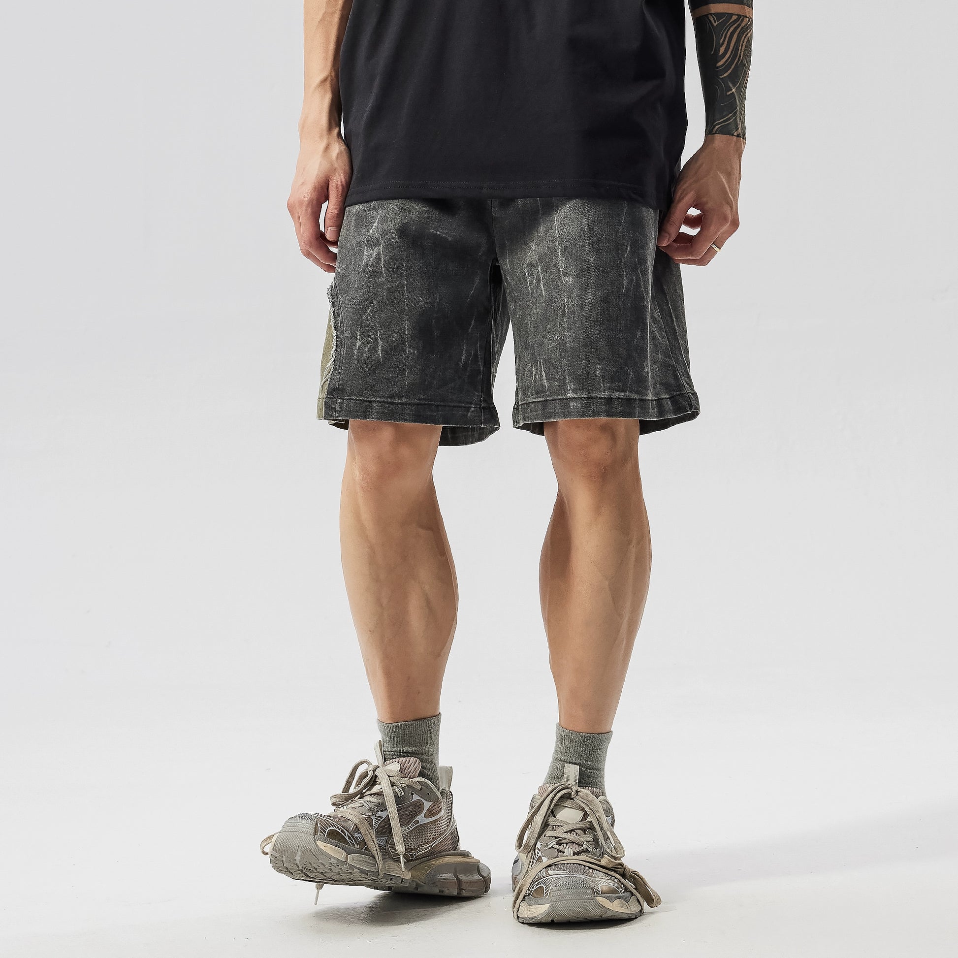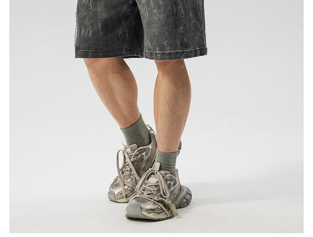 Washed Patchwork Drawstring Wide Leg Half Pants WN17605