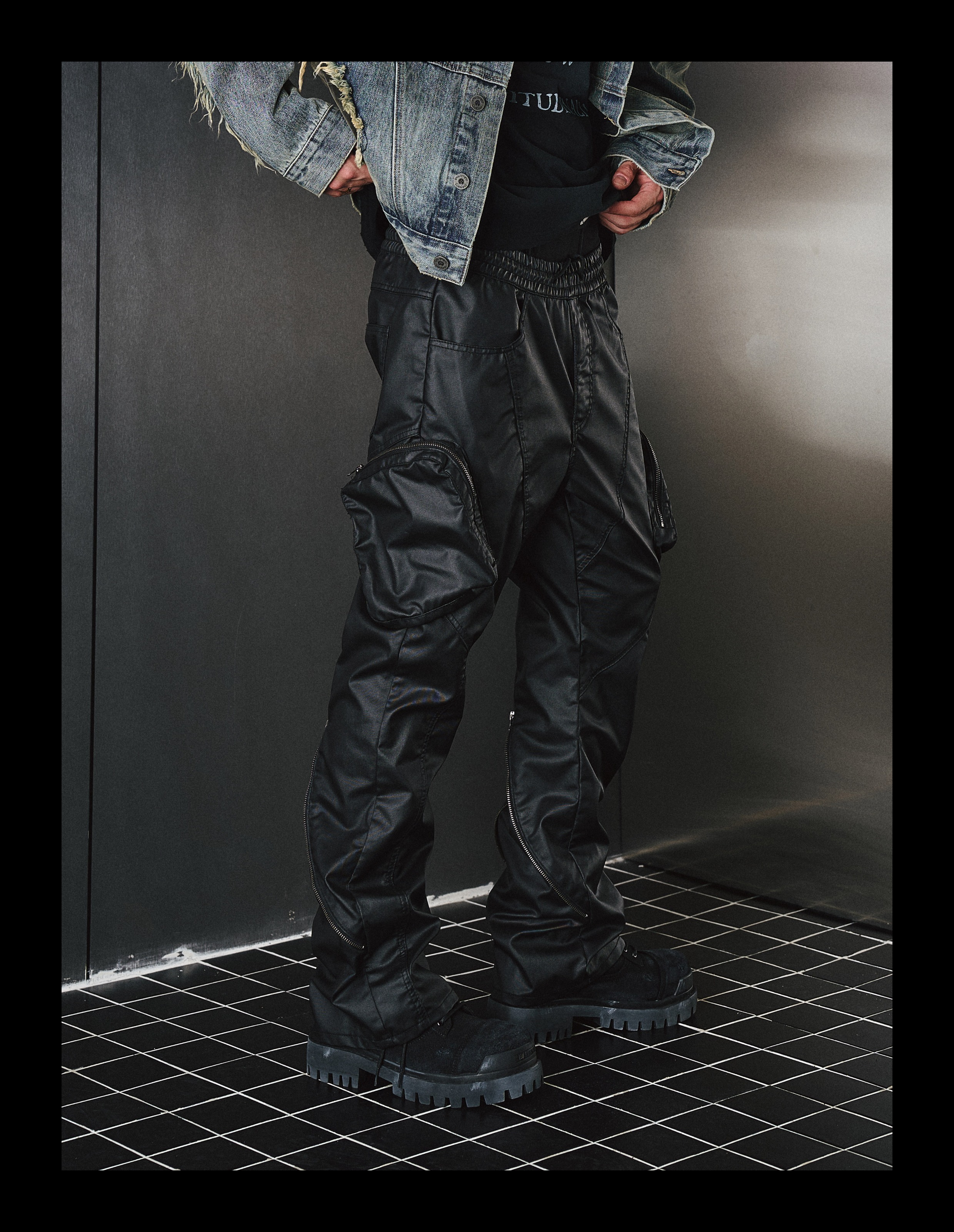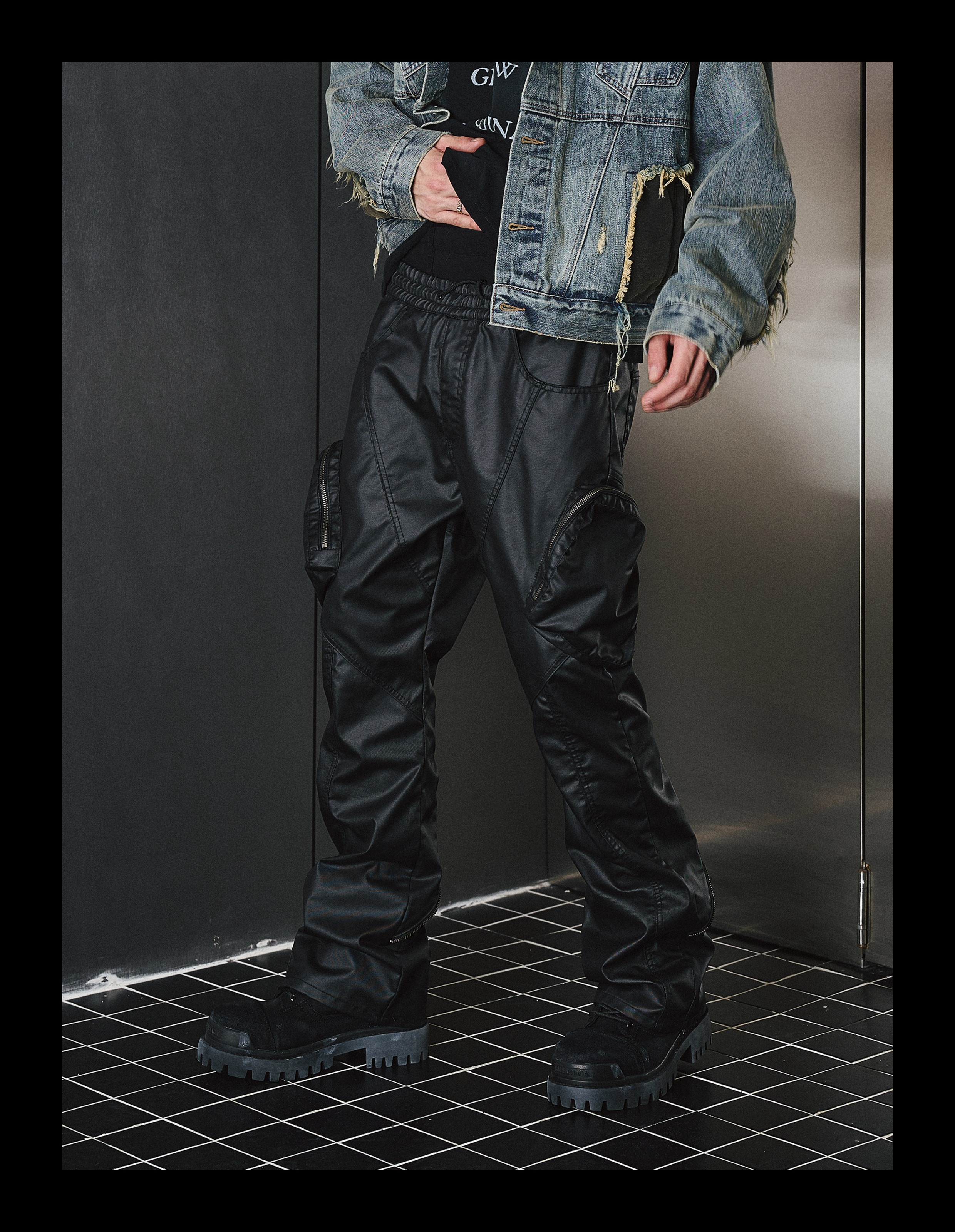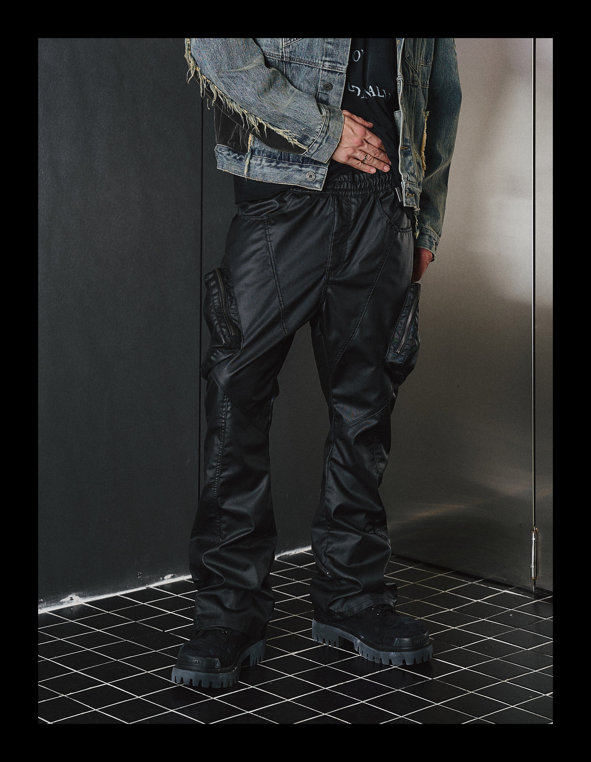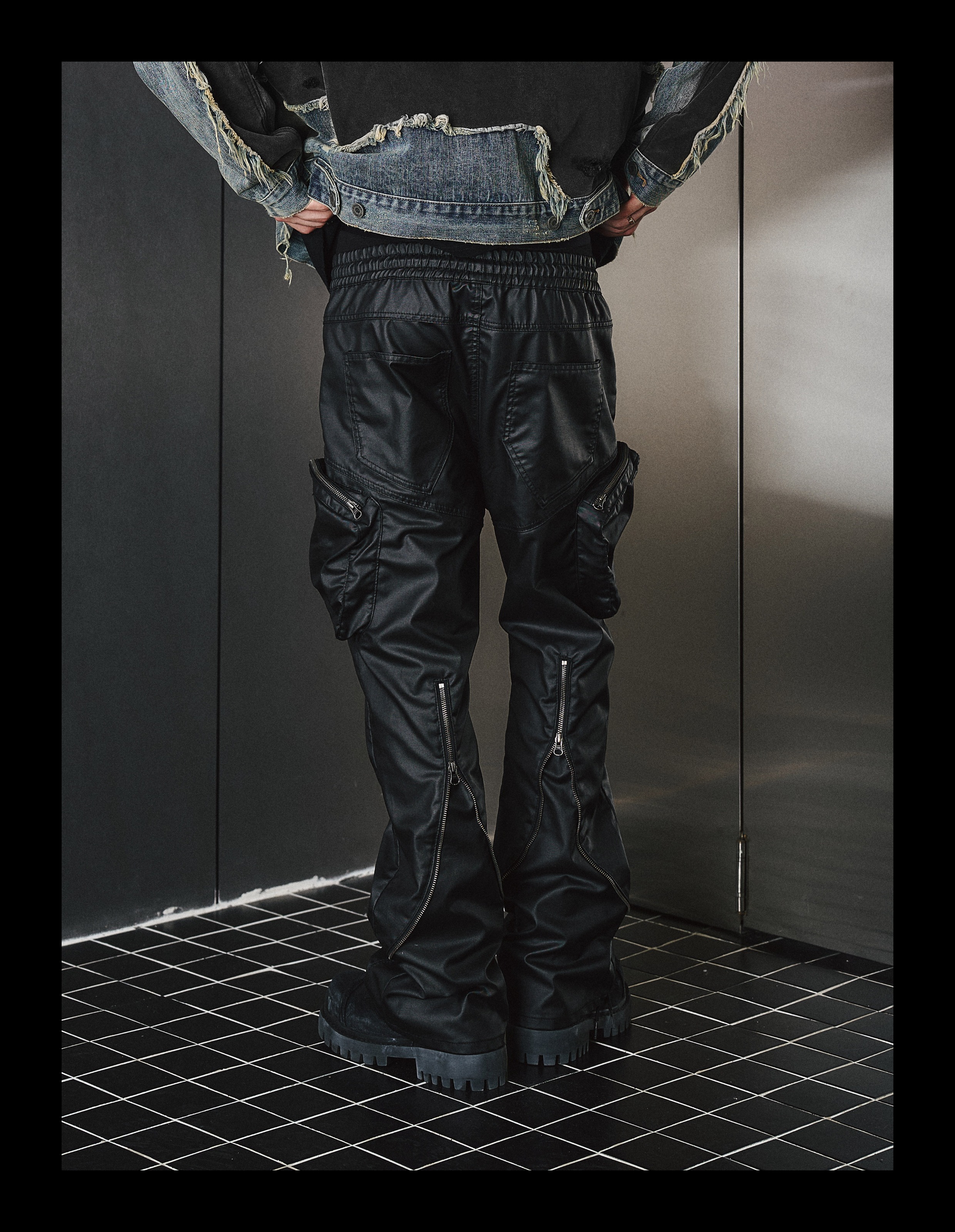Bullet Pocket Zipper Coated Wide Leg Straight Denim Jeans WN17691