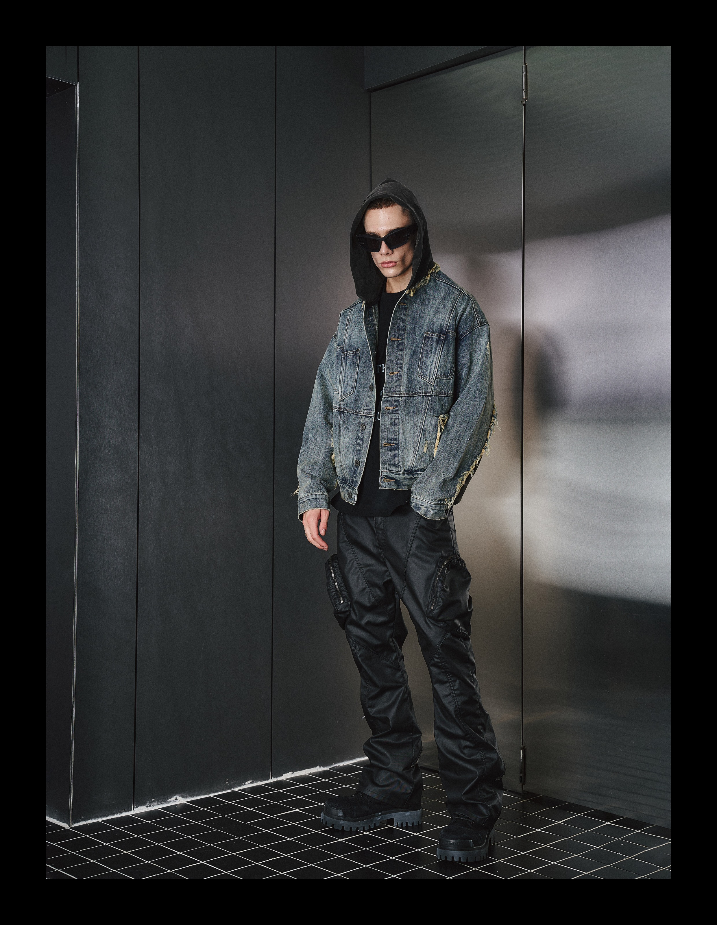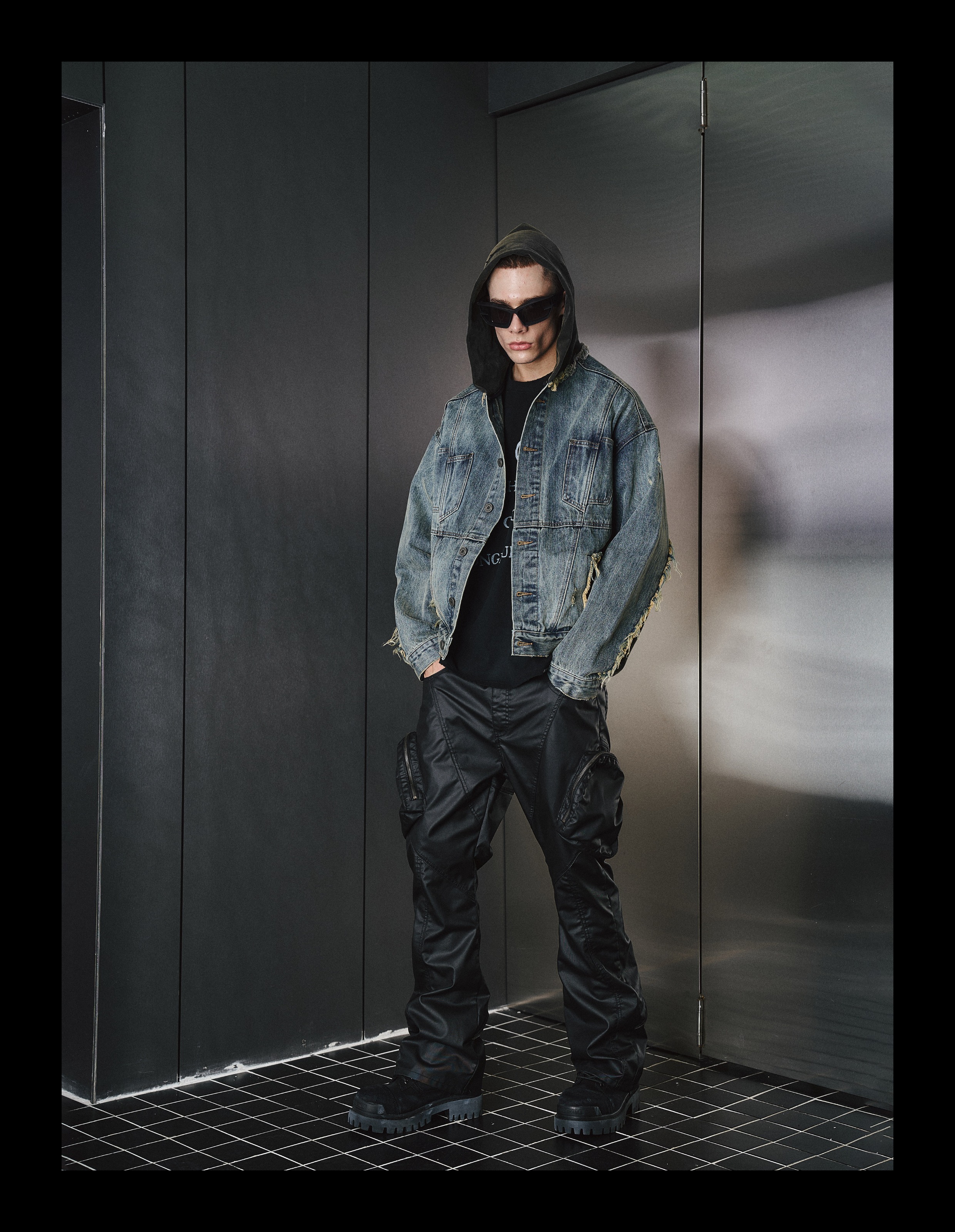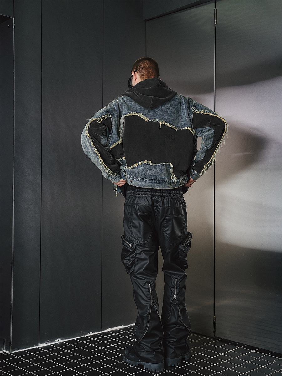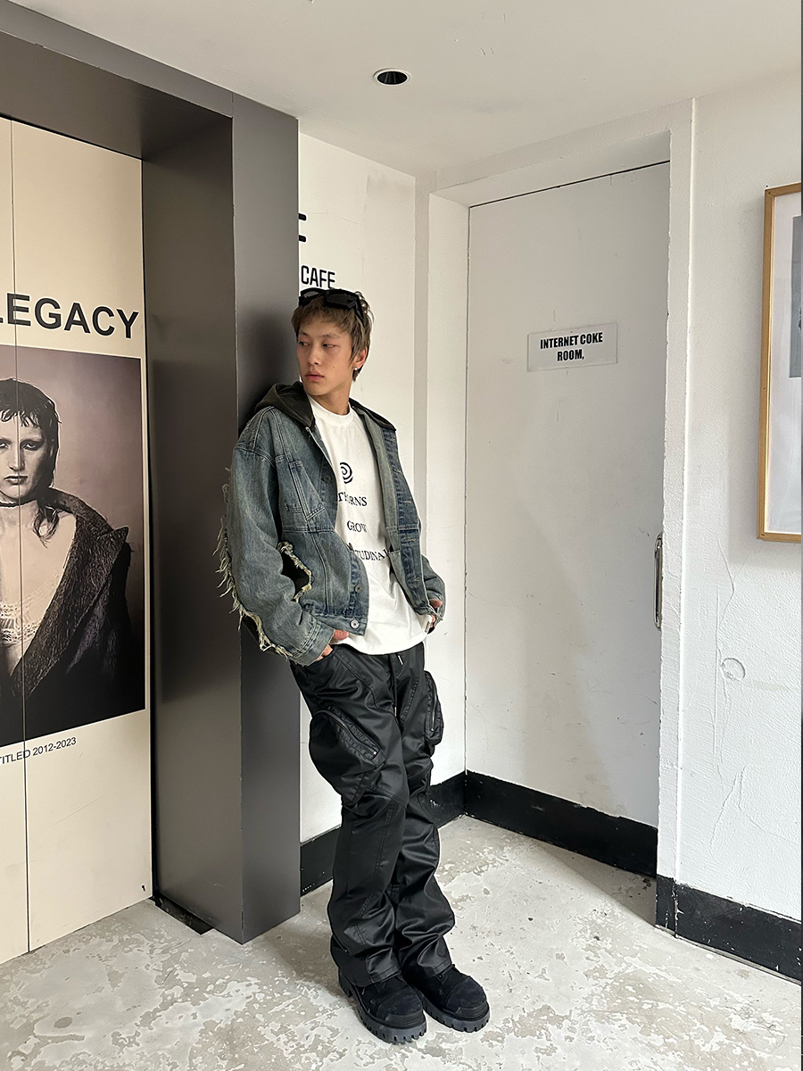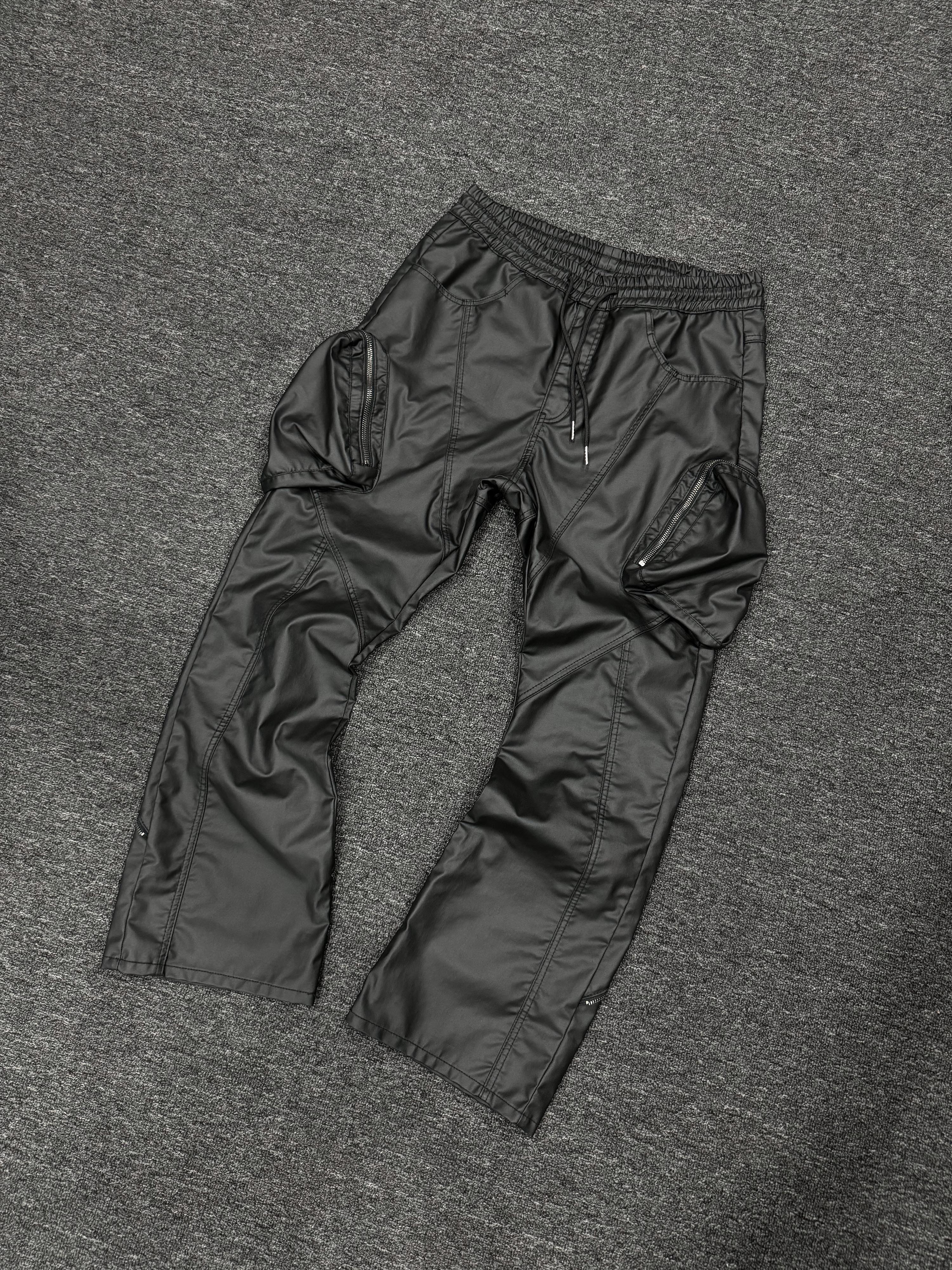 Bullet Pocket Zipper Coated Wide Leg Straight Denim Jeans WN17691