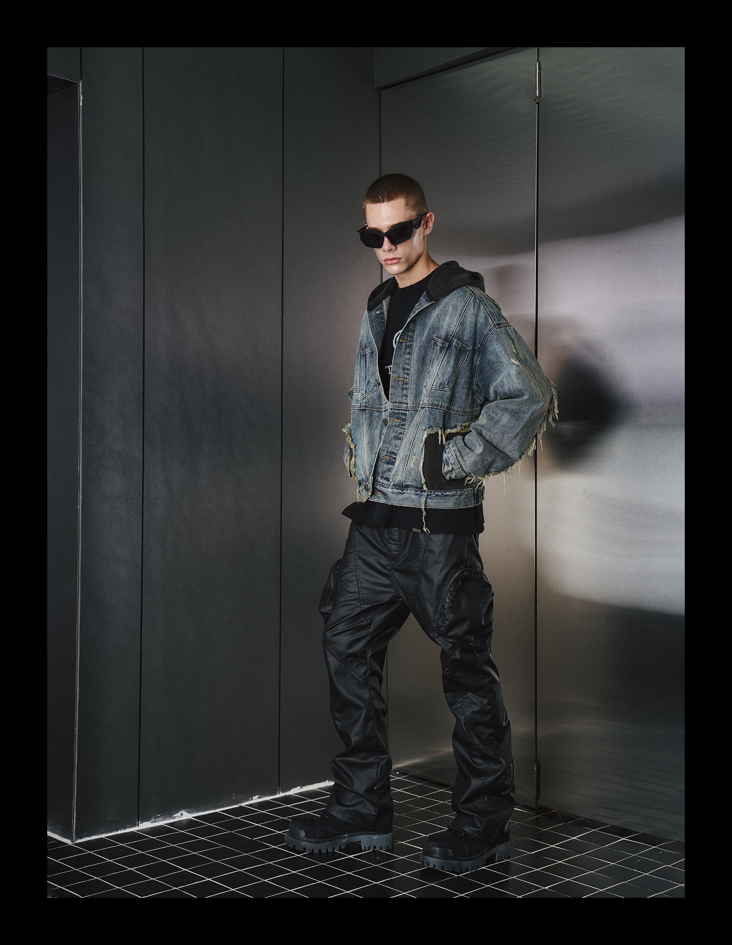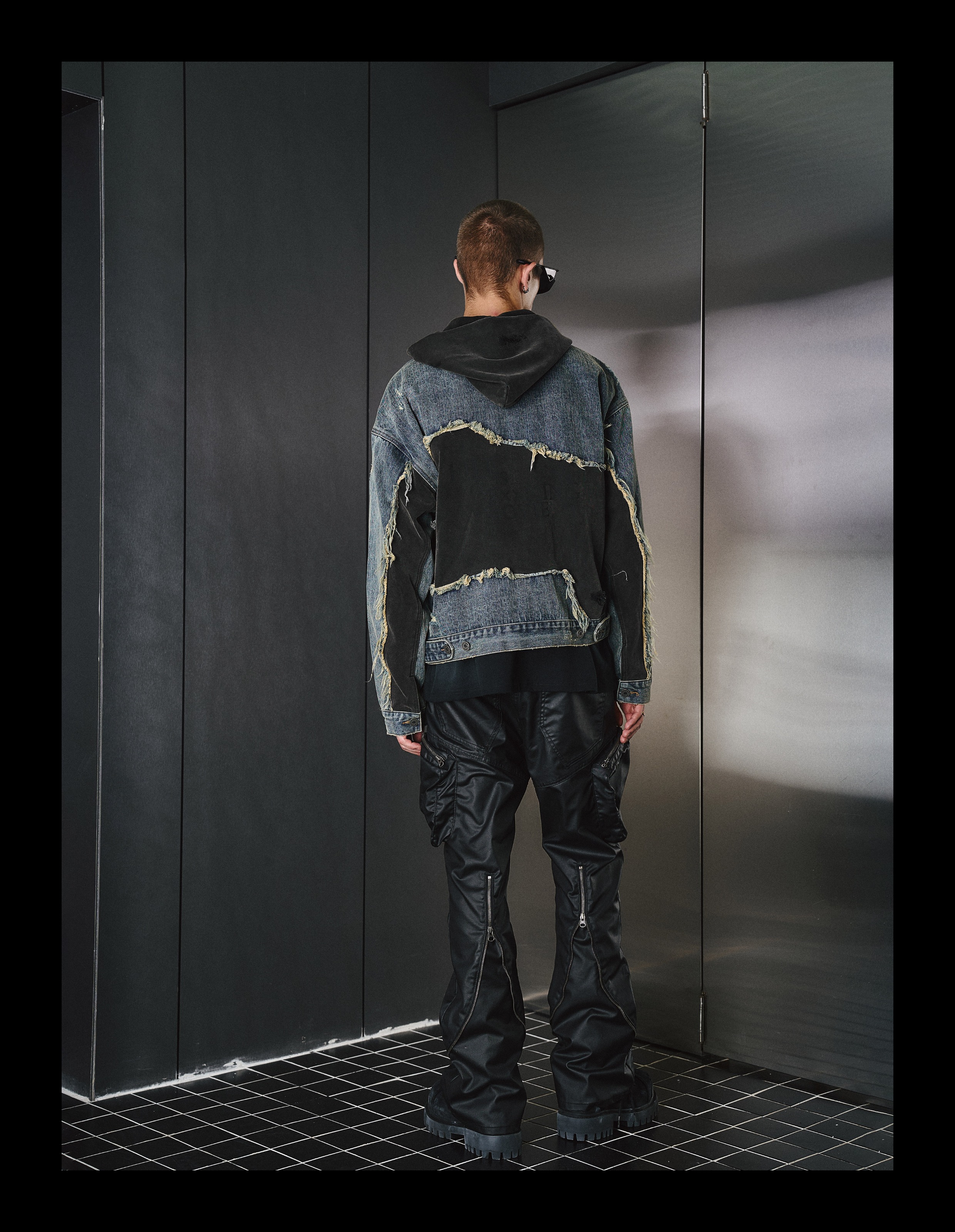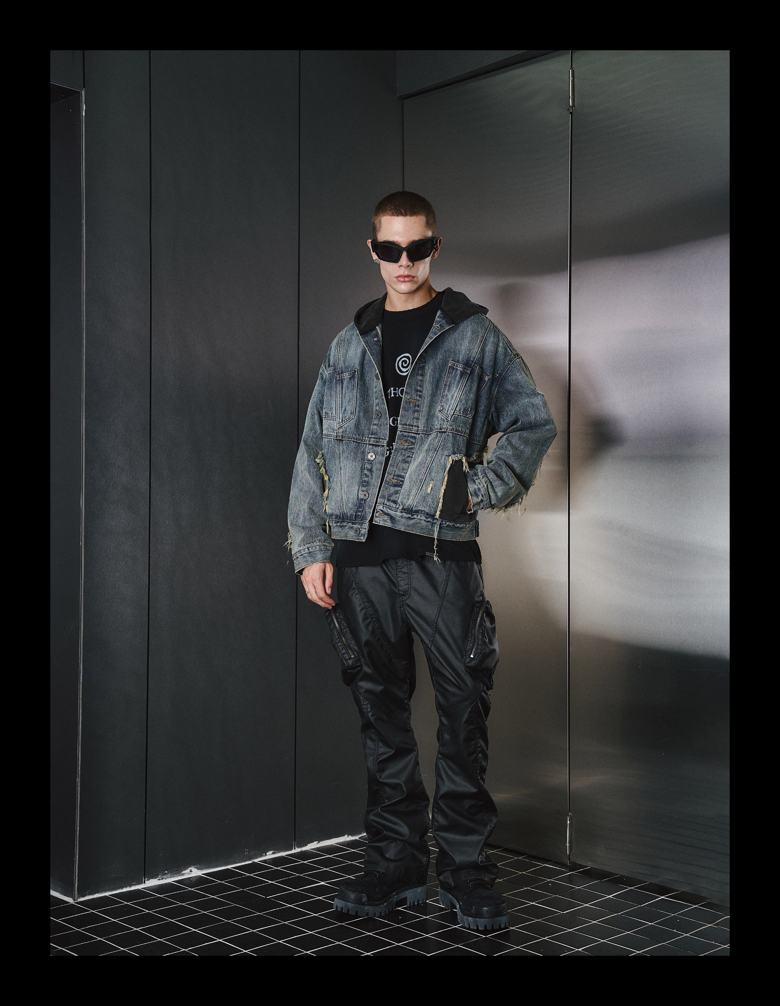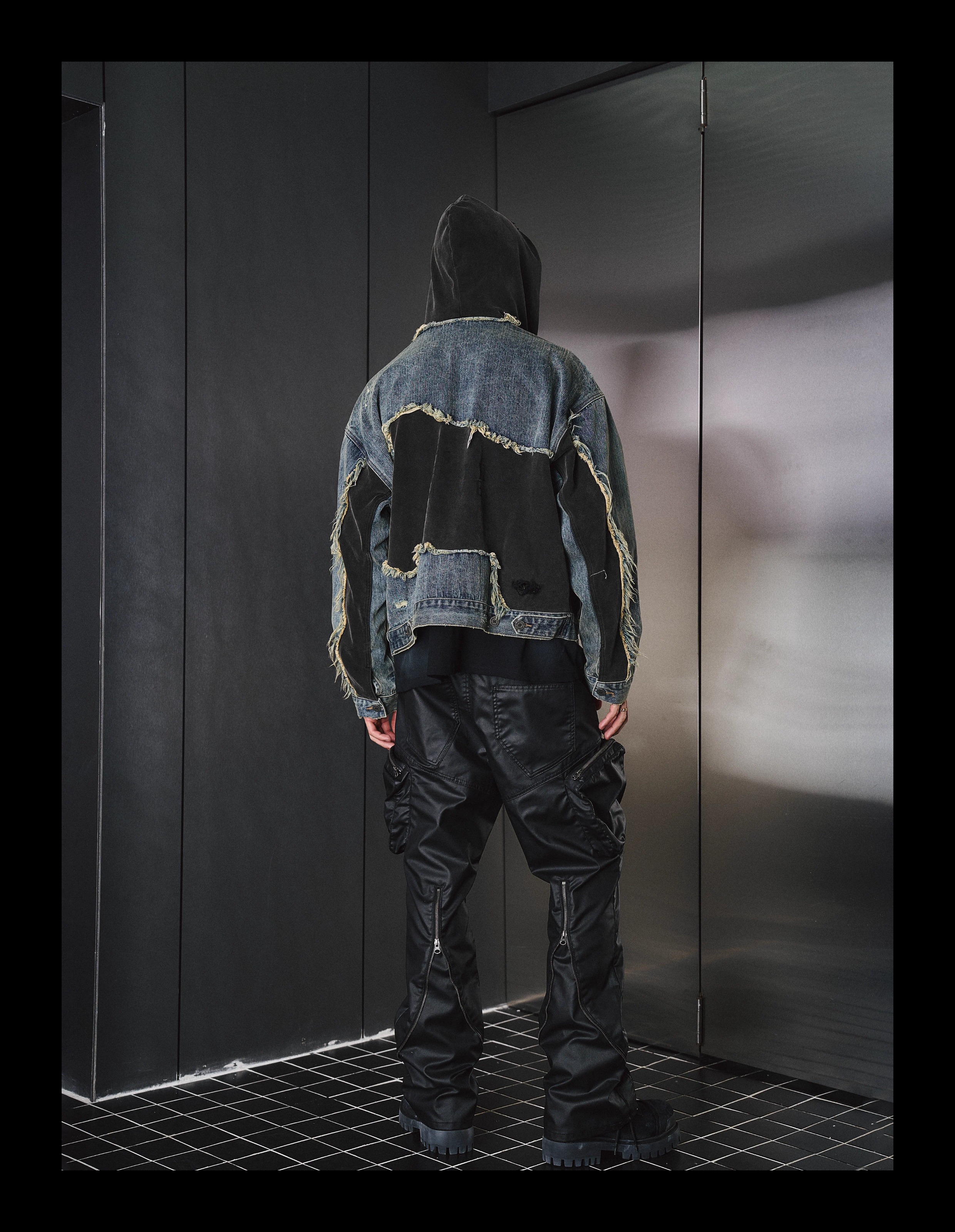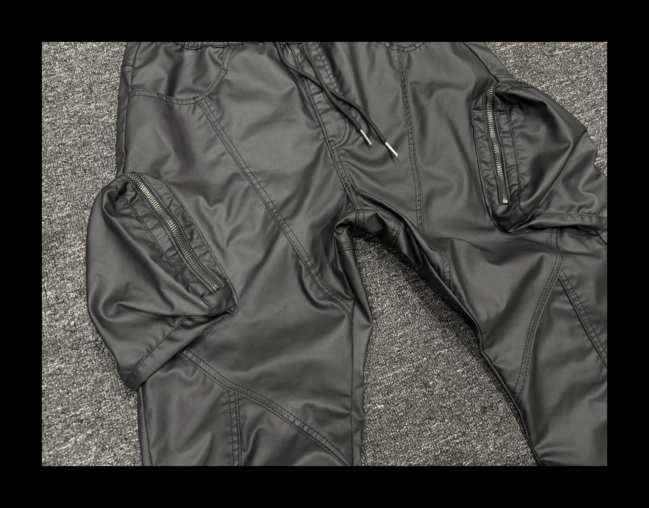 Bullet Pocket Zipper Coated Wide Leg Straight Denim Jeans WN17691
