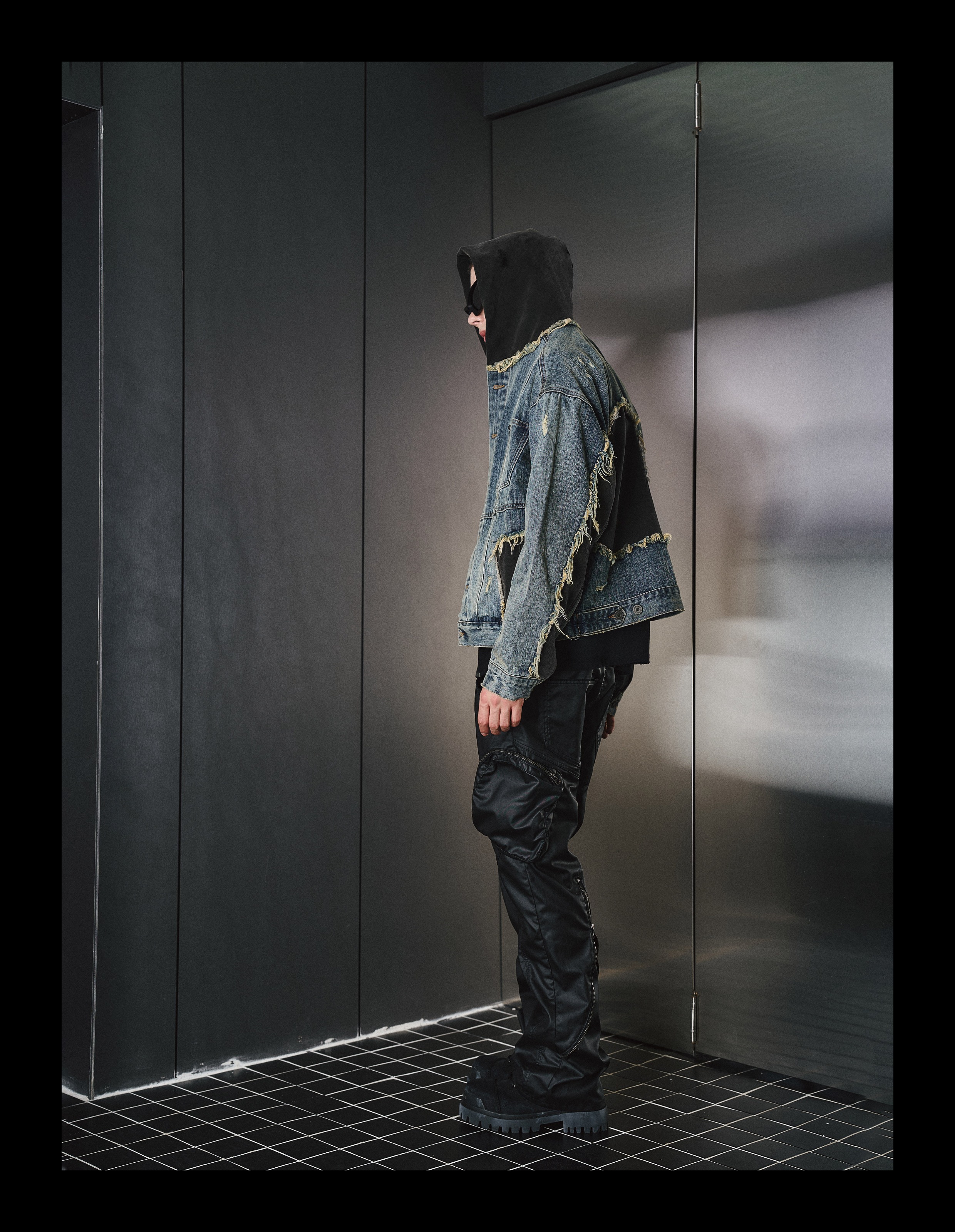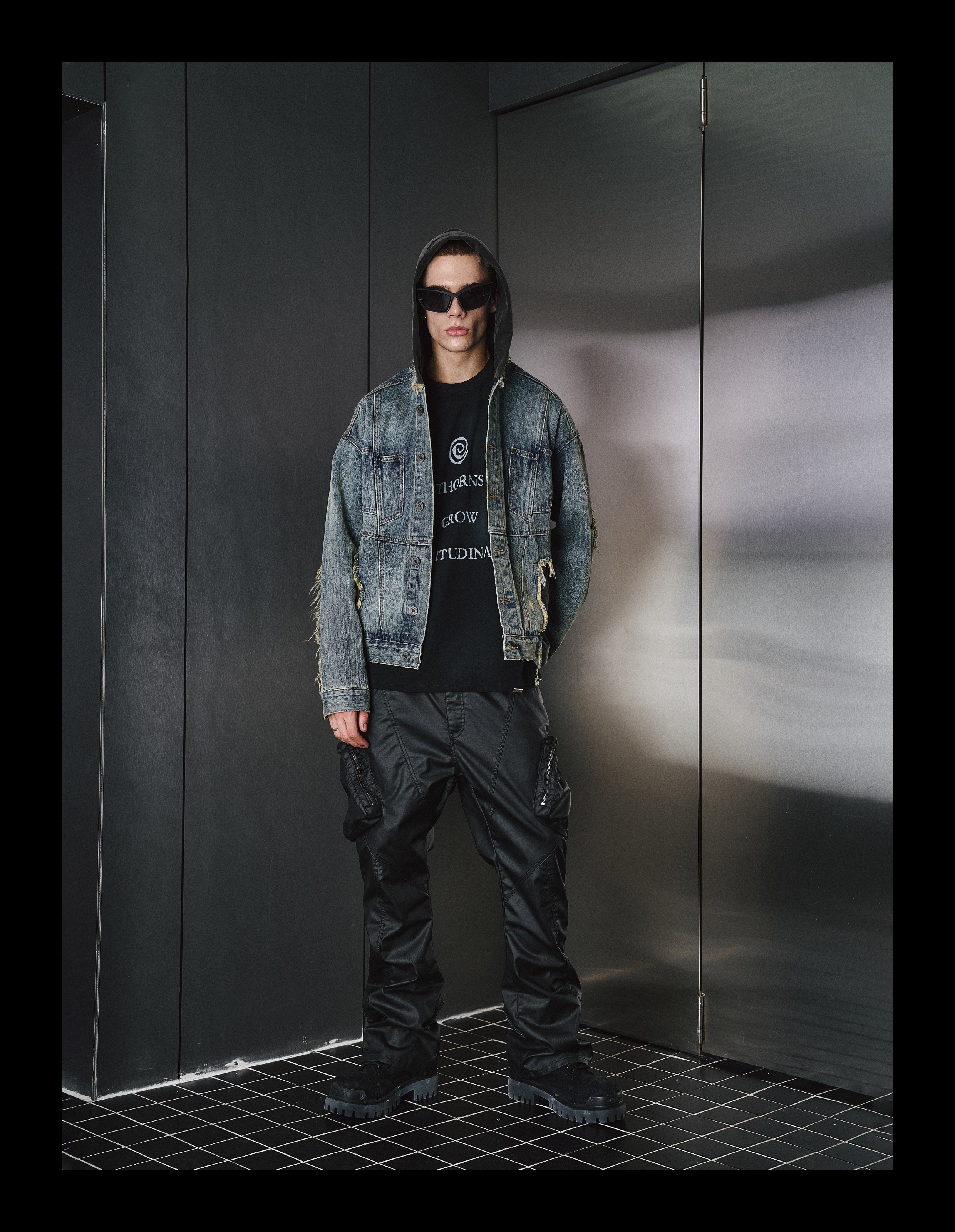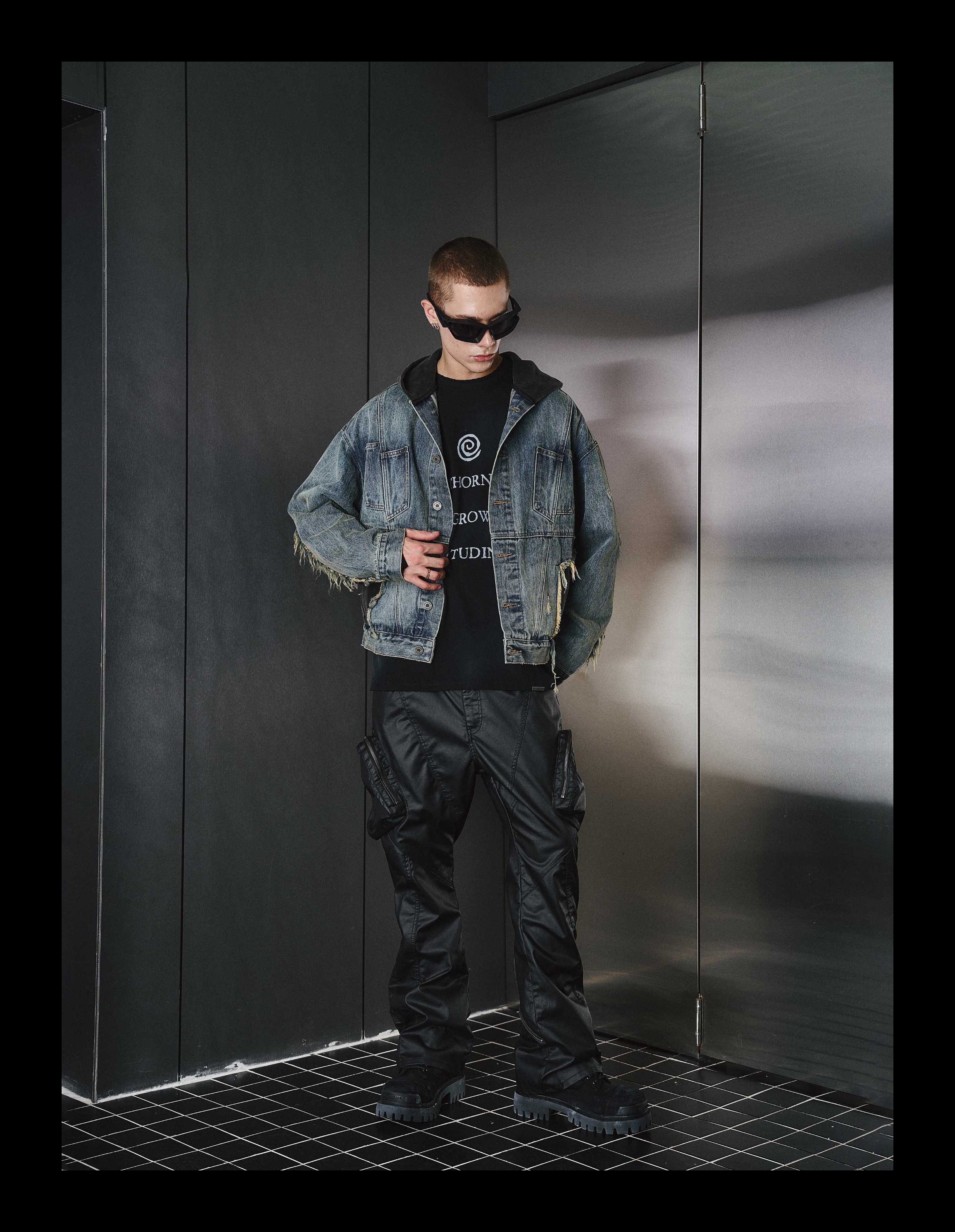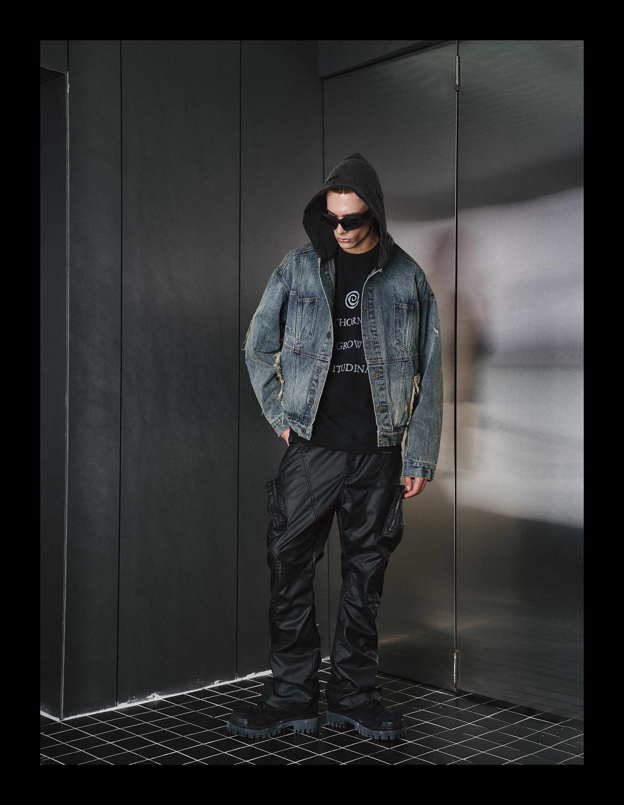 Bullet Pocket Zipper Coated Wide Leg Straight Denim Jeans WN17691