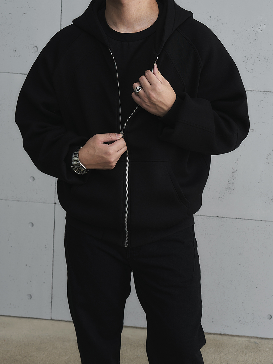 Wrinkle-Resistant Air Layer Ribbed Zipper Hoodie WN17692