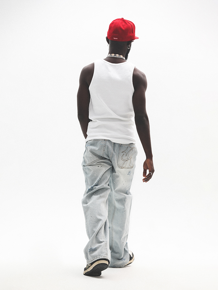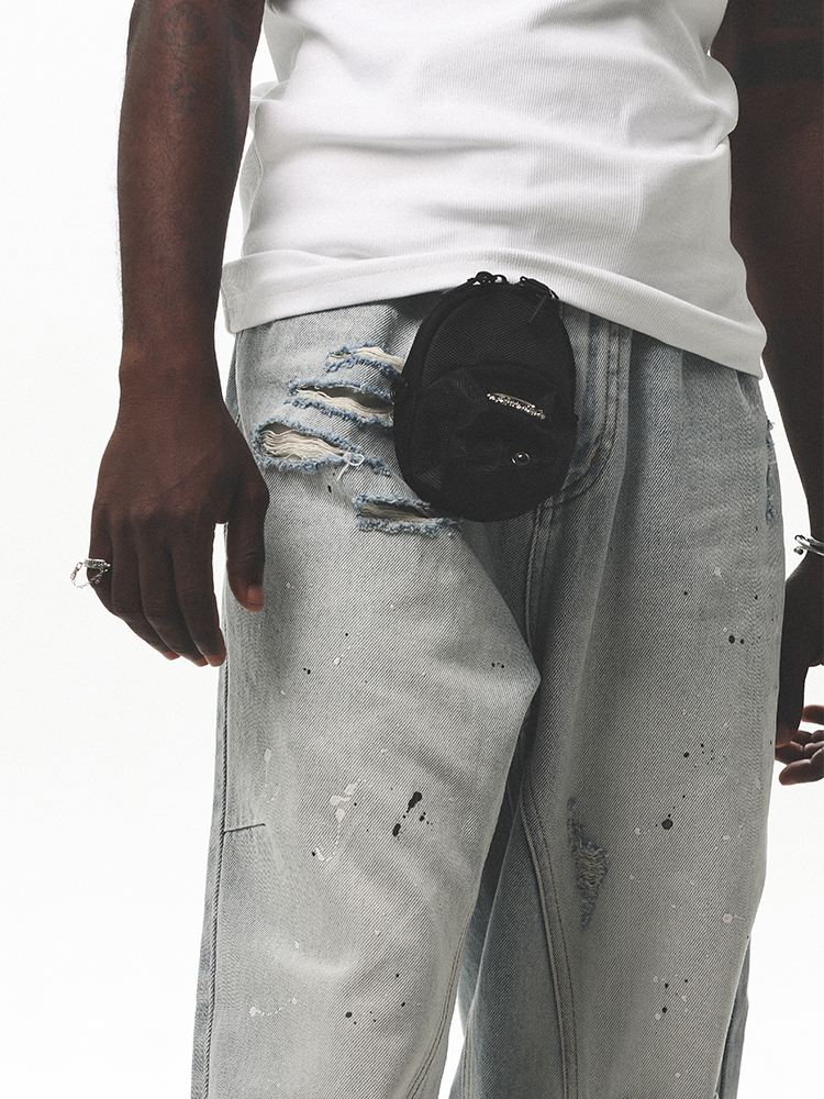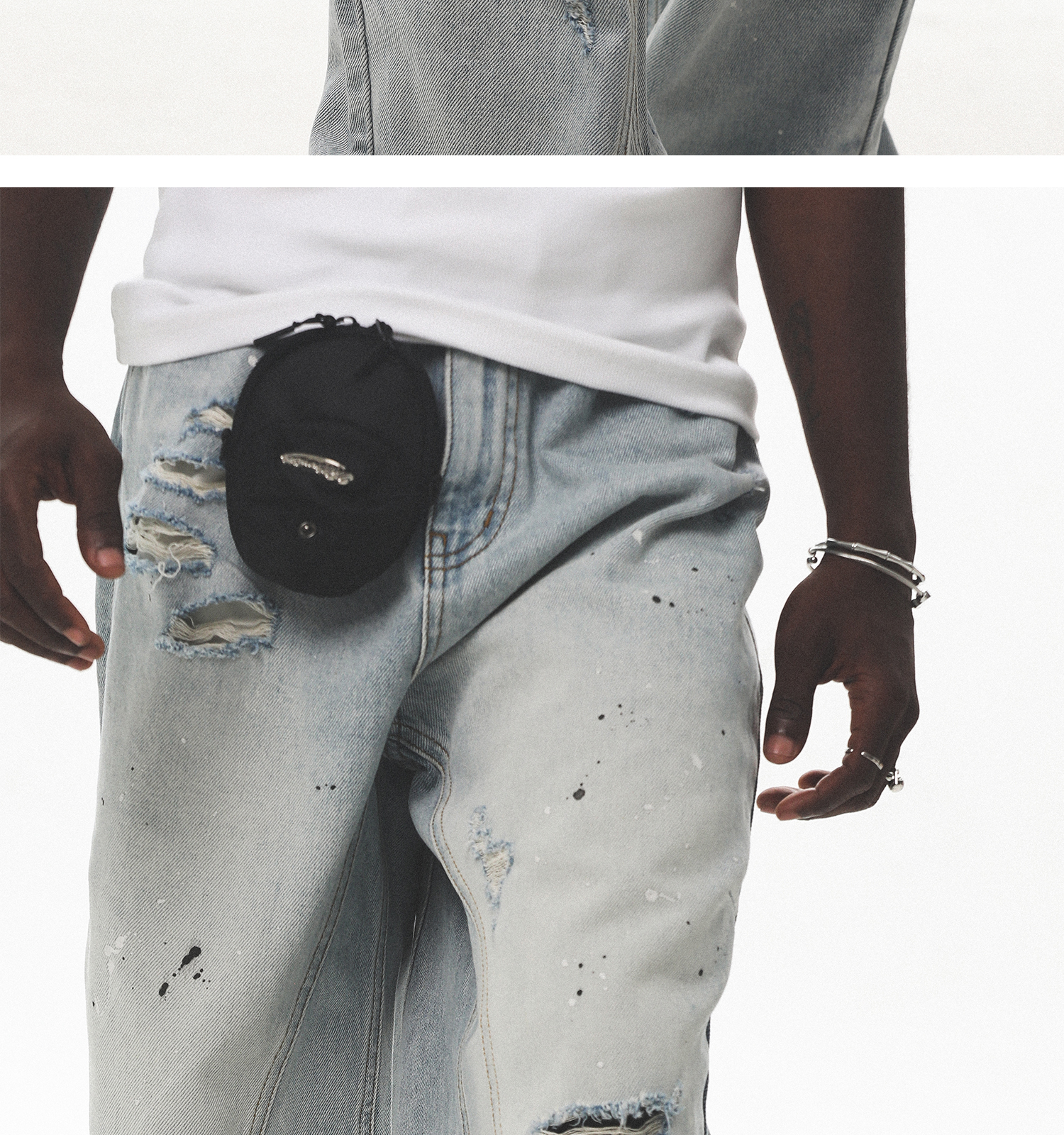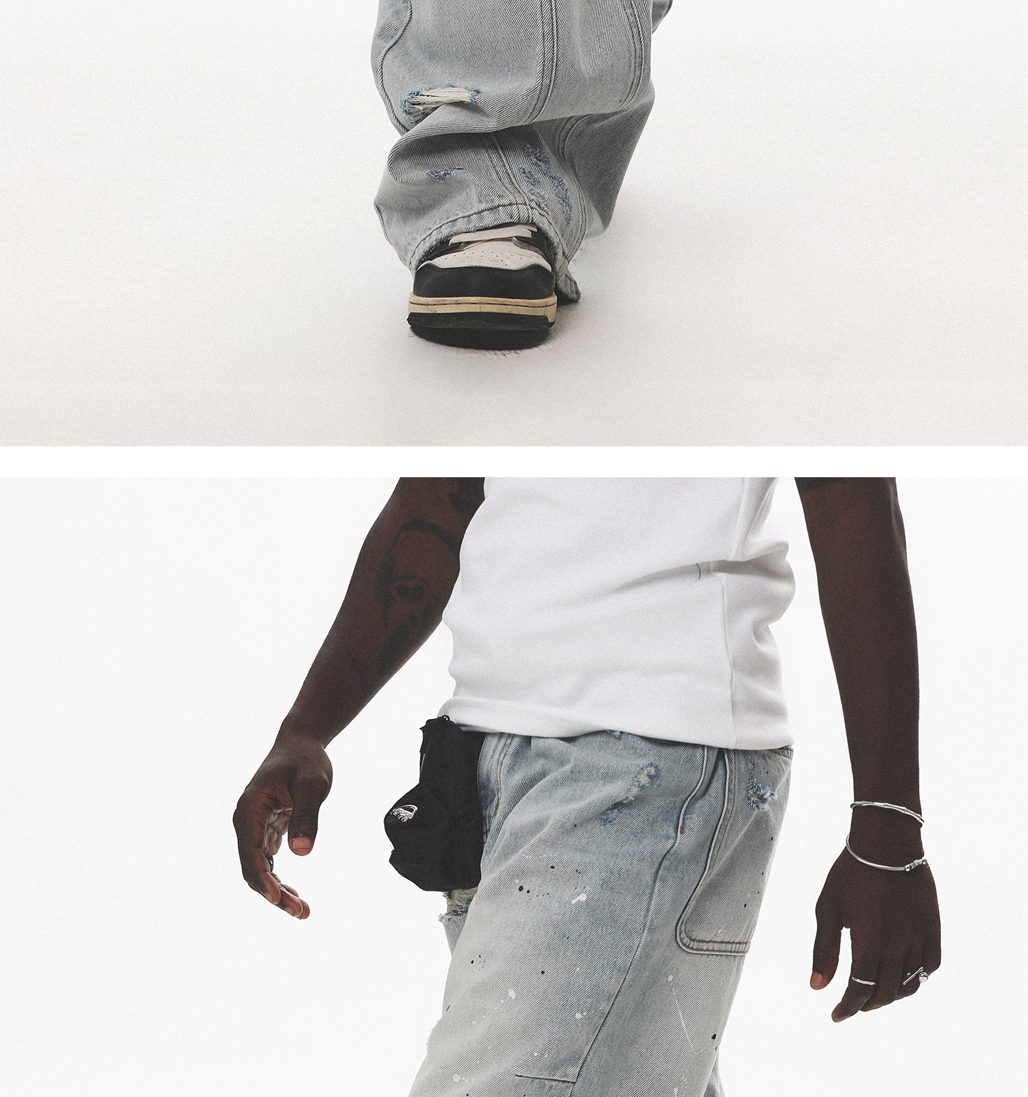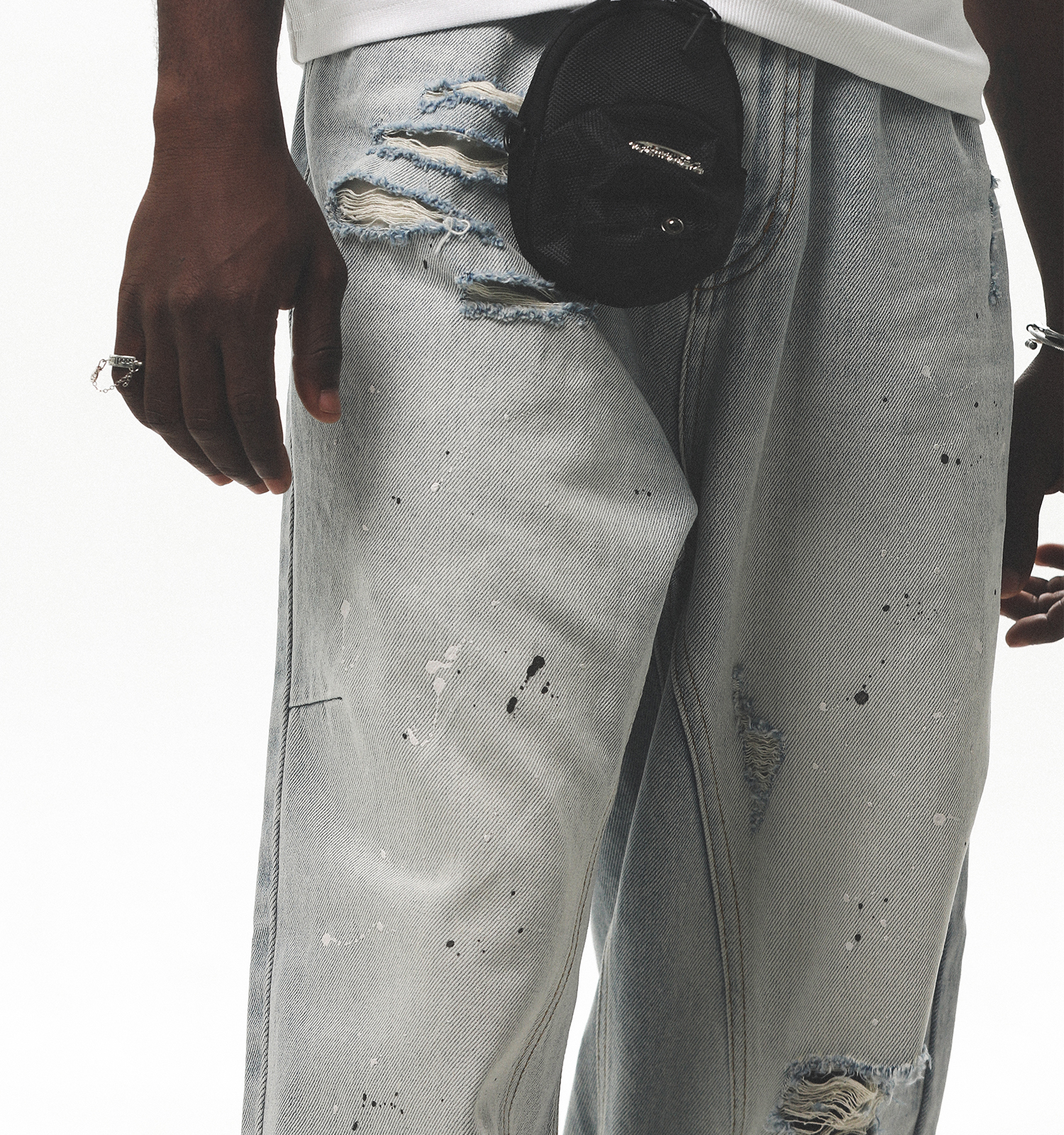 Damage Center Seam Washed Wide Leg Denim Jeans WN17791