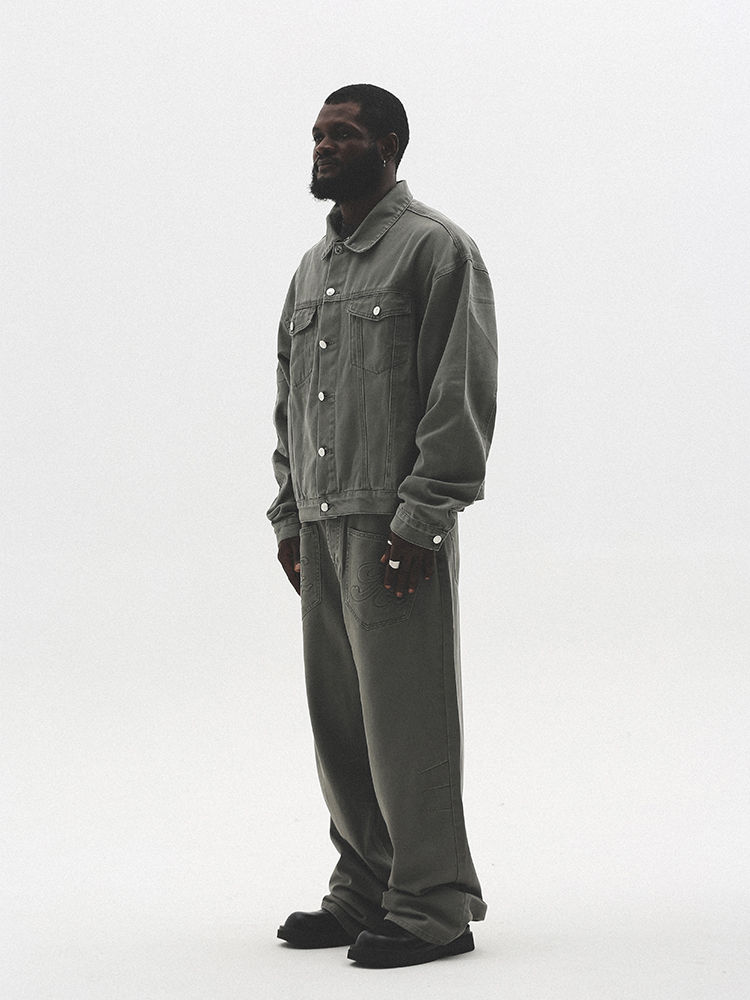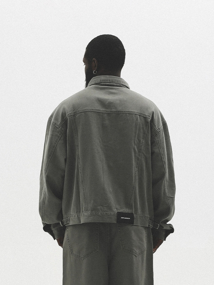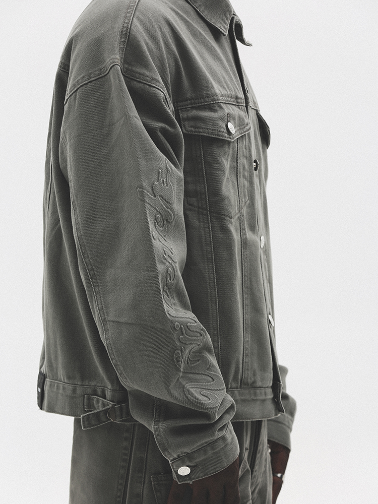 Embossed Washed Oversize Short Denim Jacket WN17793