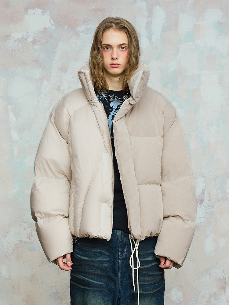 Color Block Patchwork Standing Collar White Duck Down Jacket WN17869