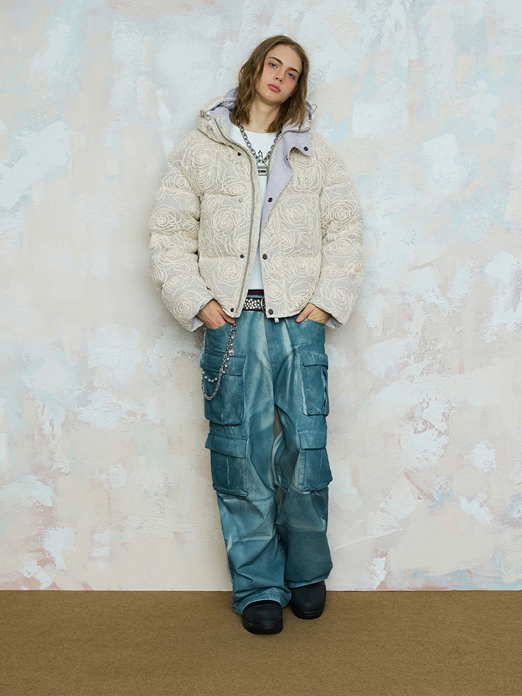 3D Texture Design Hooded Windproof White Duck Down Jacket WN17962