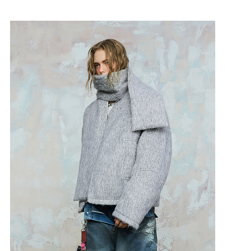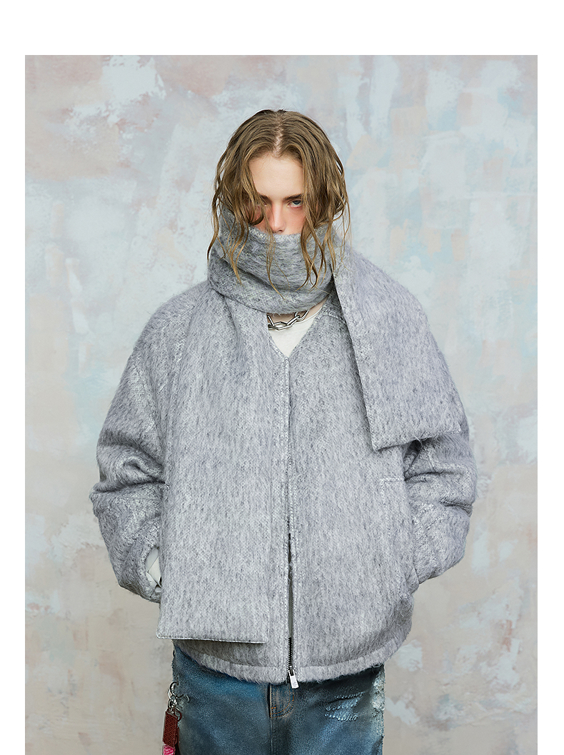 Patchwork Quilted Scarf Design Windproof White Duck Down Jacket WN18012