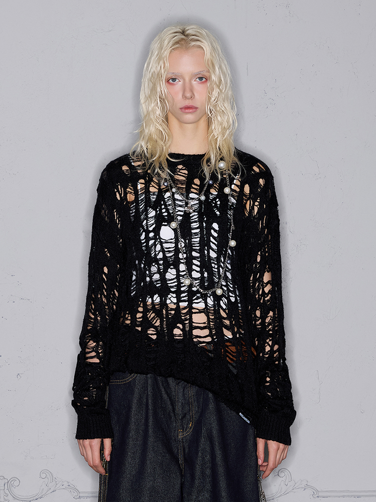 Lightweight Spider Web Hollow Pullover Knit Sweater WN18022