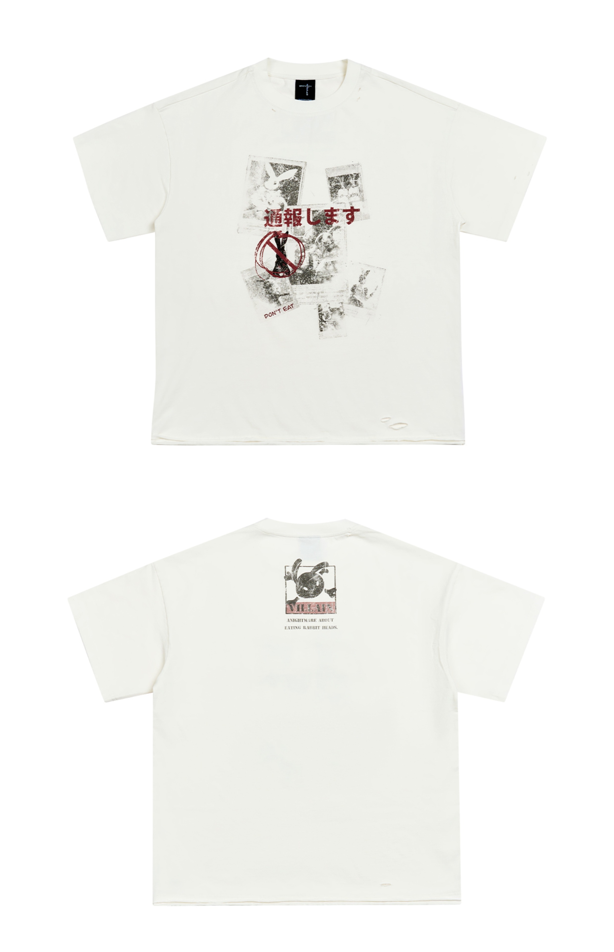 Washed Damage Design Graffiti Print Short SleeveT-Shirt WN18067