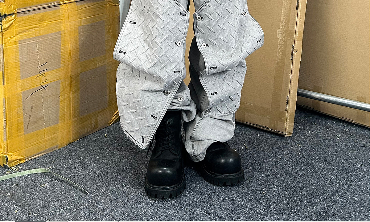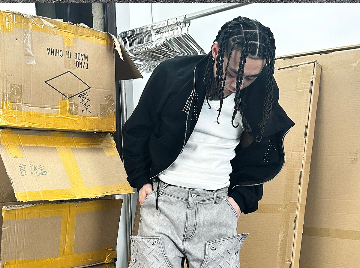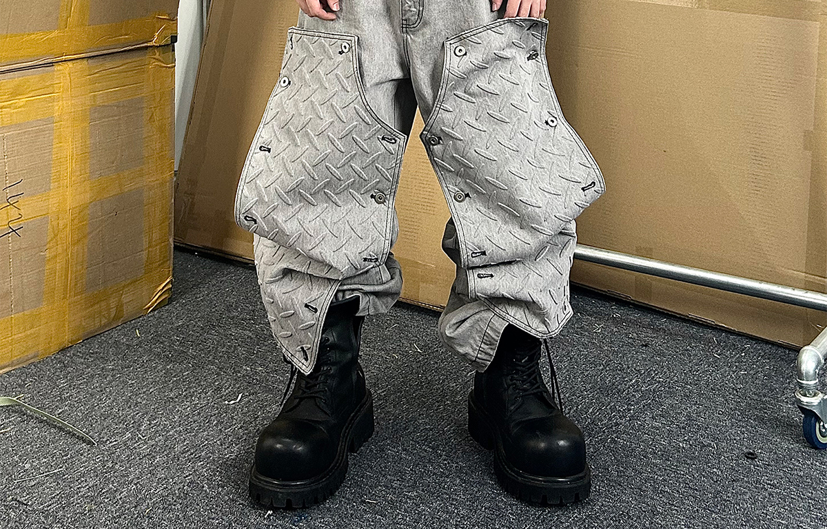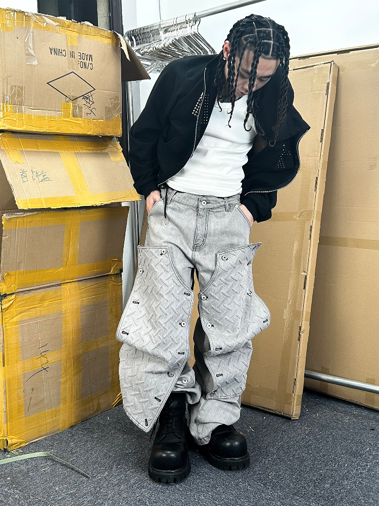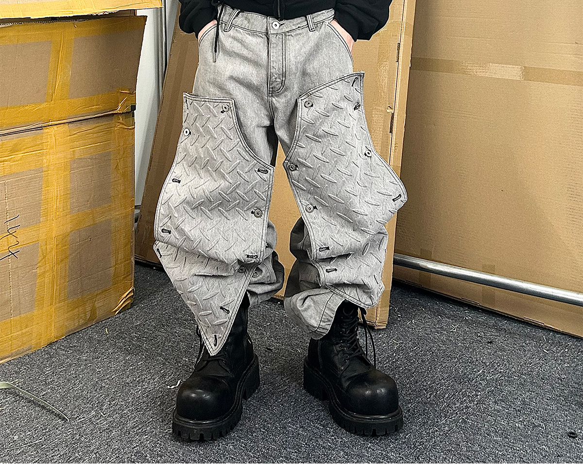 Steel Plate 3D Print Double Knee Detachable Deconstructed Denim Jeans WN18097