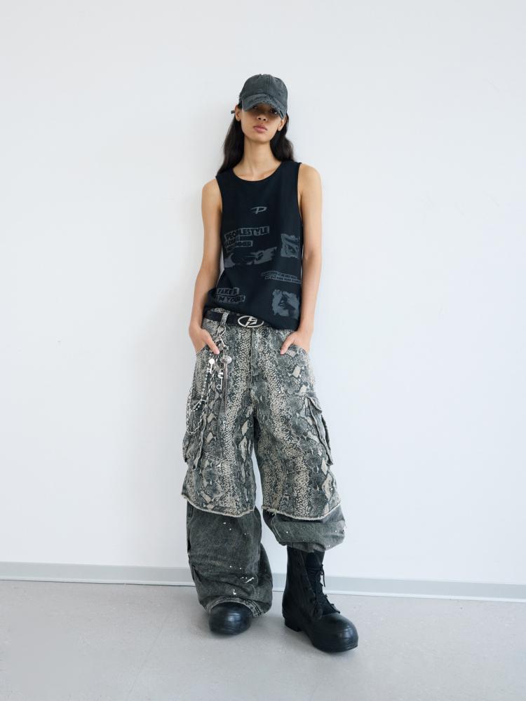 Graffiti Print Ribbed Texture Tank Top WN18248