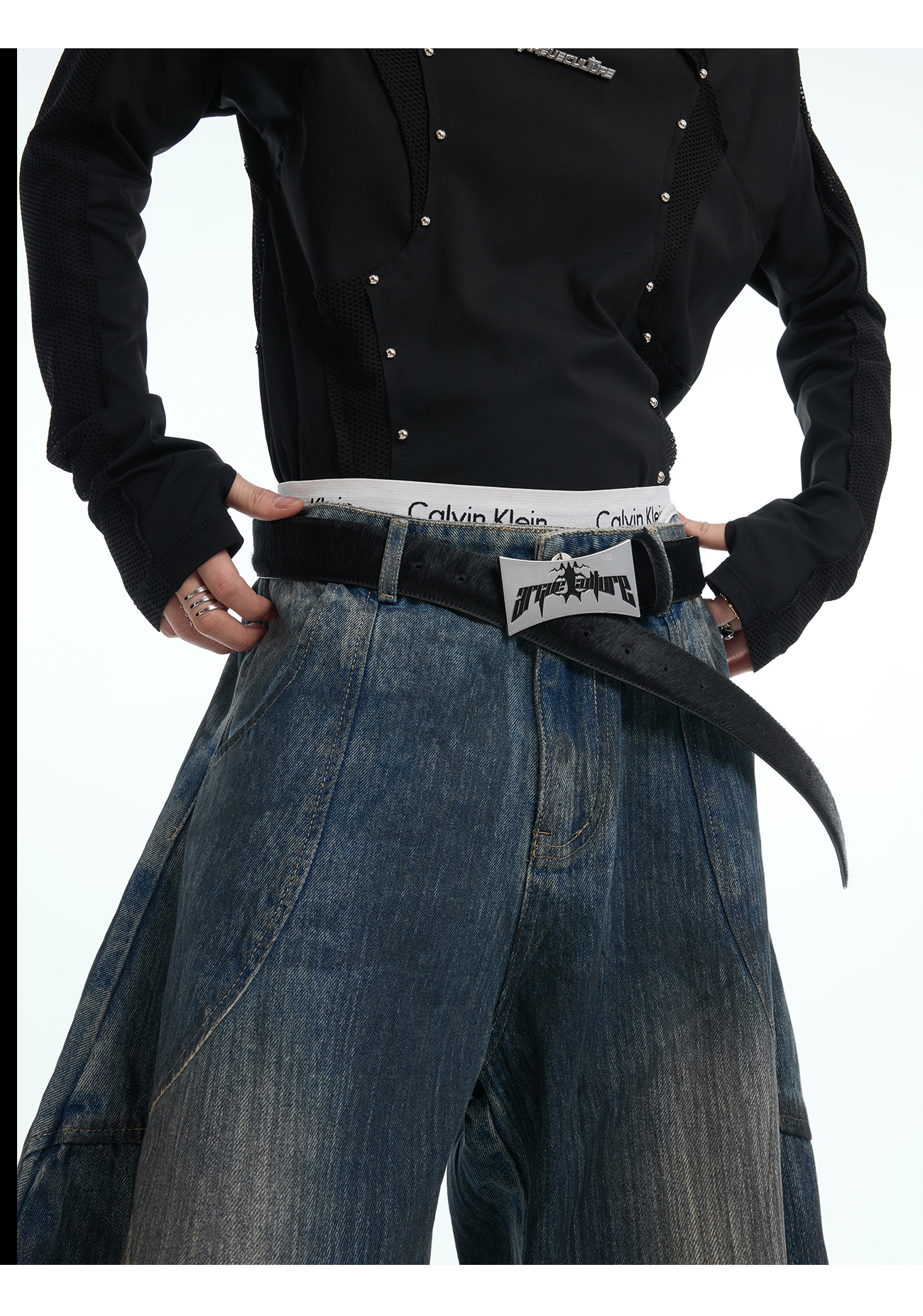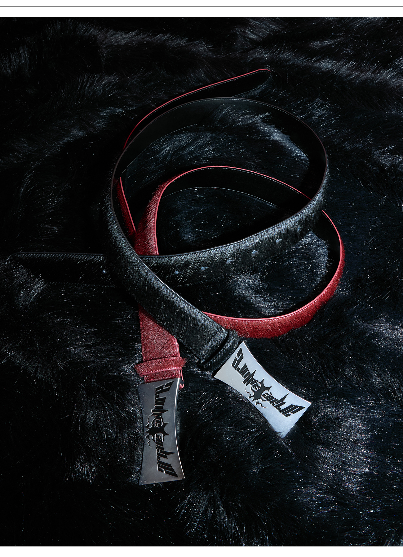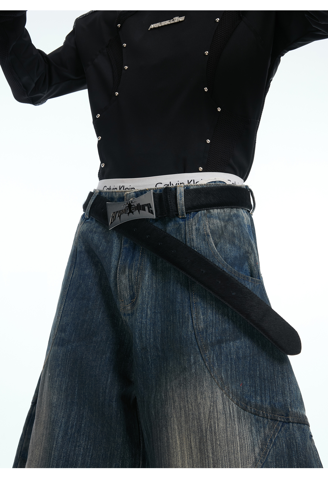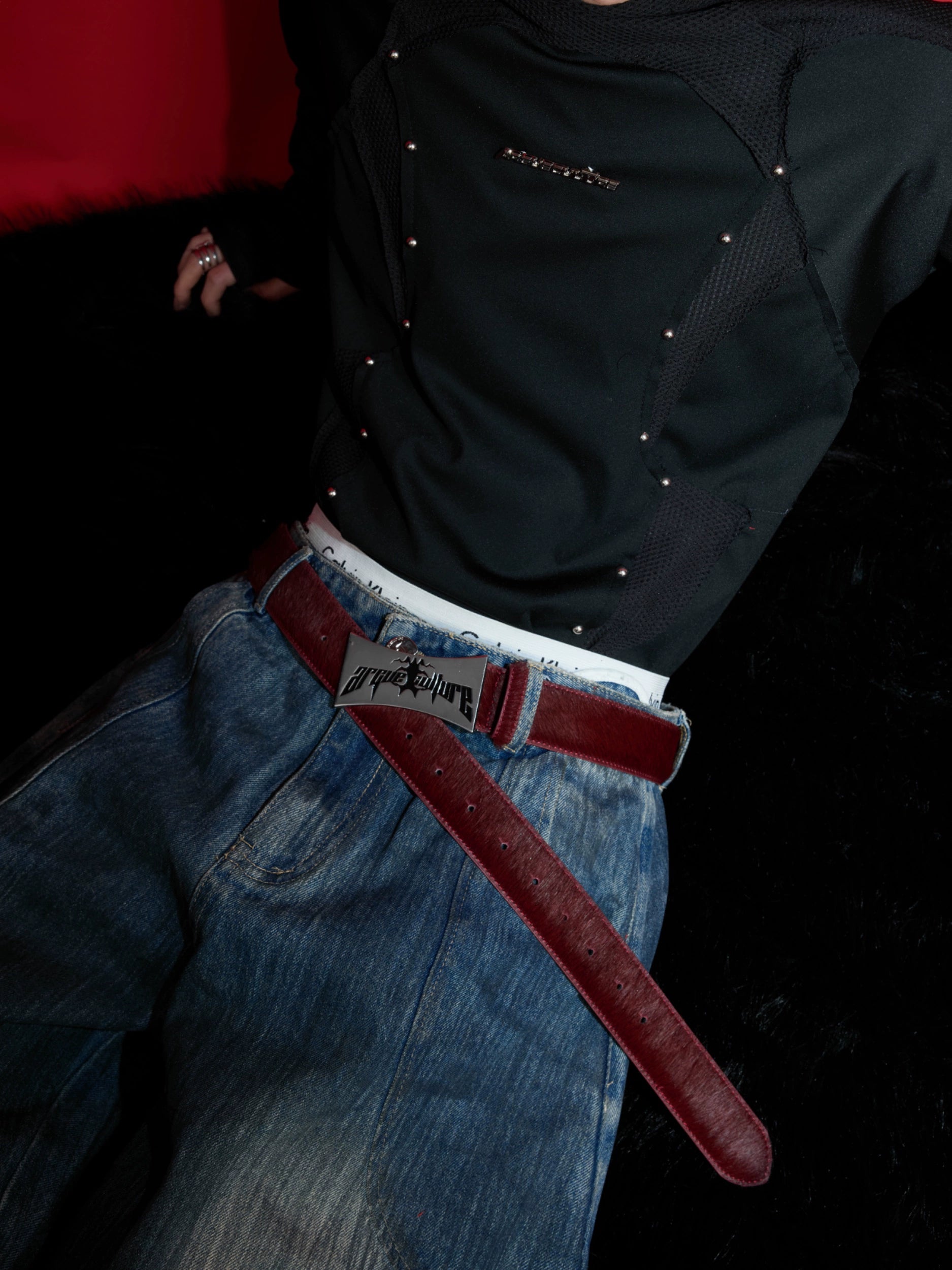Heavyweight Aged Metal Buckle Genuine Hair Leather Belt WN18326