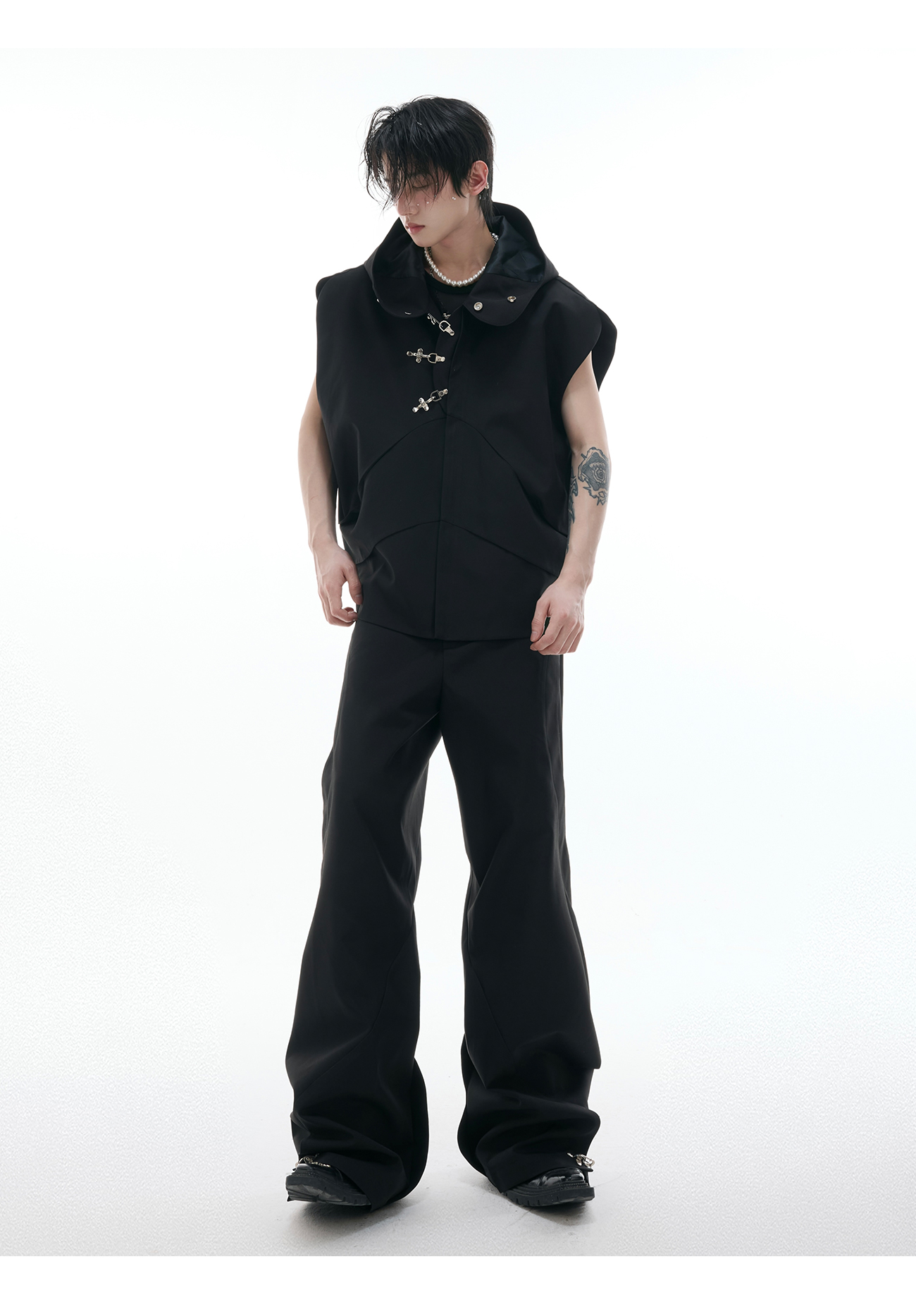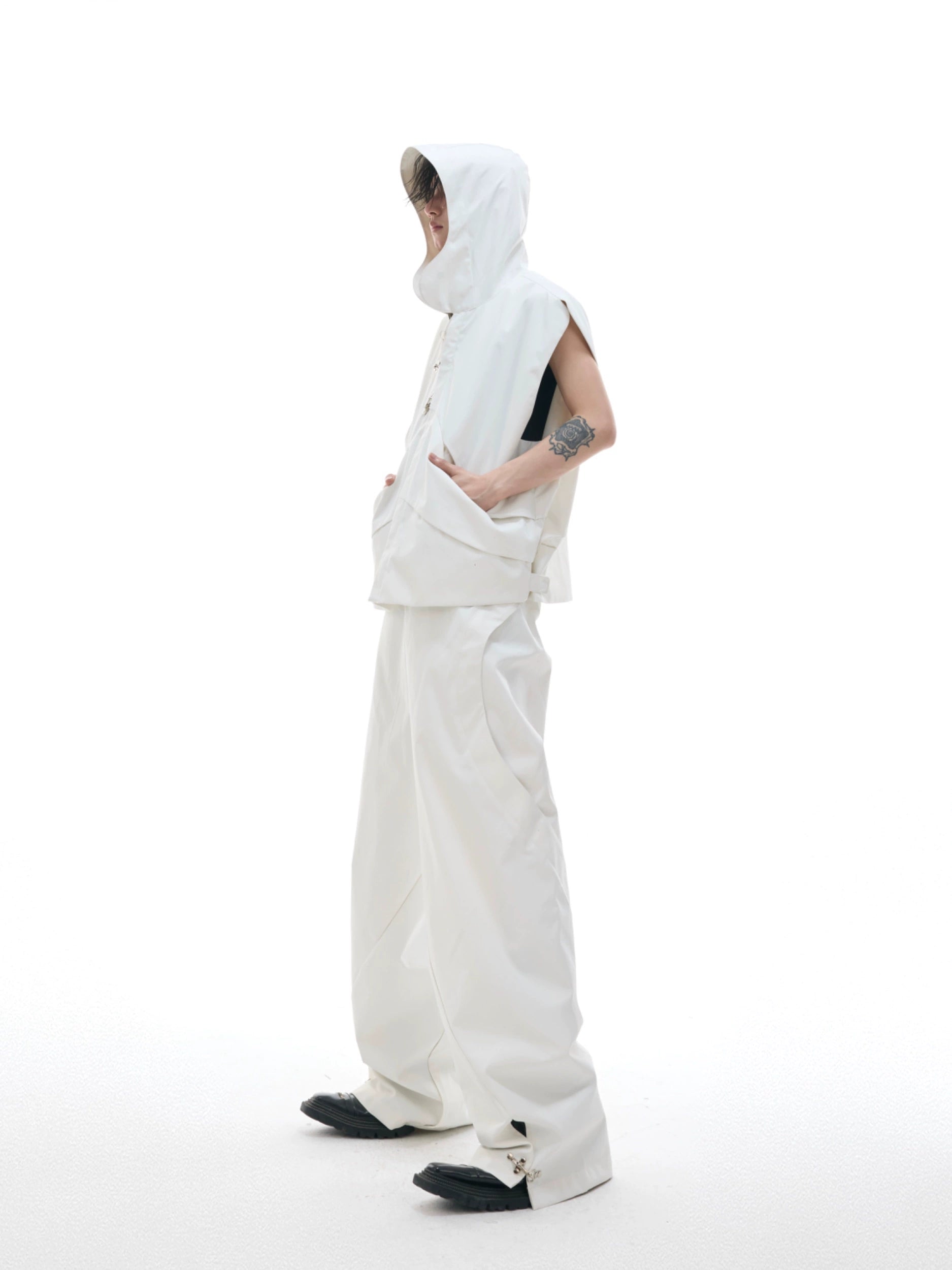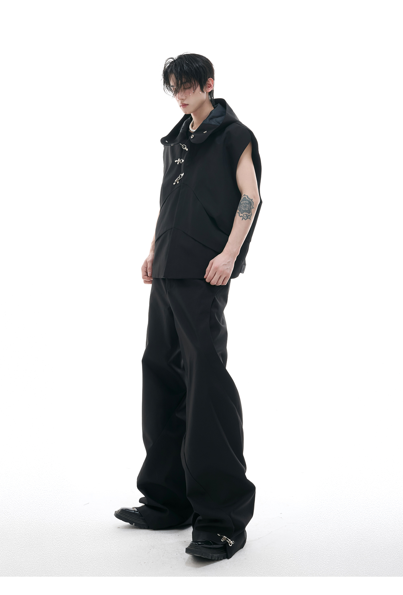 Metal Buckle Hooded Sleeveless Vest & Pants Setup WN18397