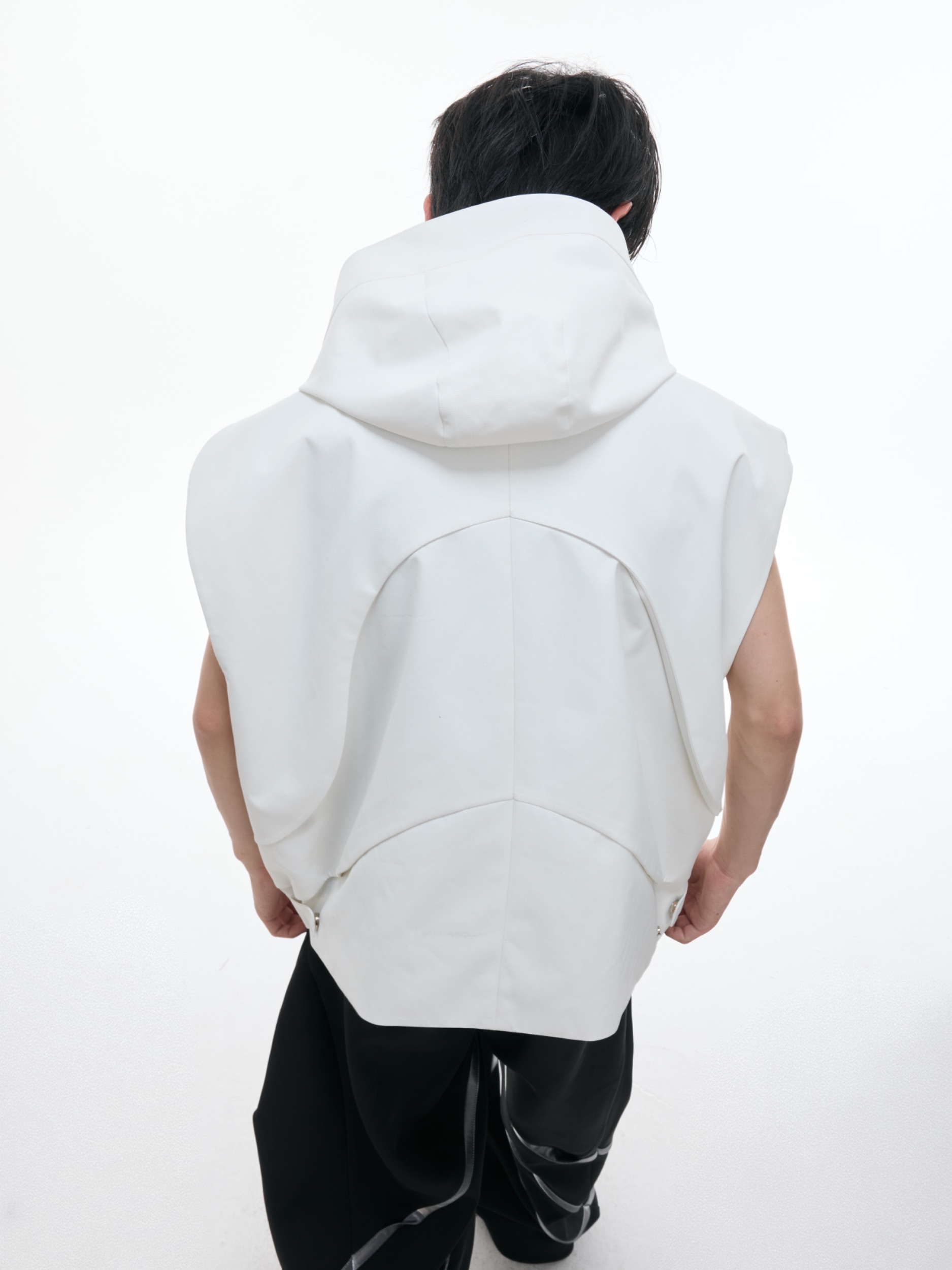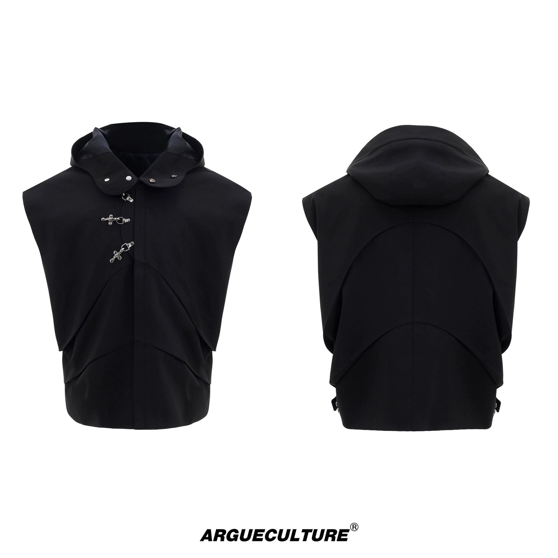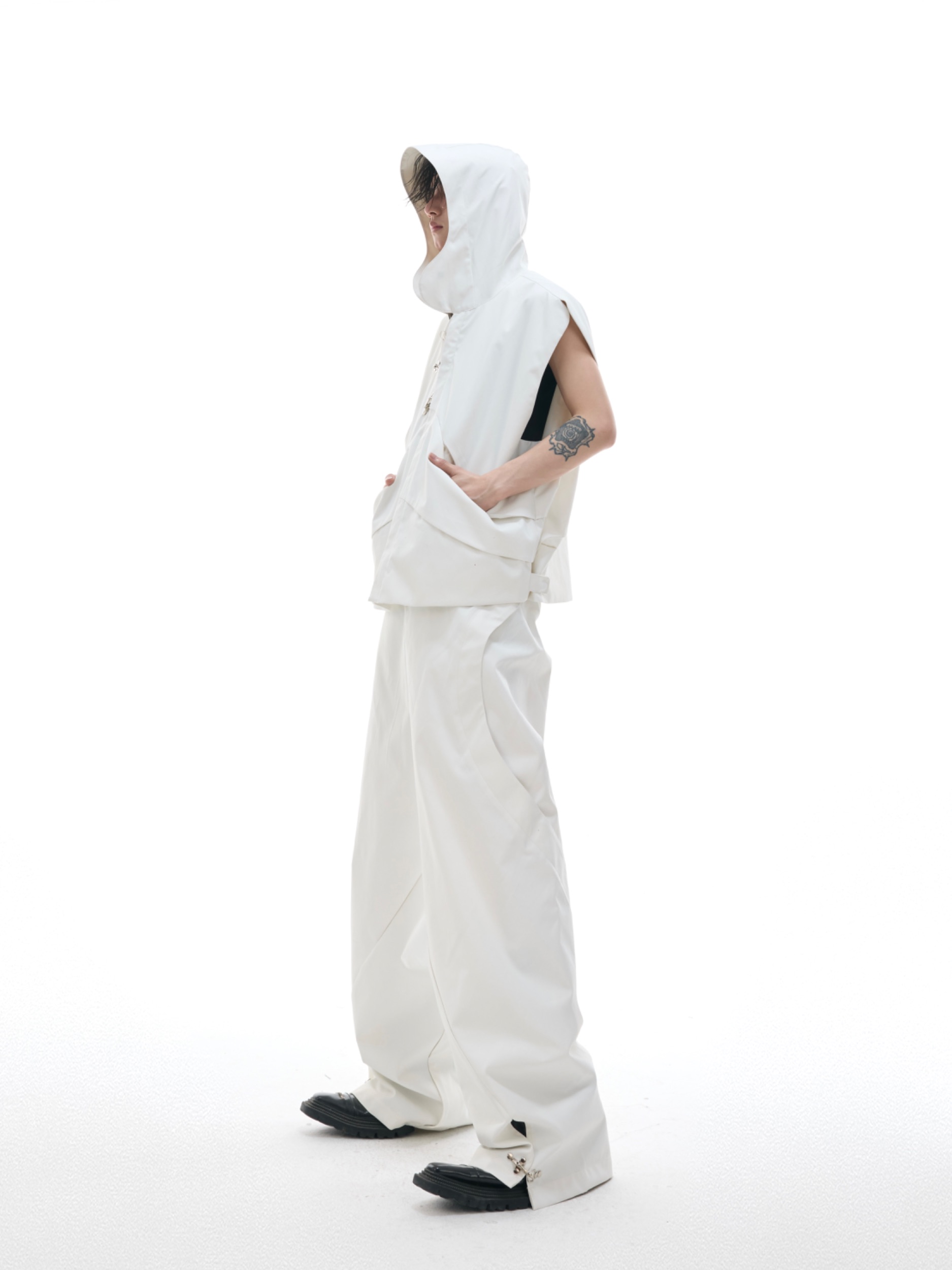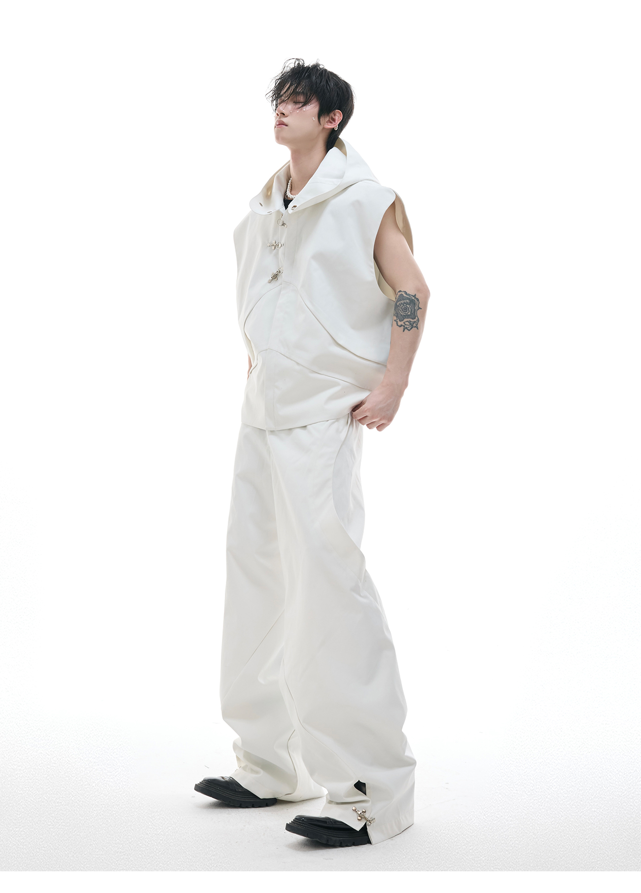 Metal Buckle Hooded Sleeveless Vest & Pants Setup WN18397