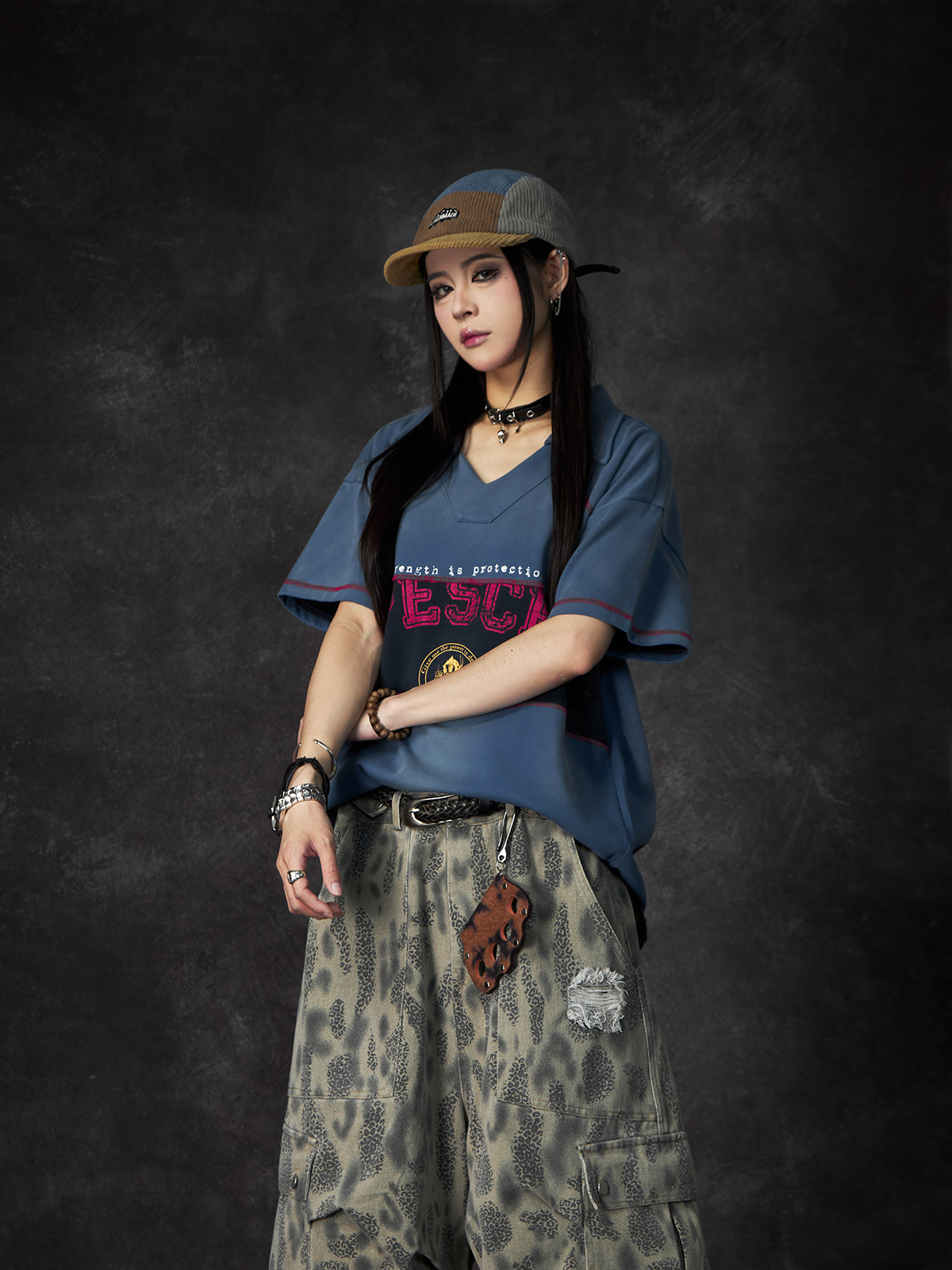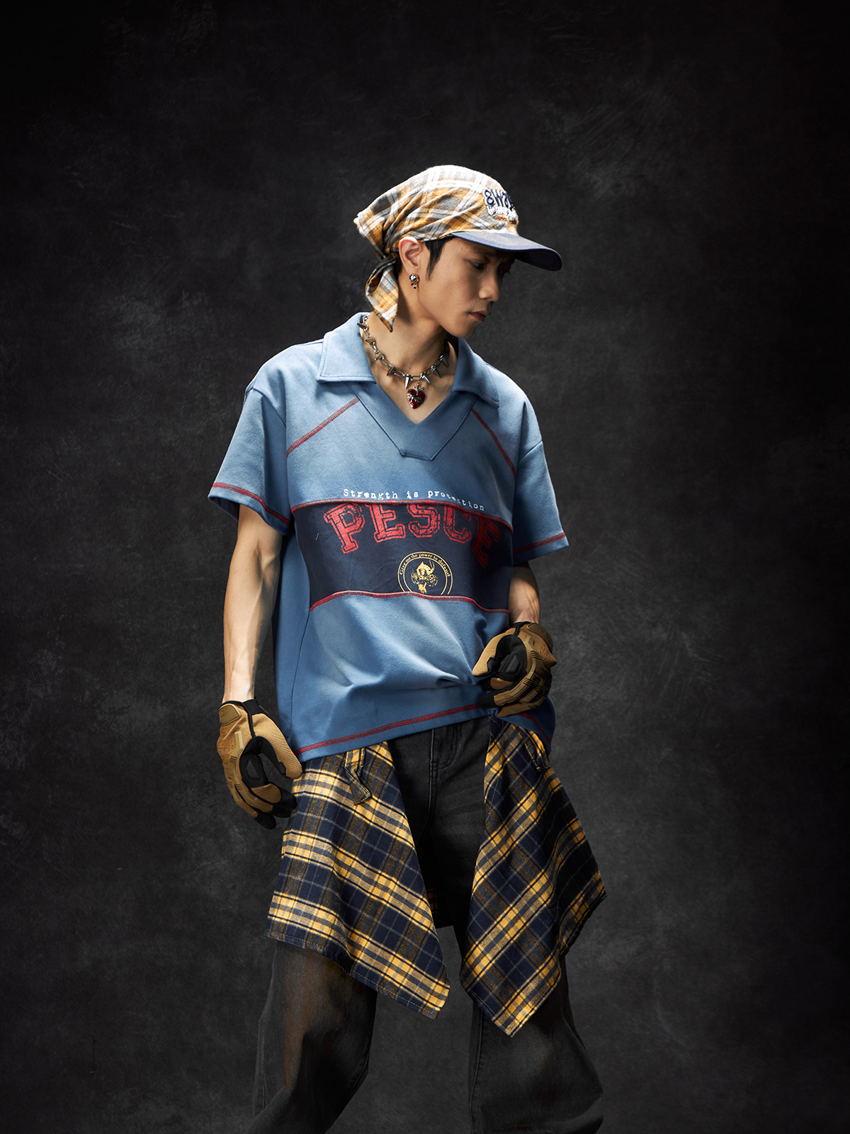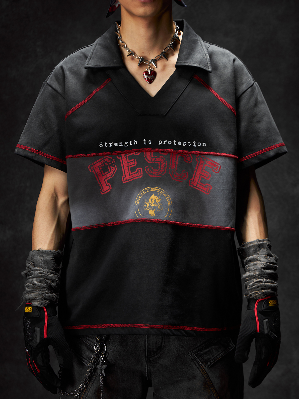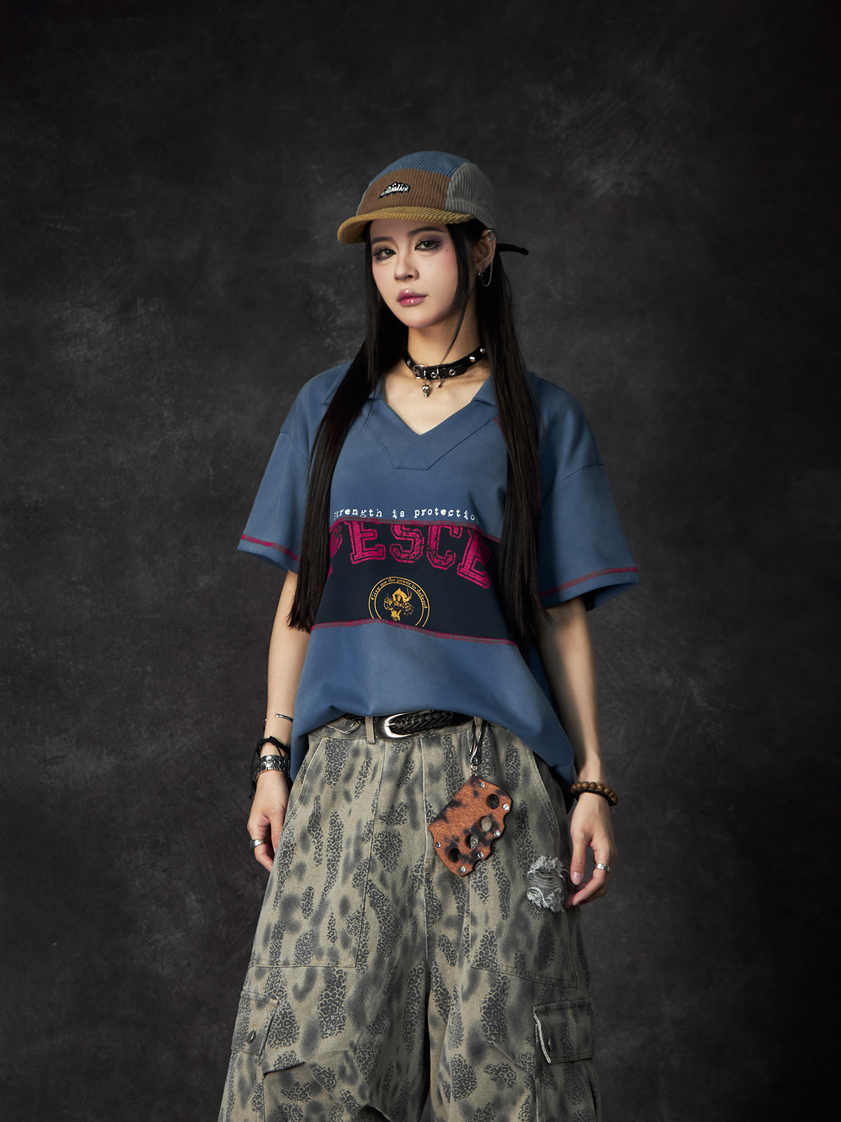 Washed Colorblock Graphic Print Short Sleeve T-Shirt WN18455