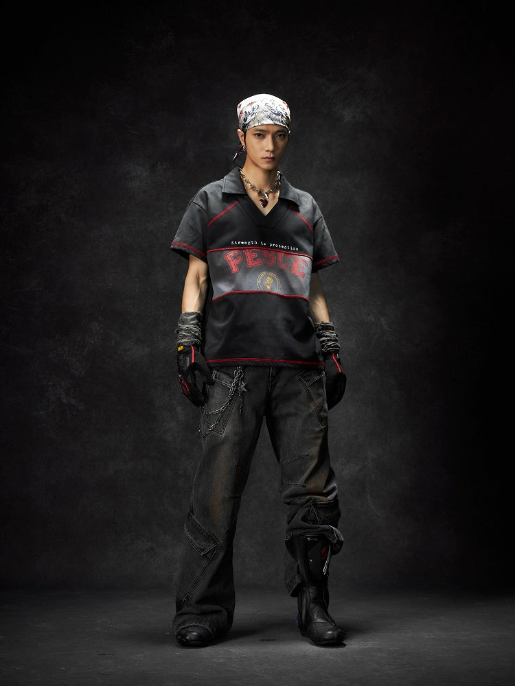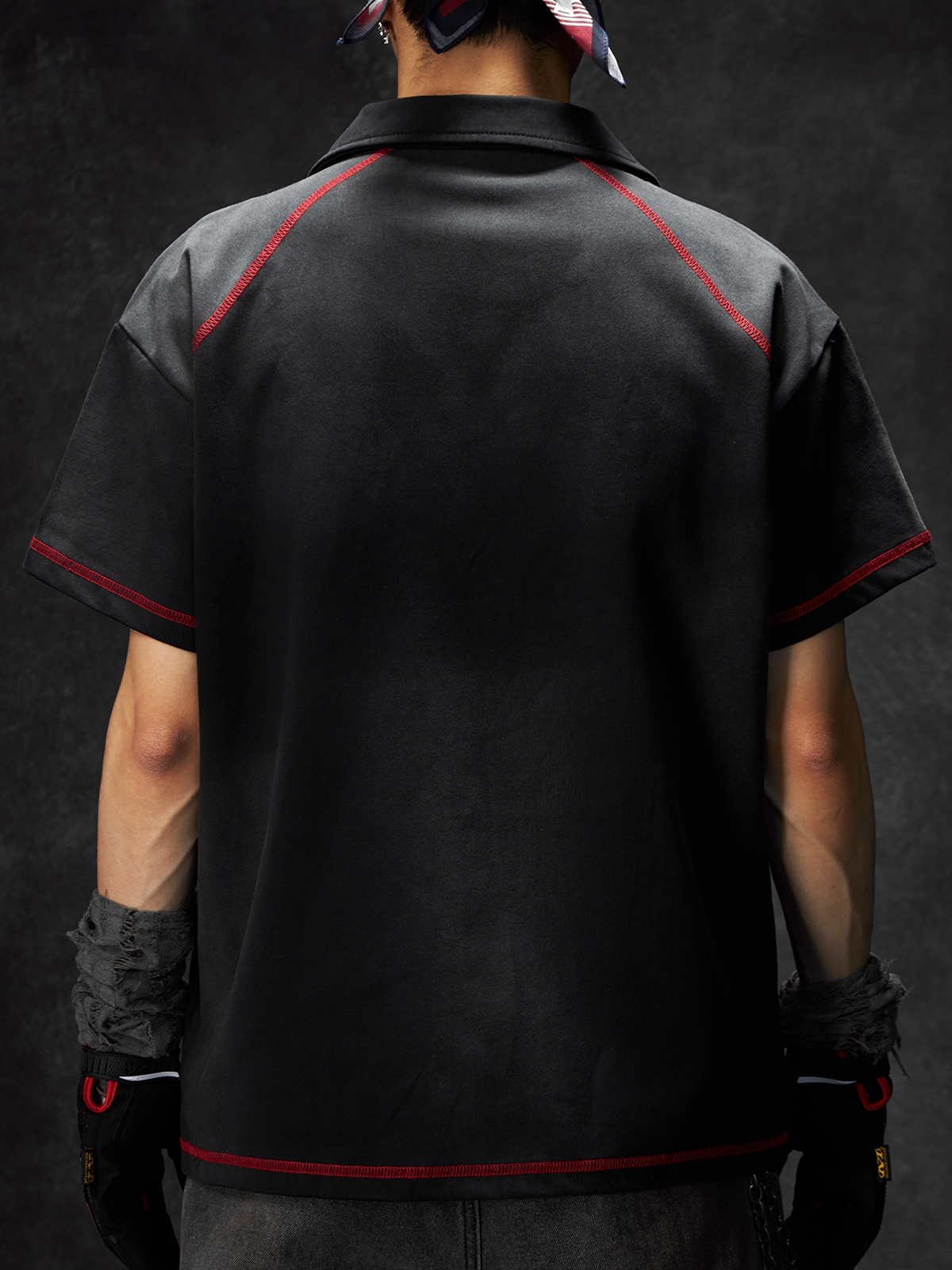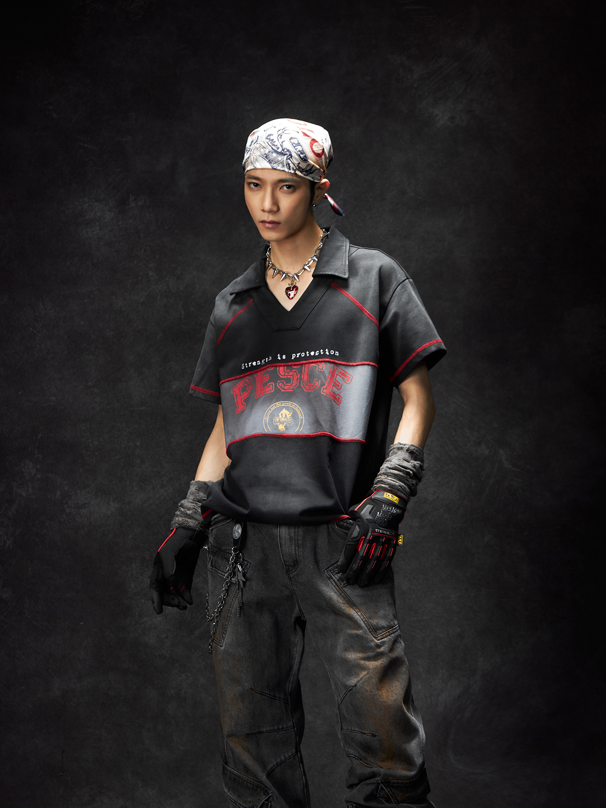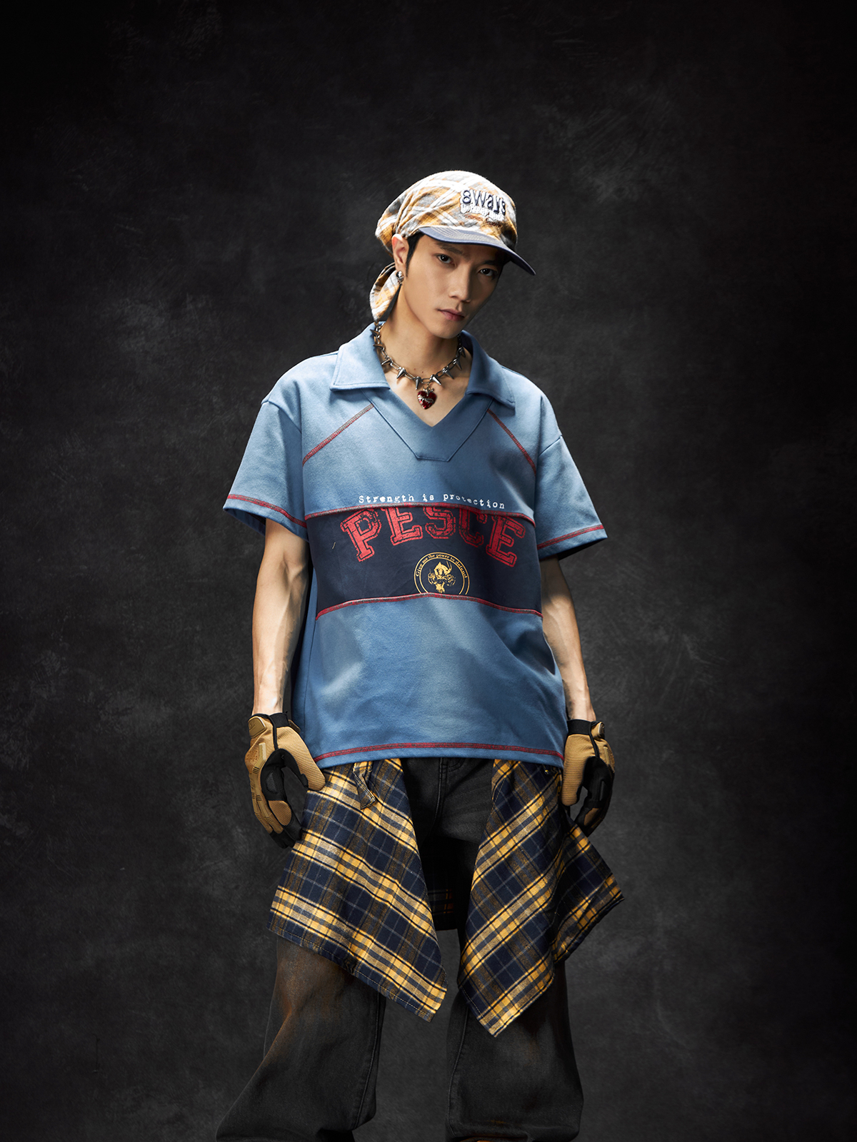 Washed Colorblock Graphic Print Short Sleeve T-Shirt WN18455