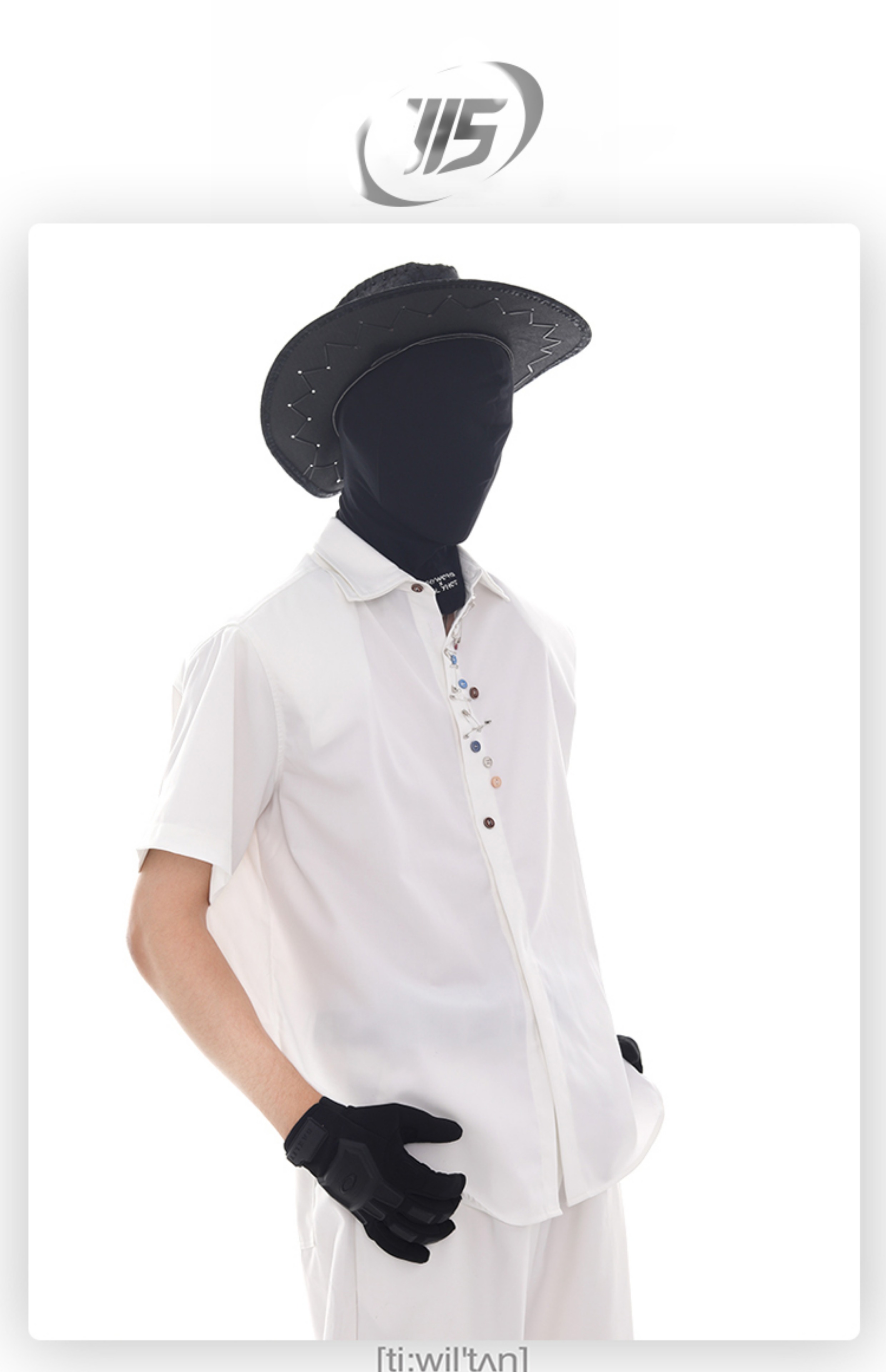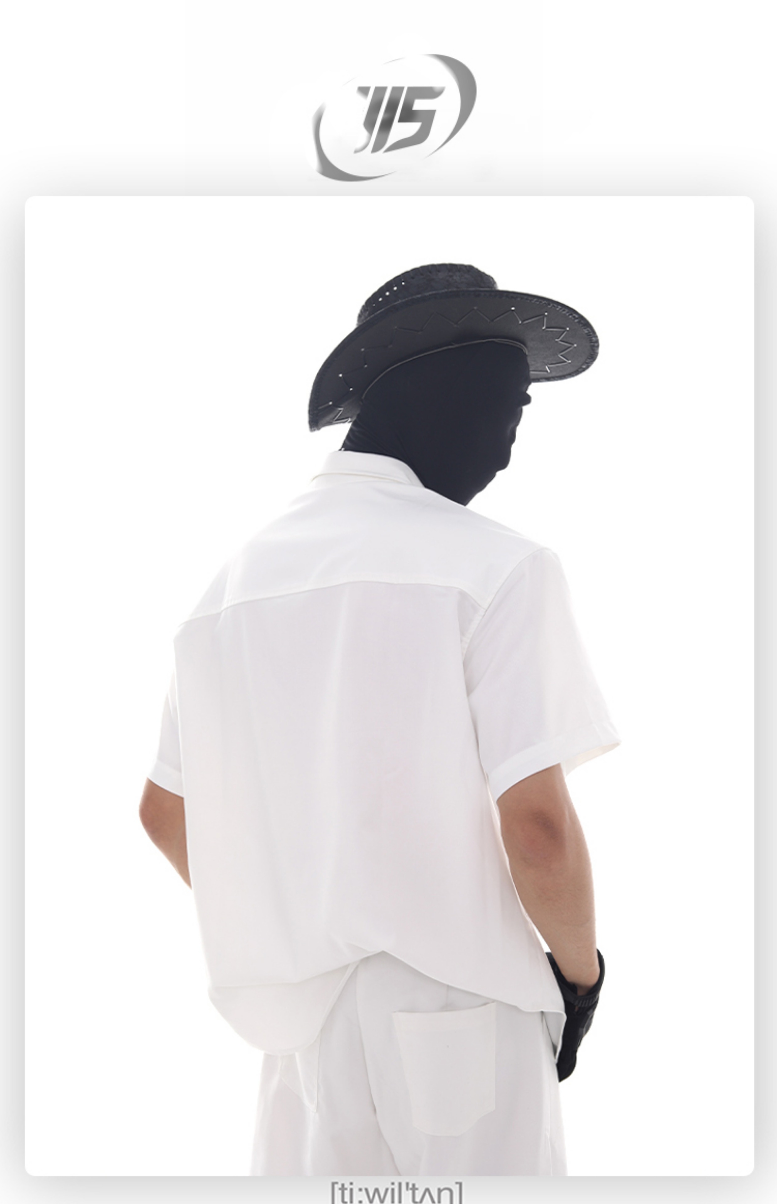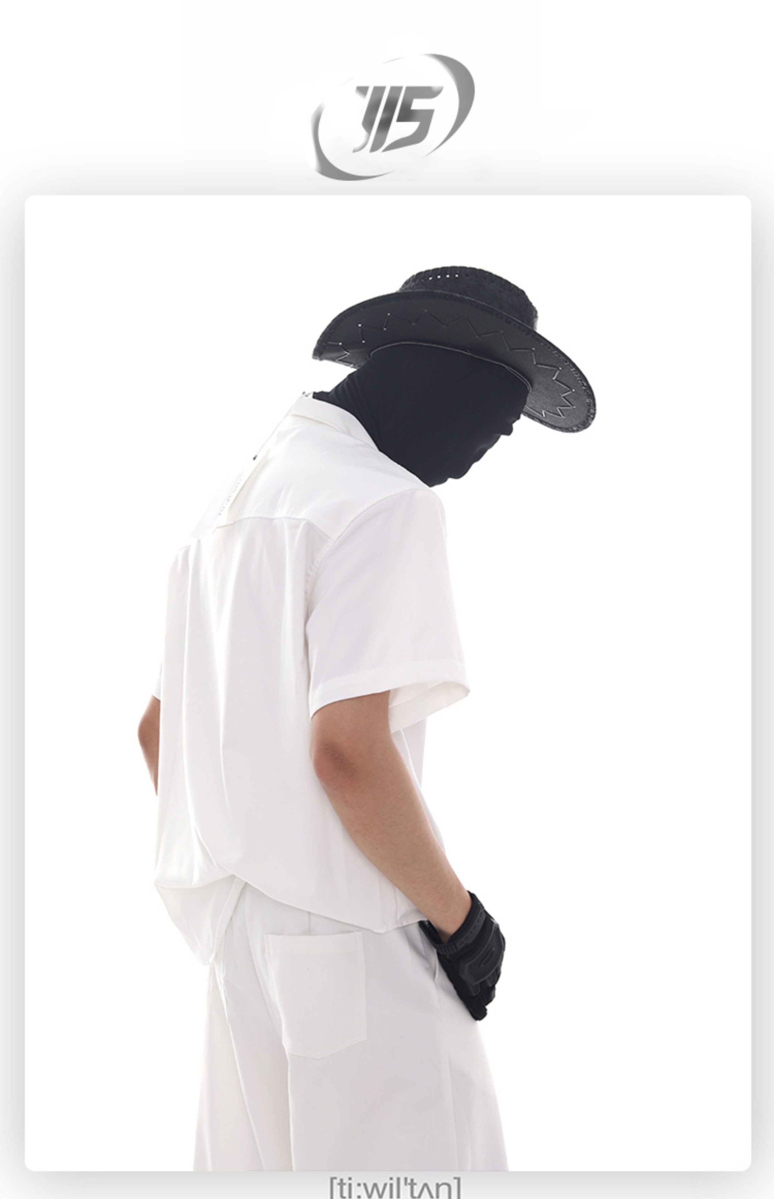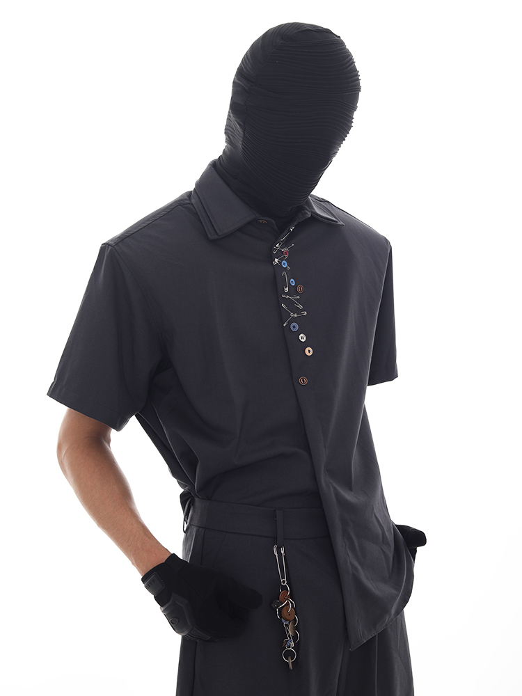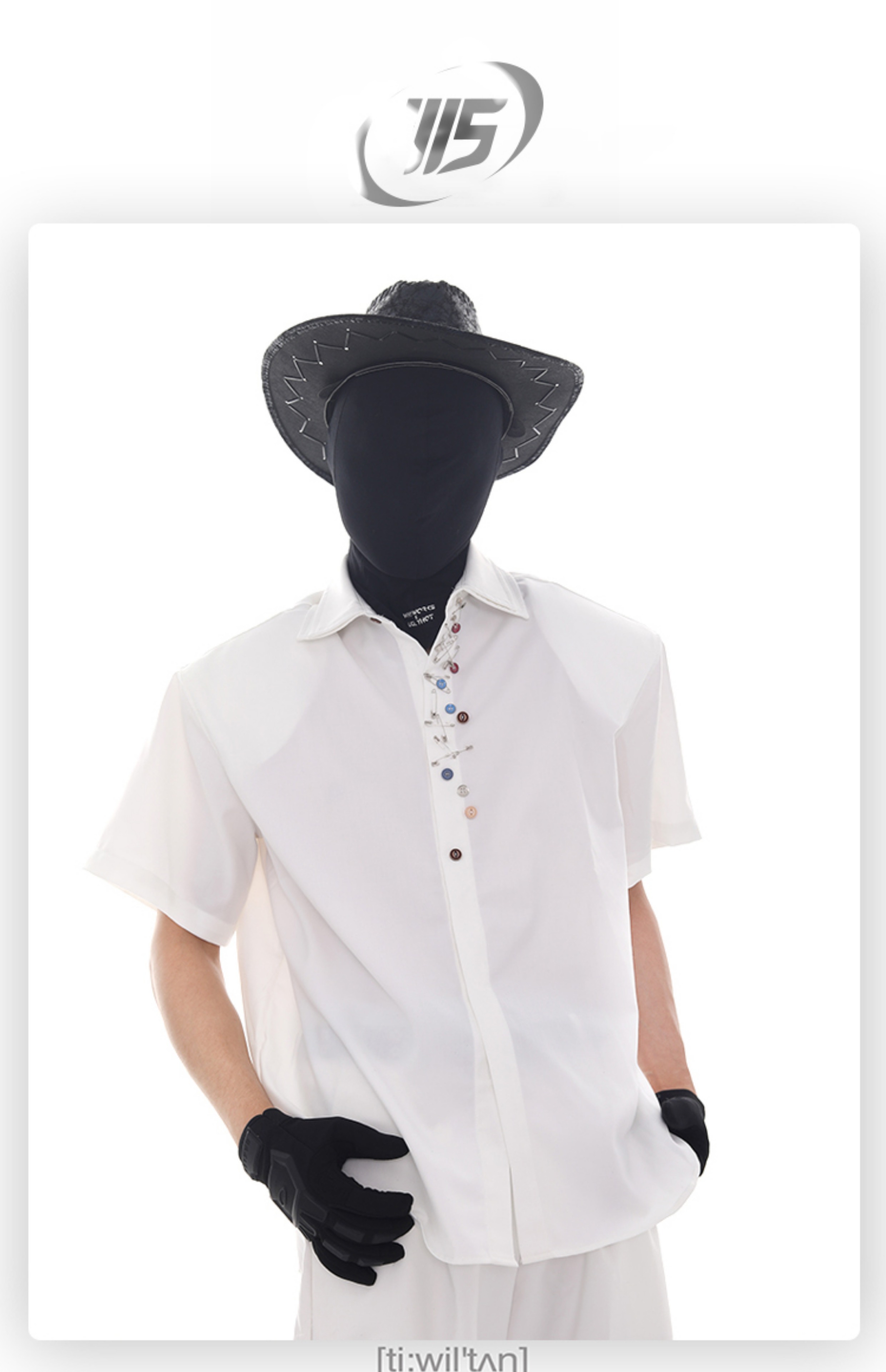 Double Collar Pin Decor Shoulder-Pad Short Sleeve Shirt & Ttrousers Setup WN18621