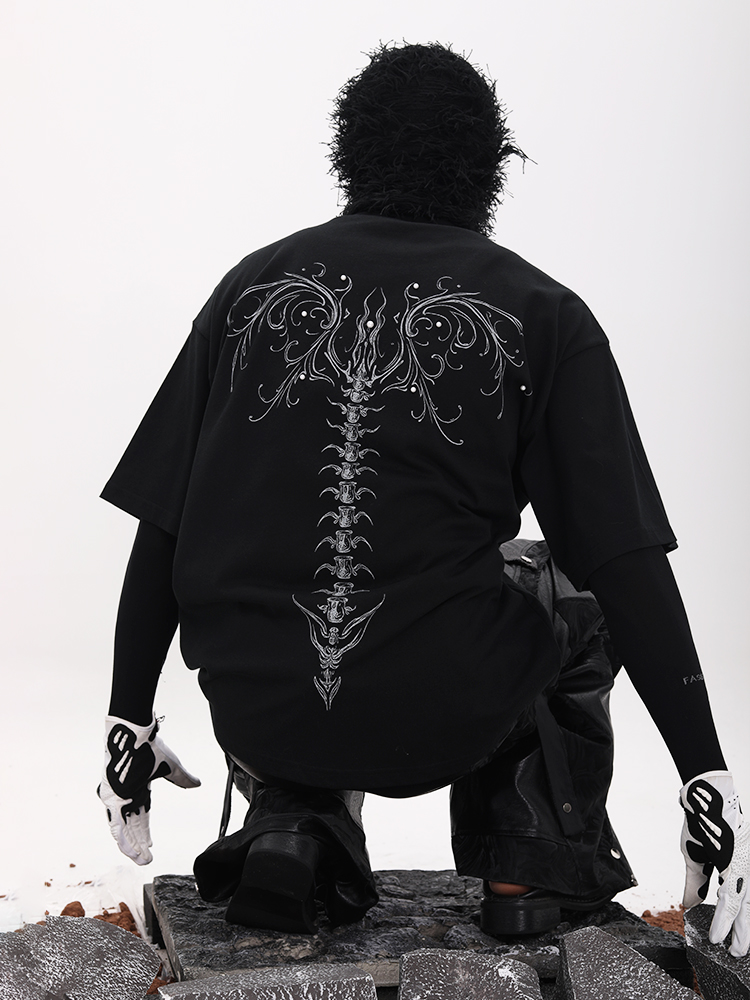 Dragon Spine Bone Design Print Short Sleeve T-Shirt WN18650