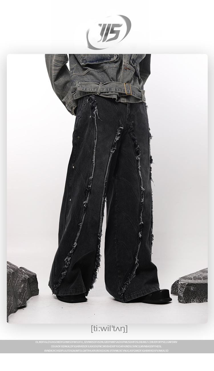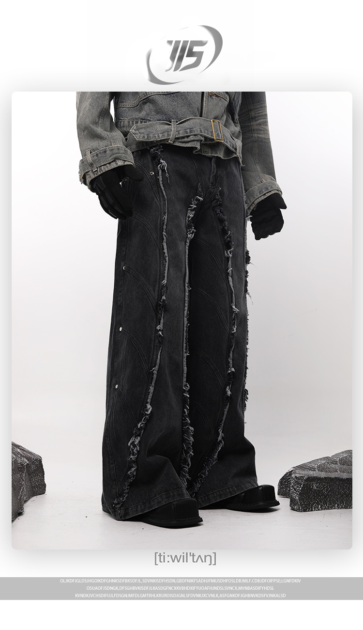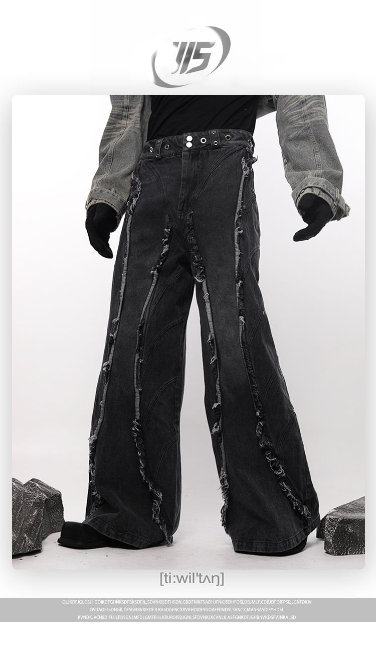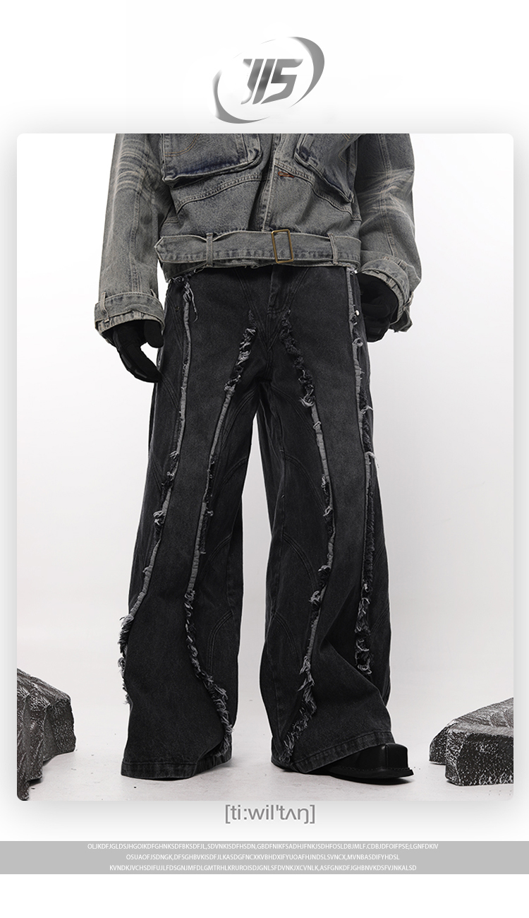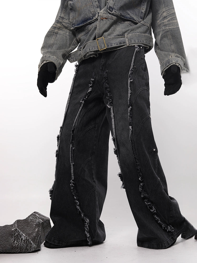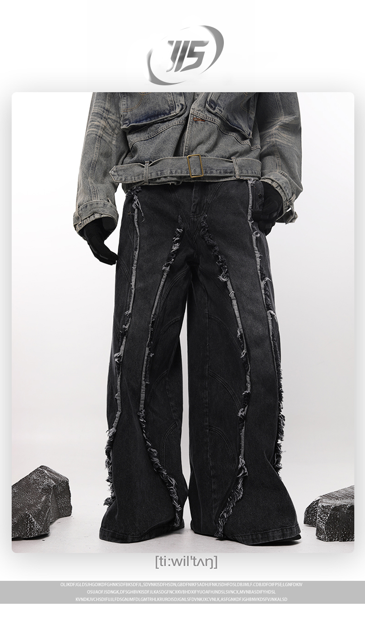 Washed Gradient Fringe Raw Edge Denim Jeans WN18715