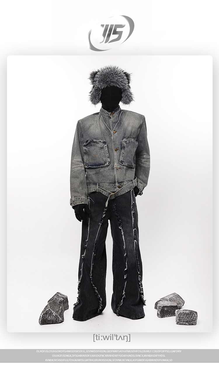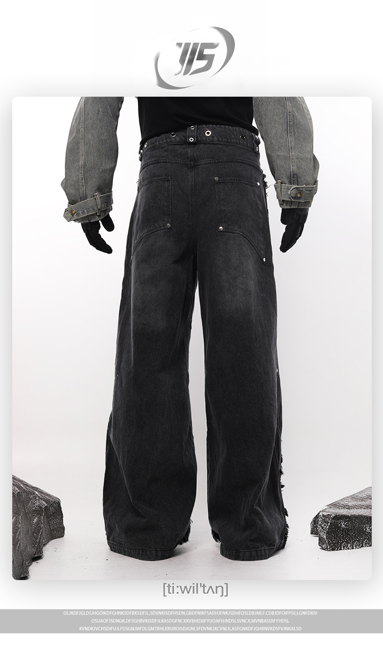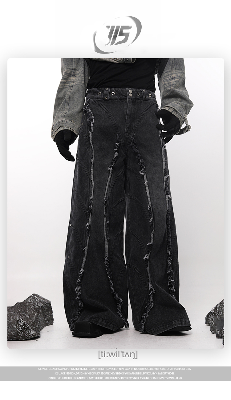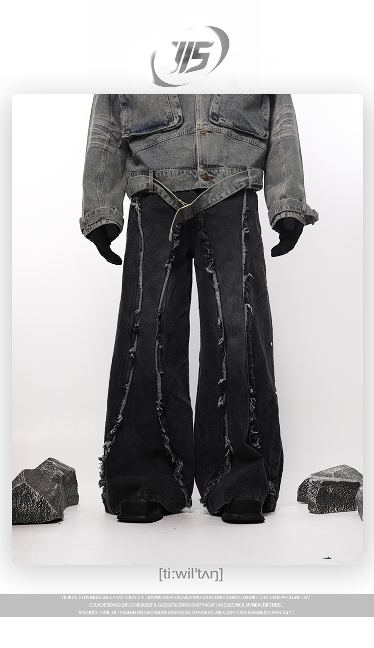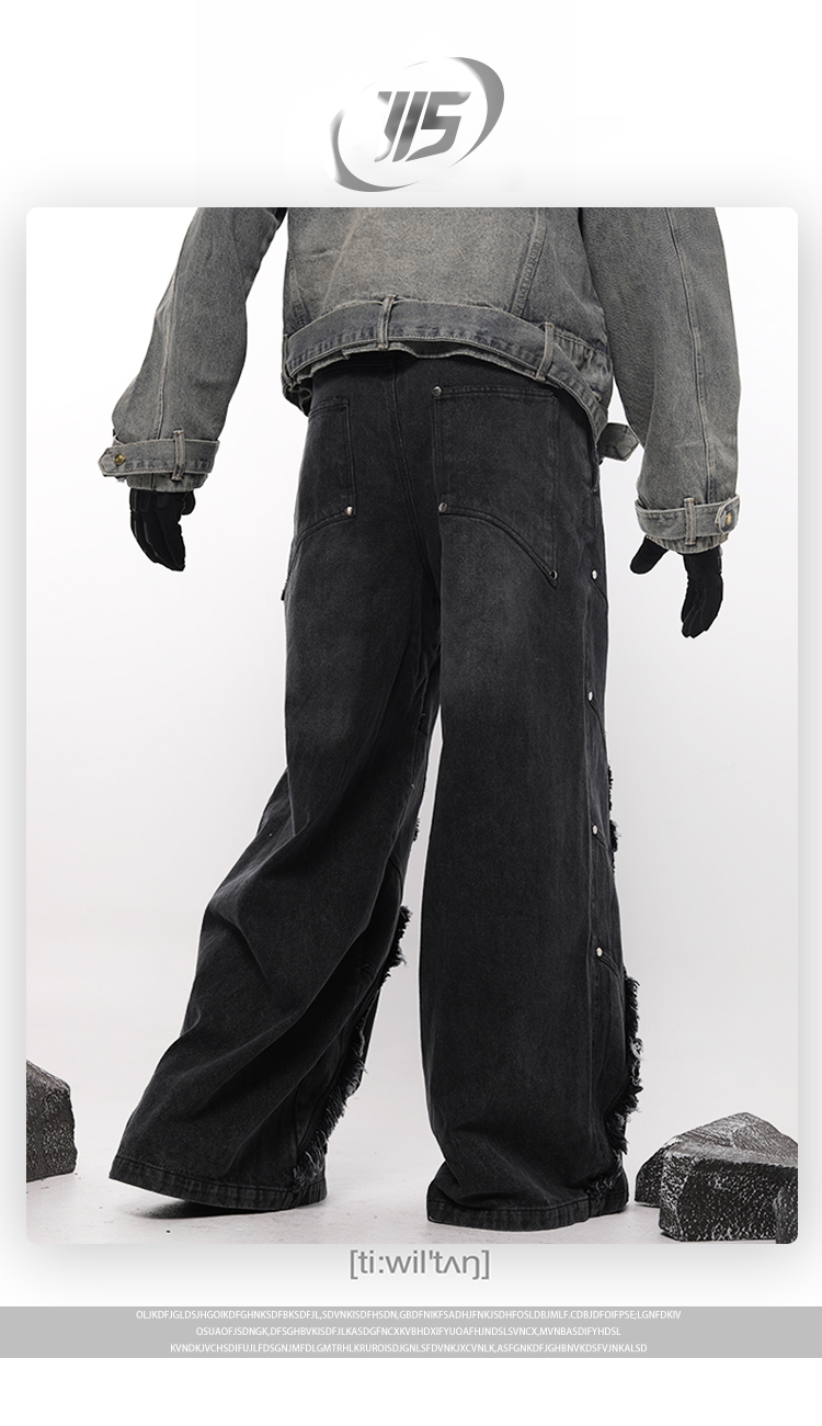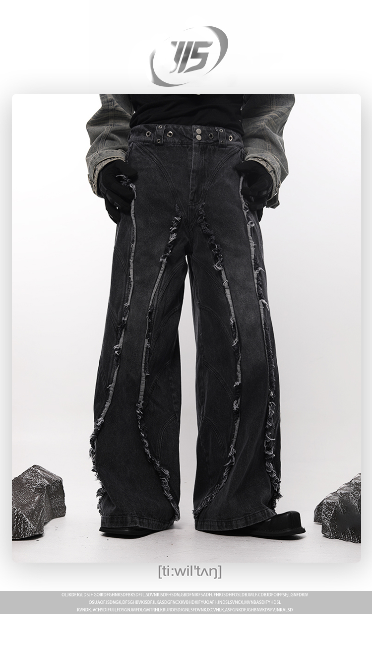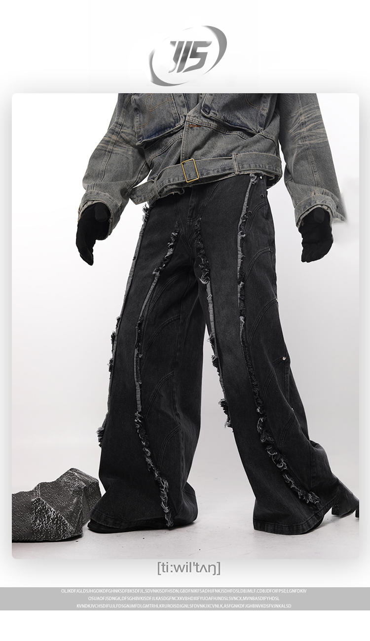 Washed Gradient Fringe Raw Edge Denim Jeans WN18715
