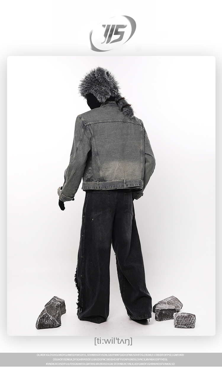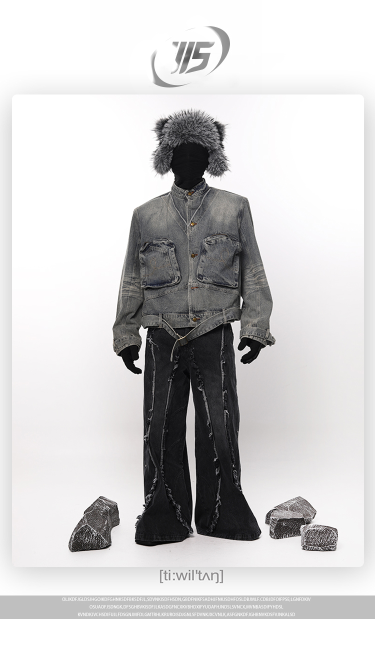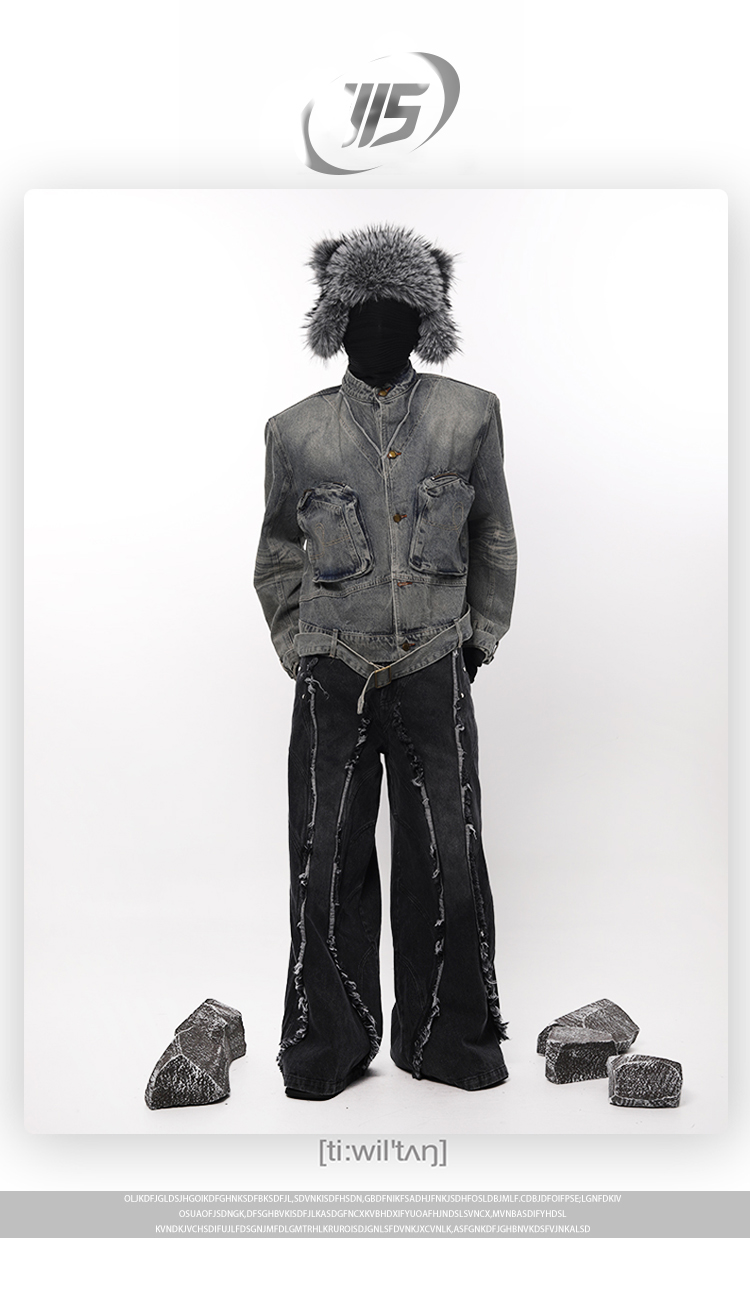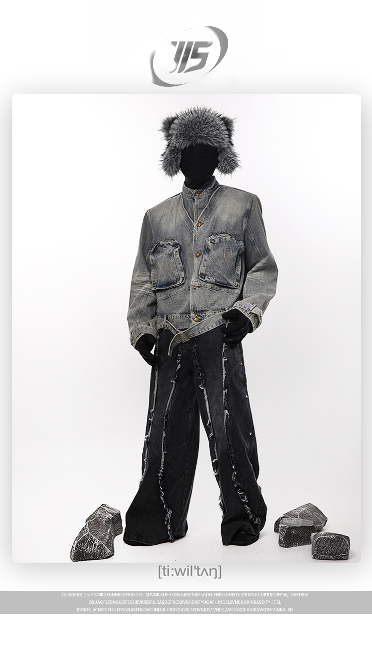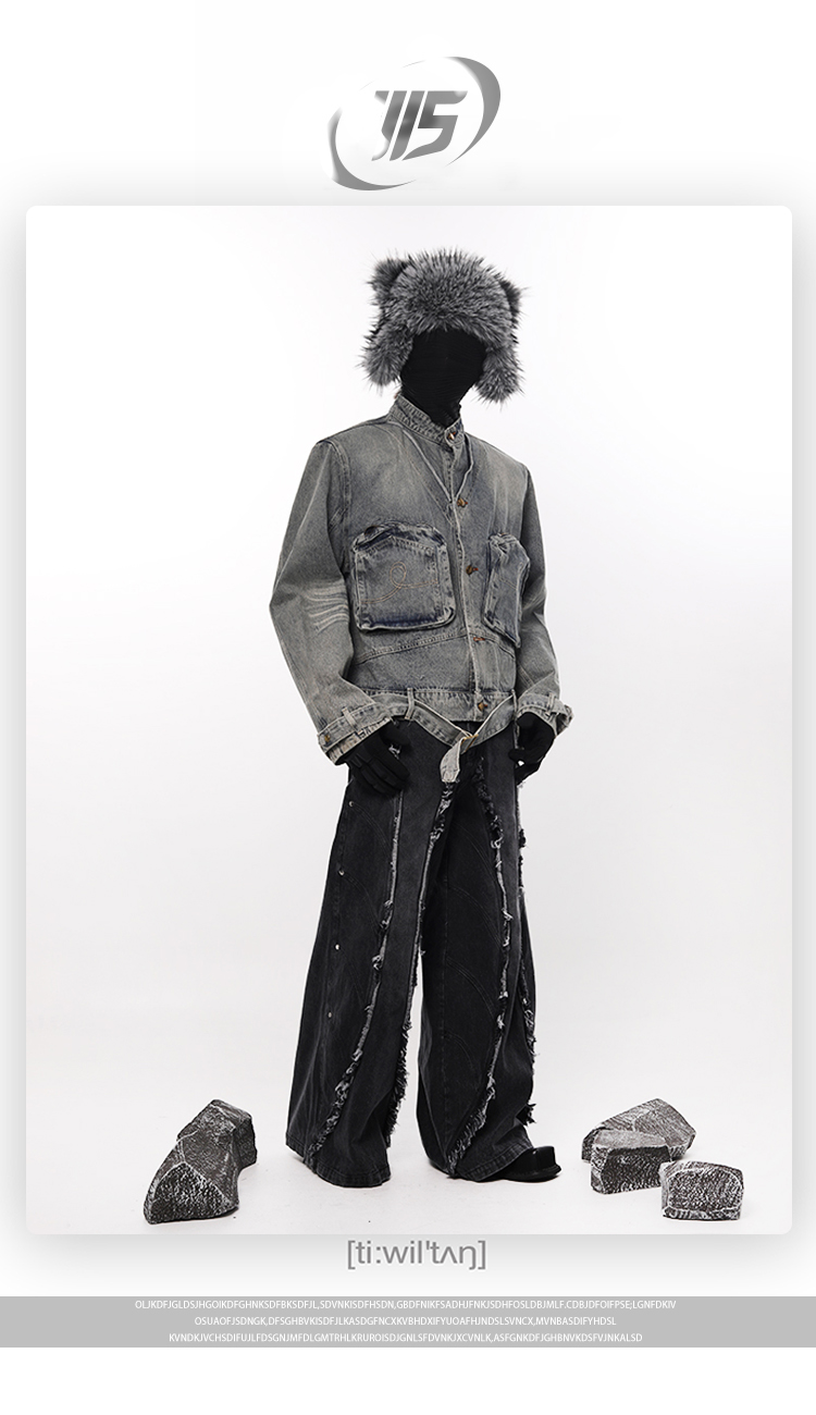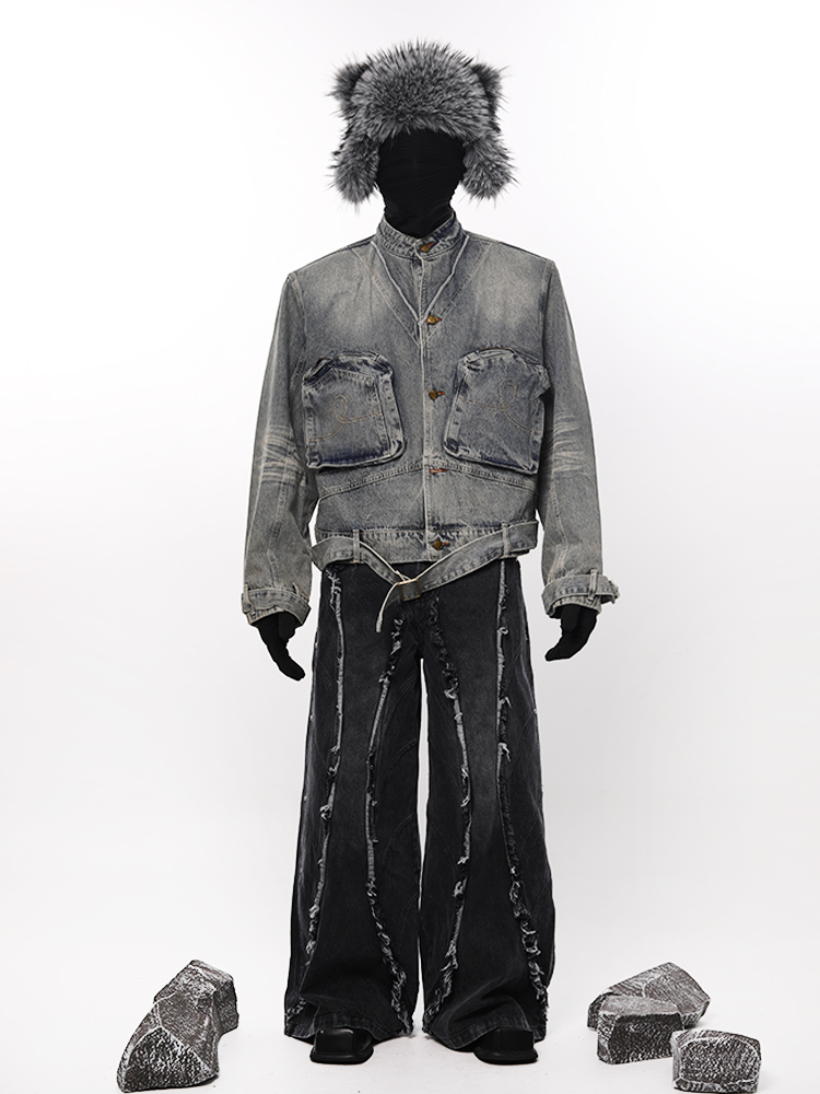 Washed Gradient Fringe Raw Edge Denim Jeans WN18715